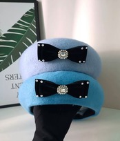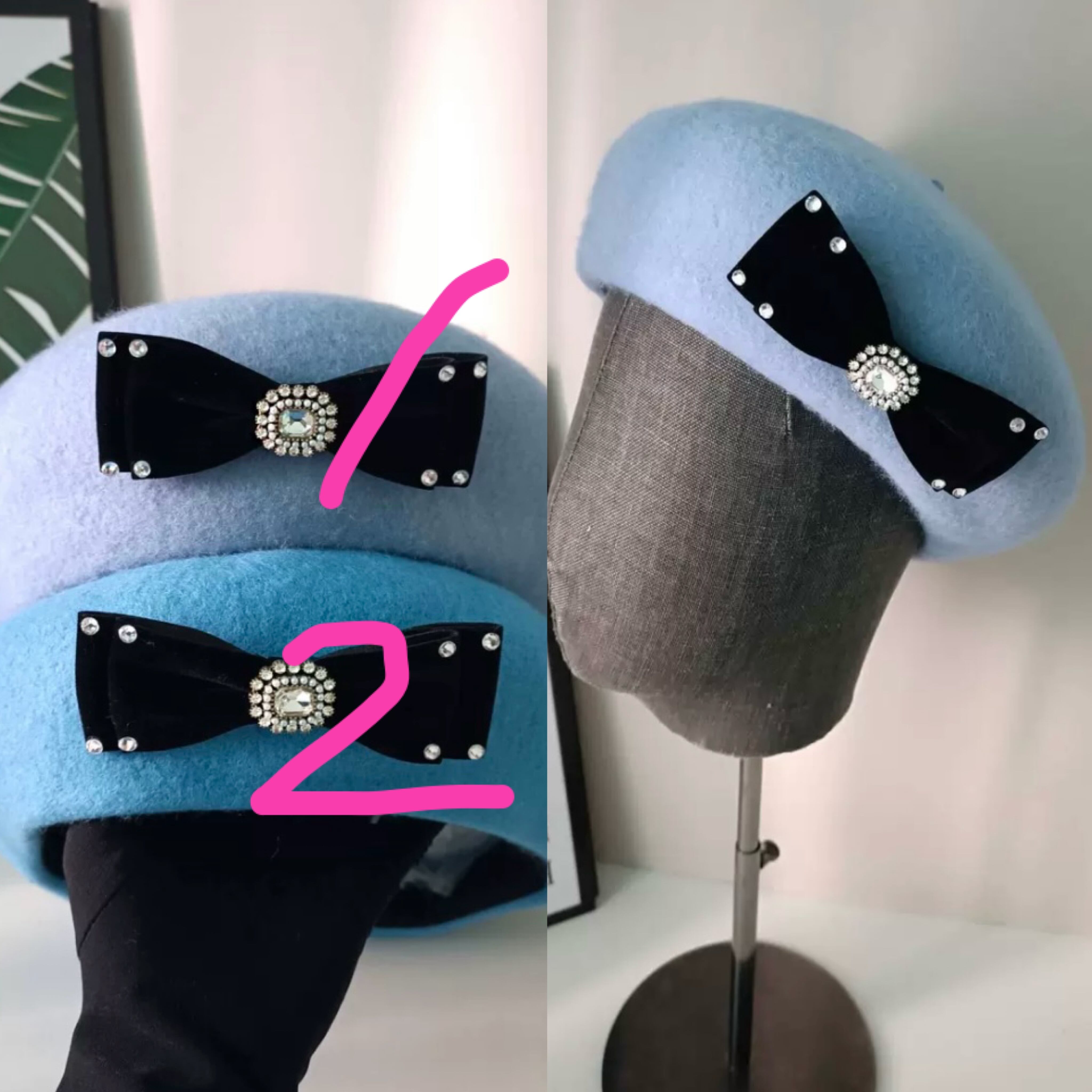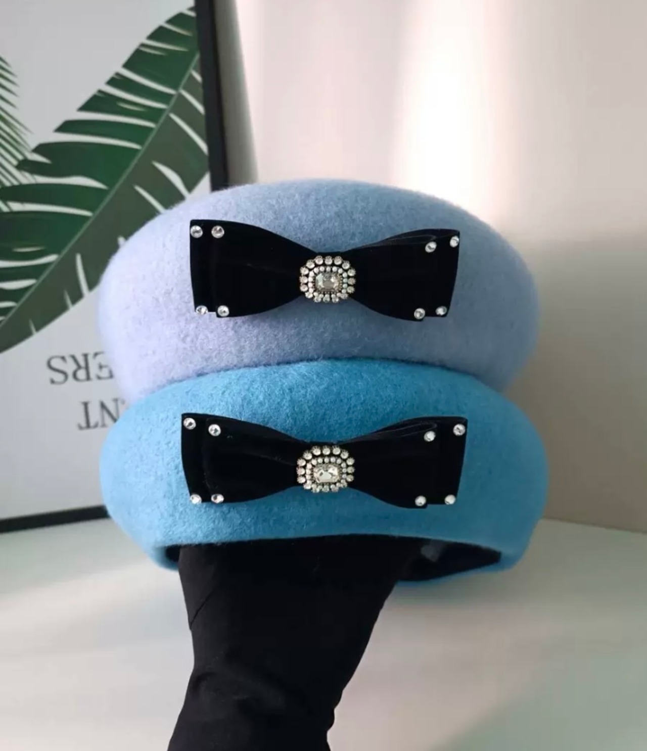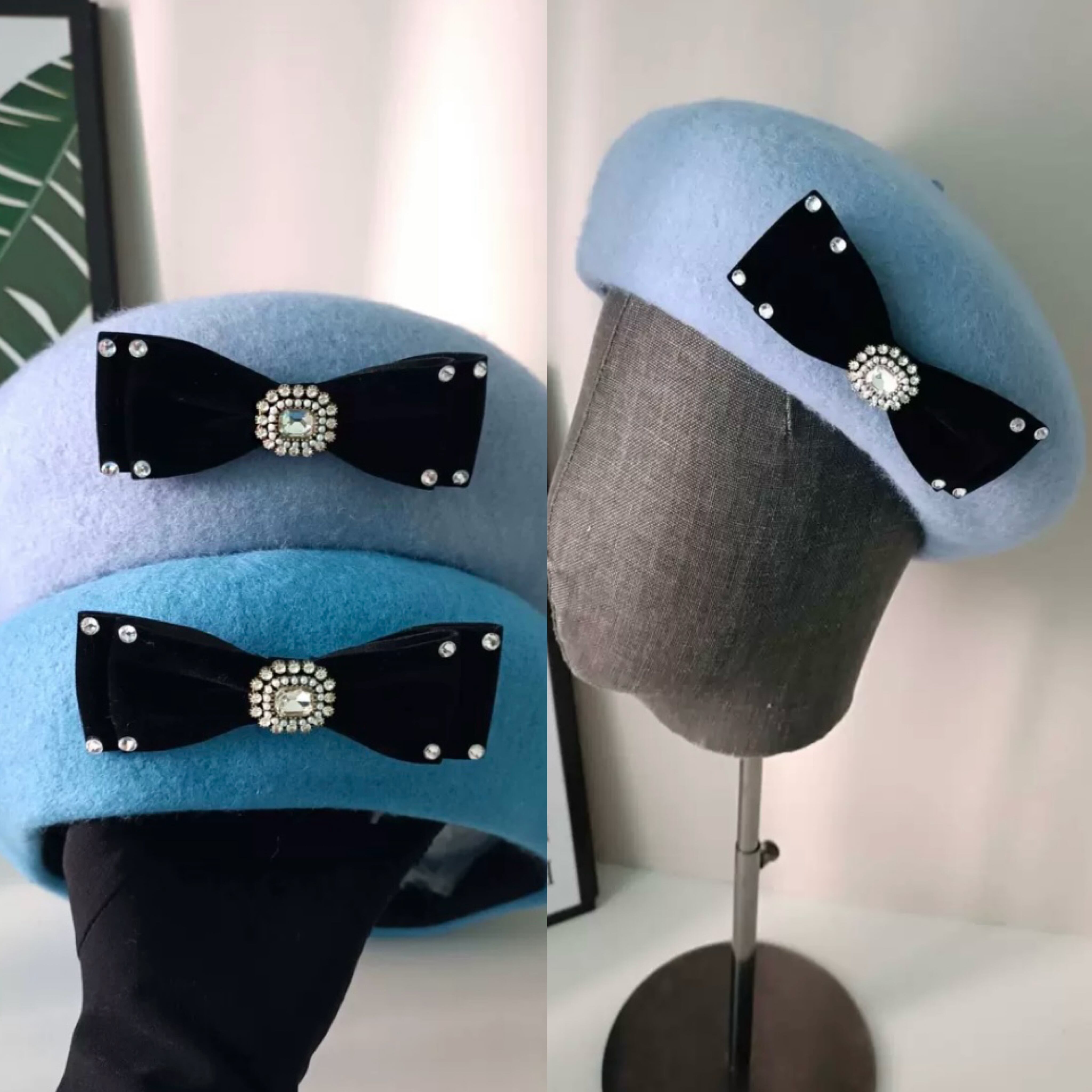 水色 ブルー ベレー帽子 ガーリー アクセサリー かわいい 原宿 リボン ラインストーン お嬢様