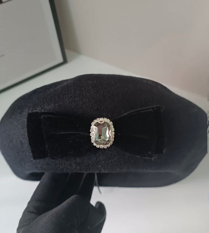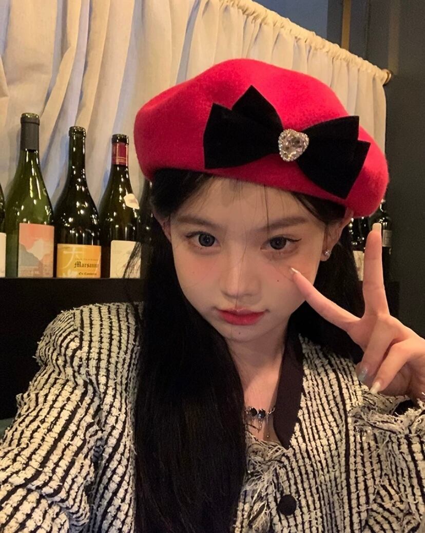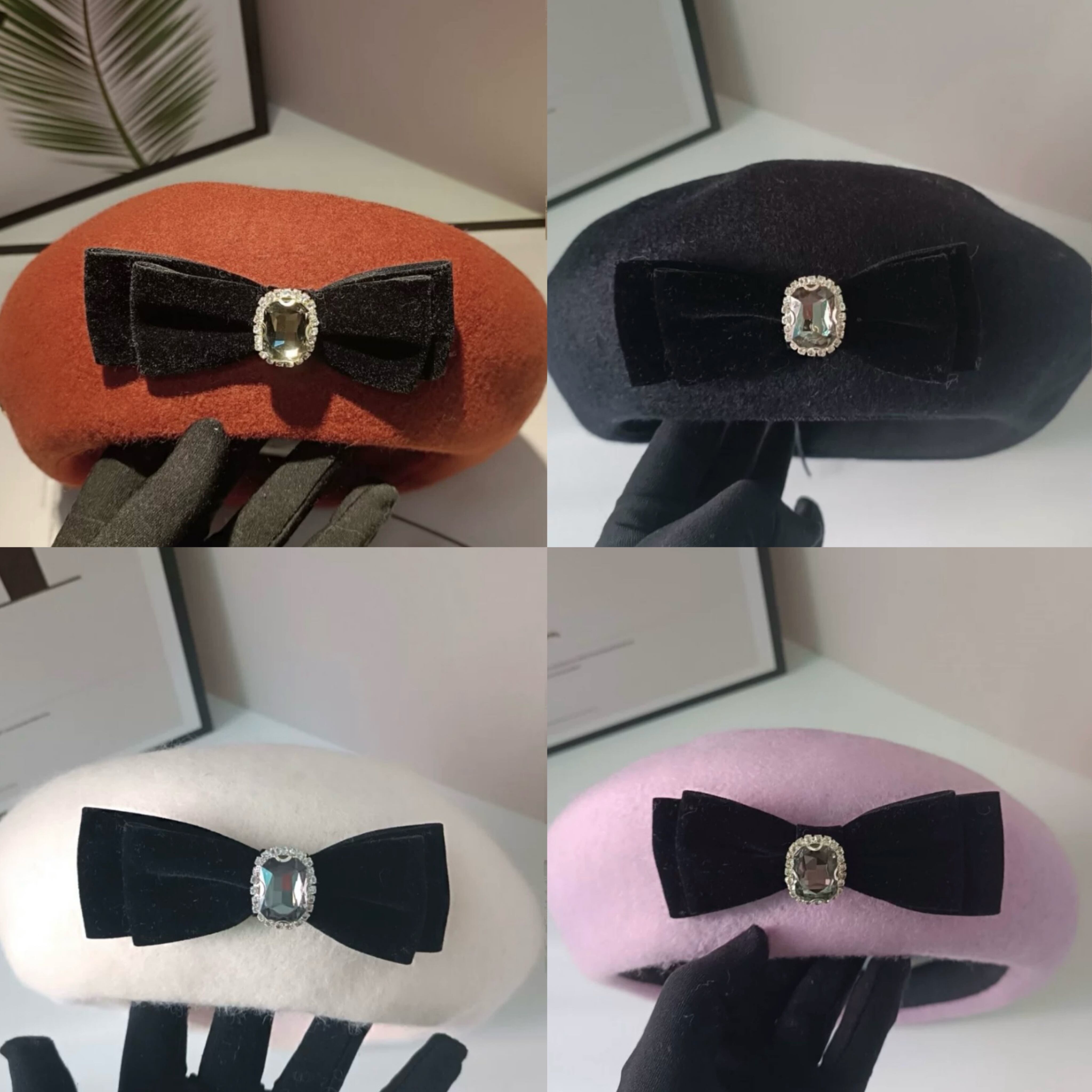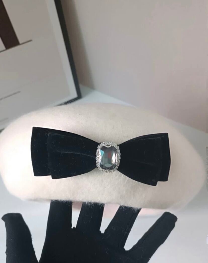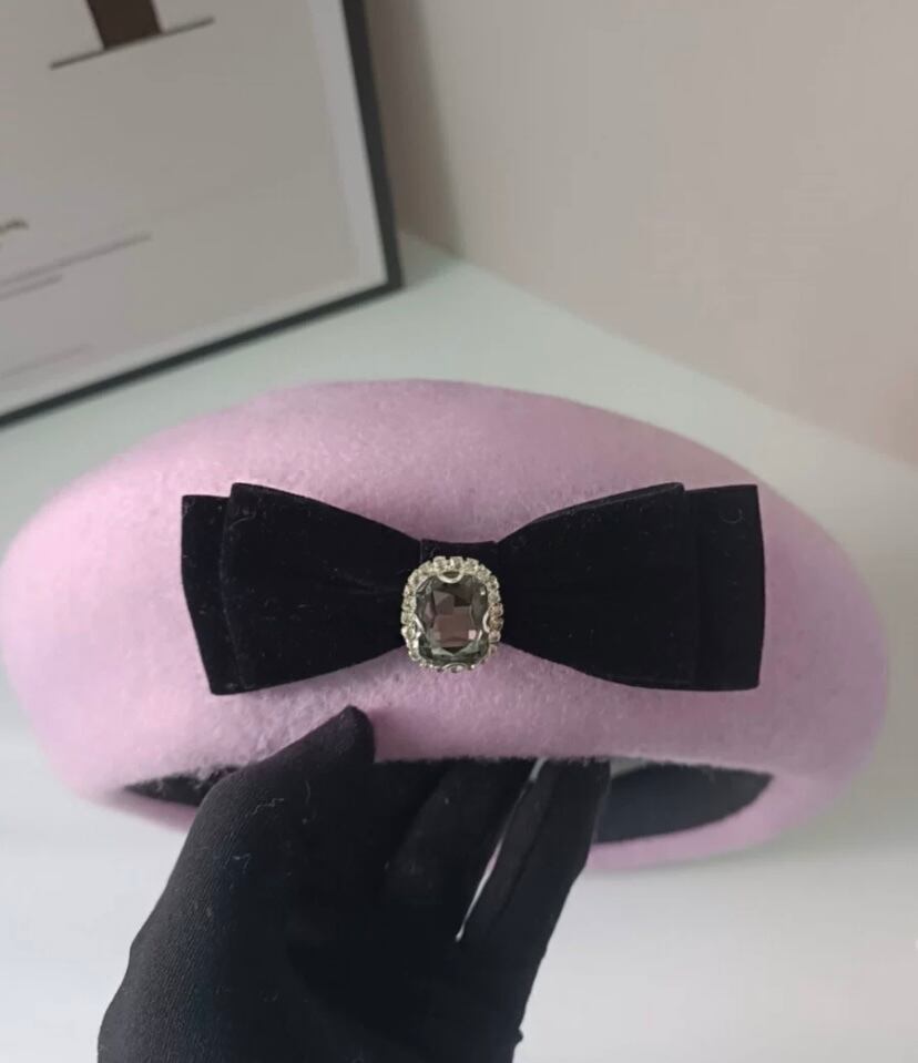 リボン、ラインストーン、ピンク、白、オレンジ、黒帽子、かわいい ベレー帽 リボン 原宿 渋谷