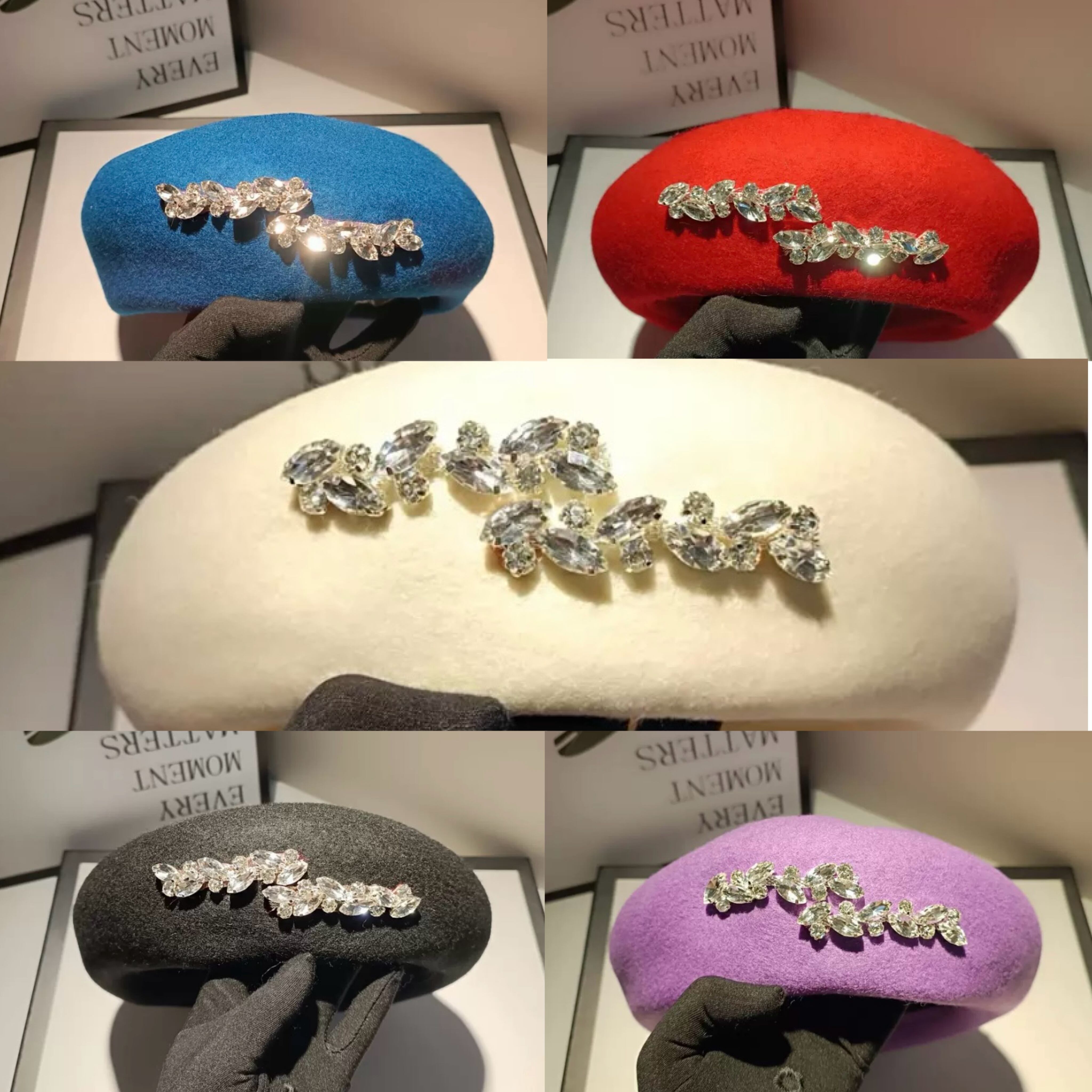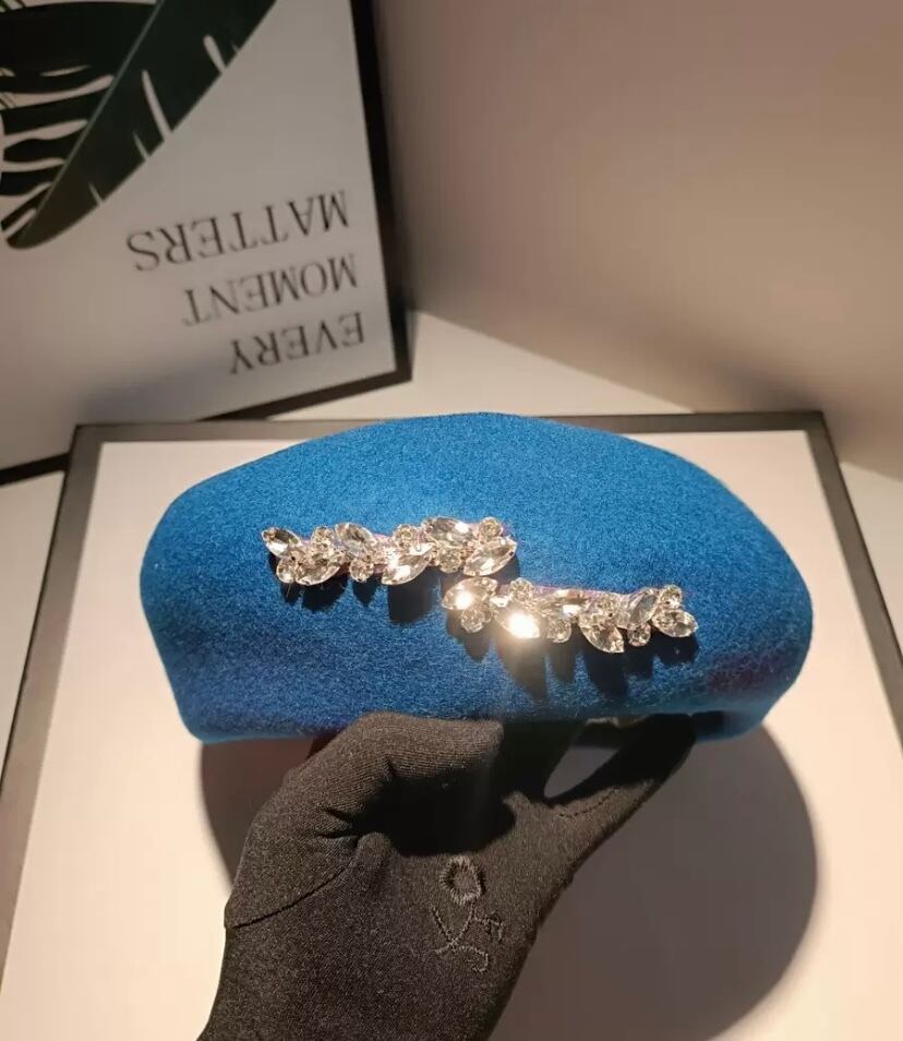 ラインストーン、水色、白、黒 ピンク、紫 帽子、メリー、ベレー帽、お嬢様、かわいい 原宿