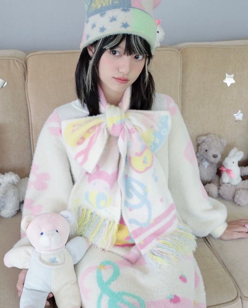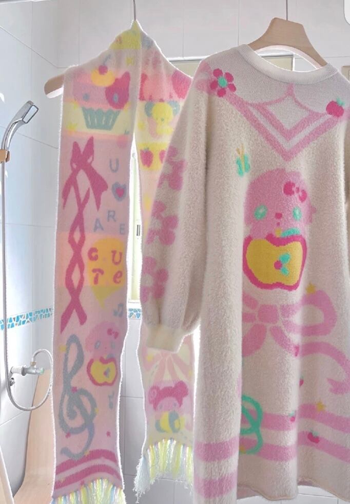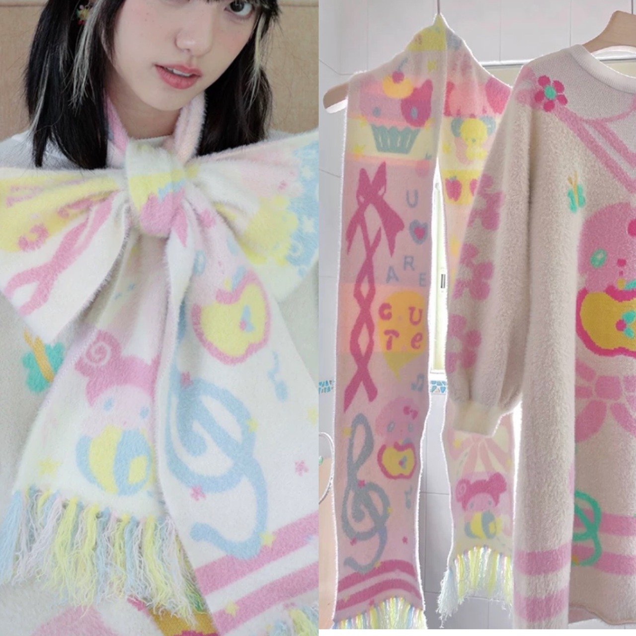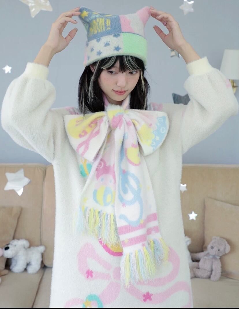 黄色 ピンク、白 ロング マフラー ショール アクセサリー、かわいい ガーリー、原宿