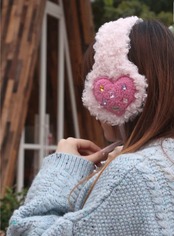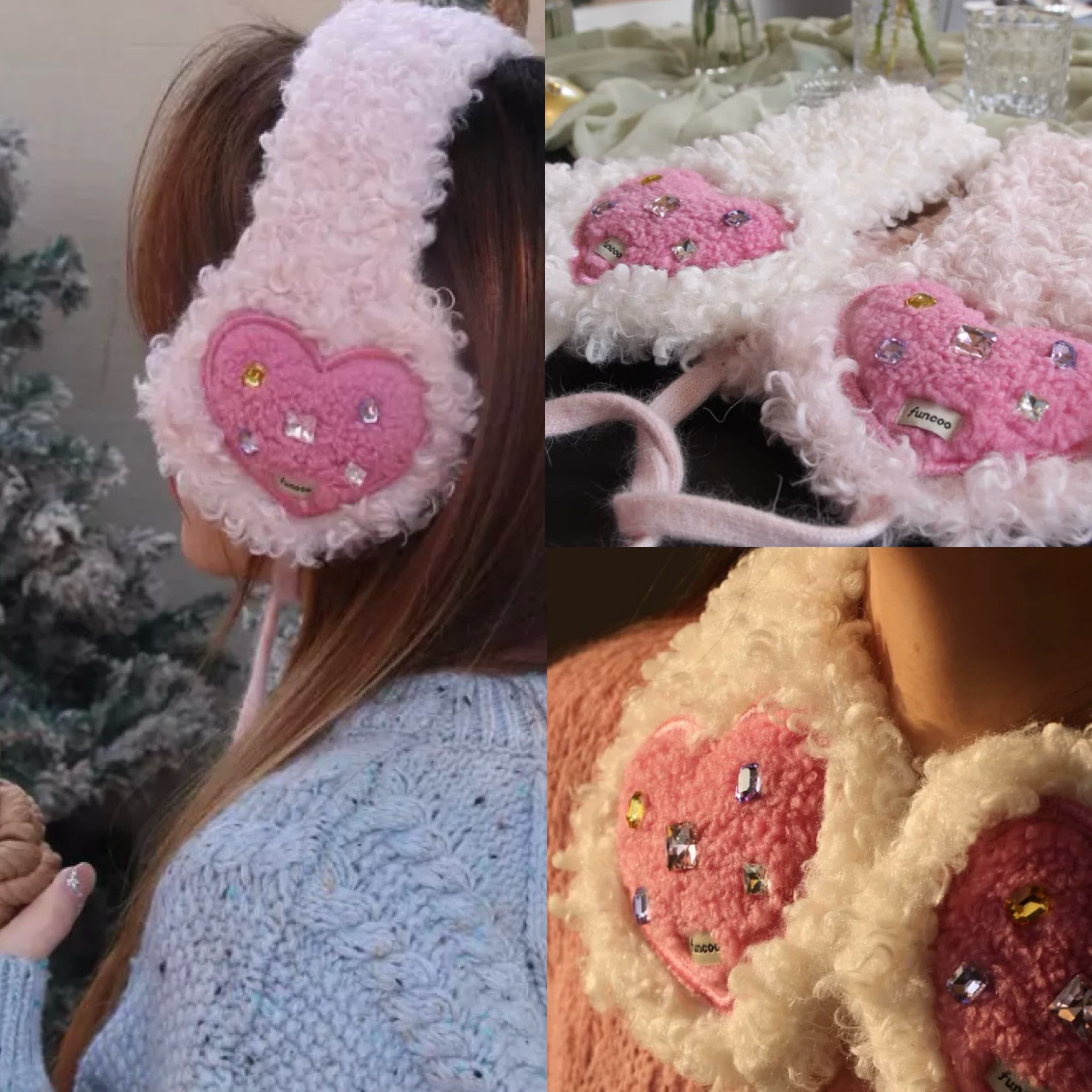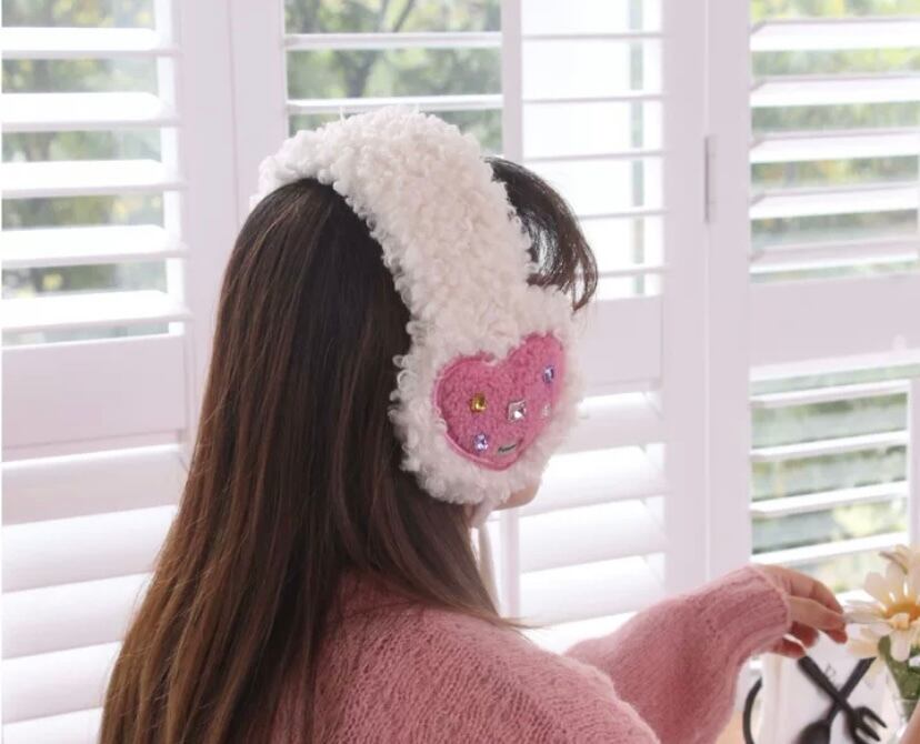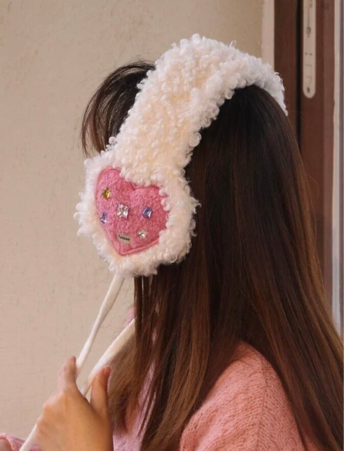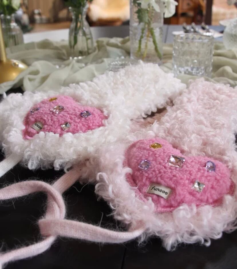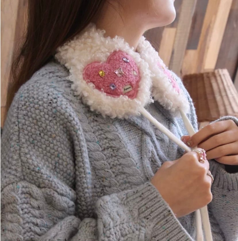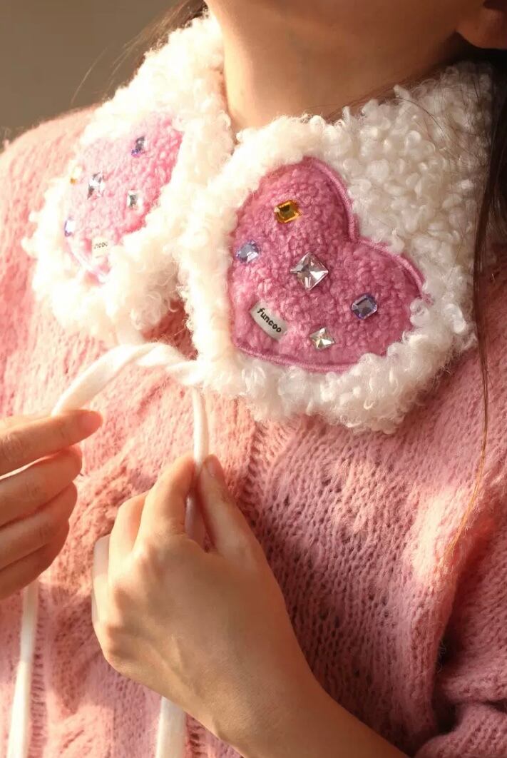 【付け襟、カチューシャ、マフラー、スリーウェイ】白 ピンク ラインストーン ハート ガーリー かわいい ふわふわ