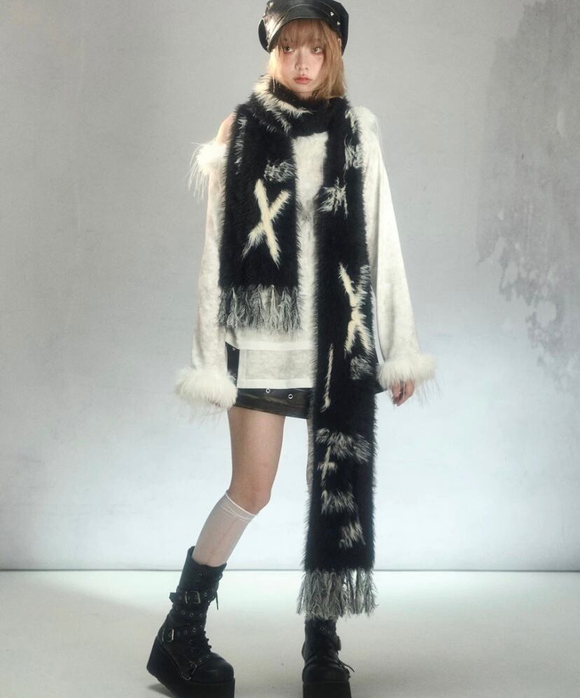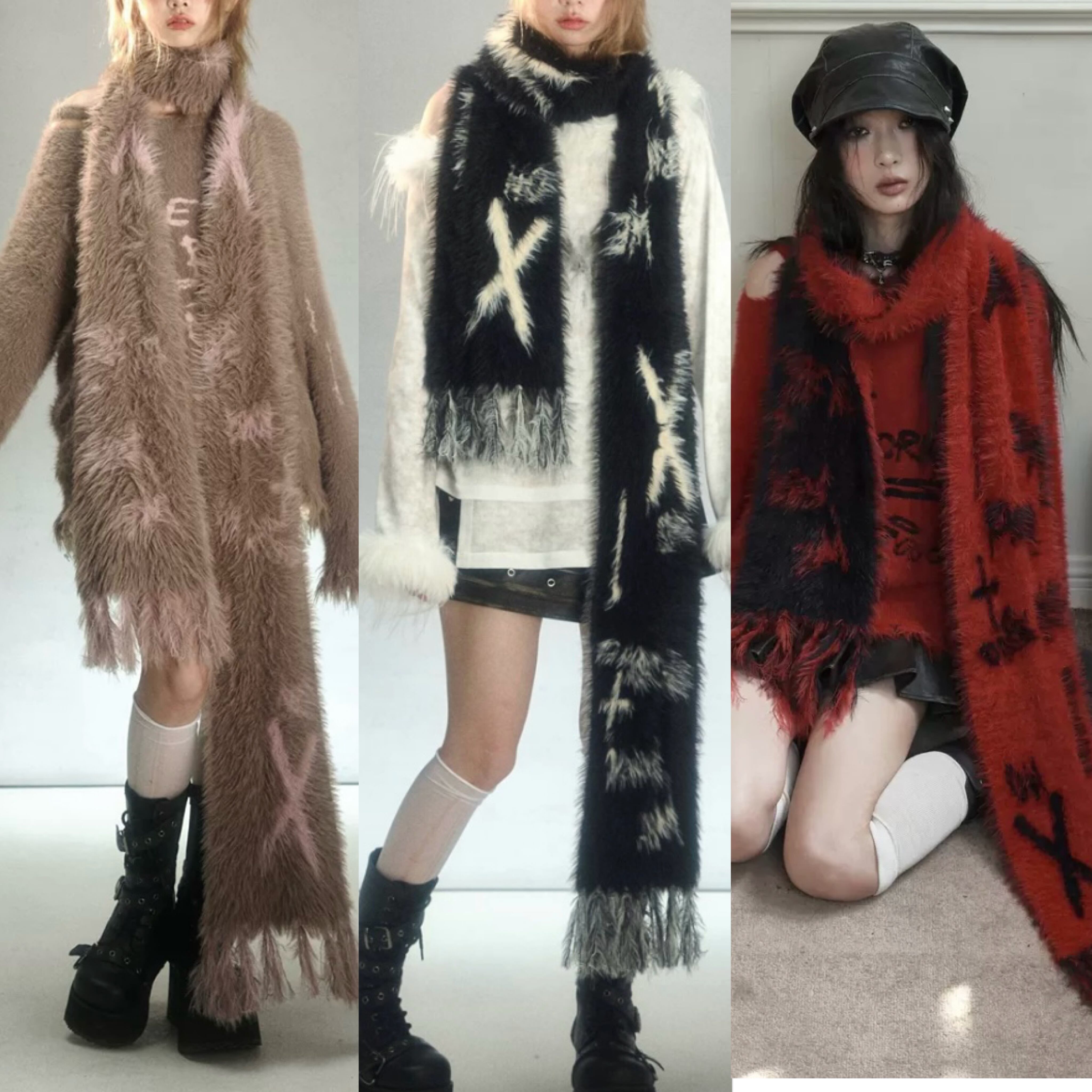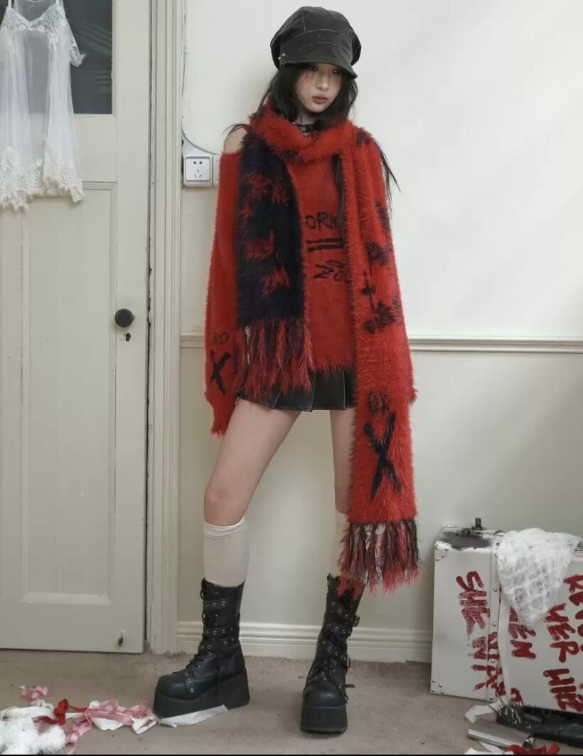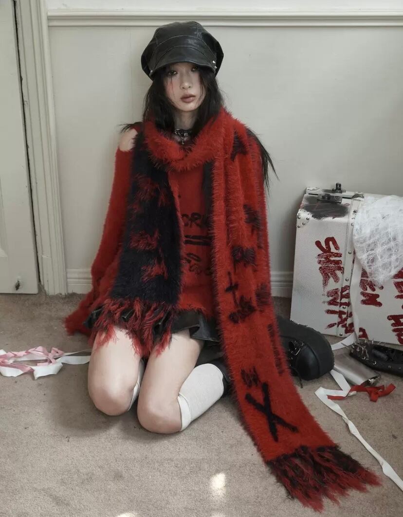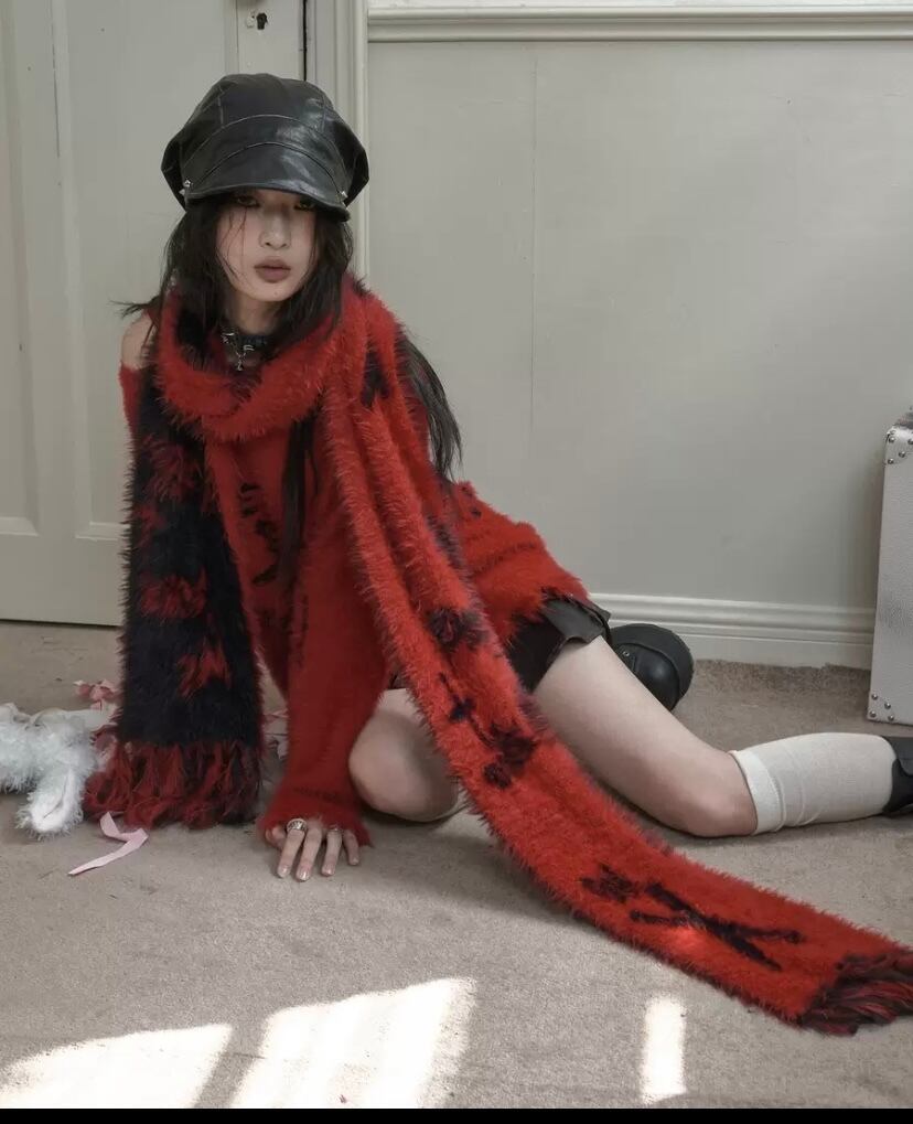 赤 黒 ベージュ、ピンク ロングマフラー、 小物 アクセサリー、カジュアル 原宿