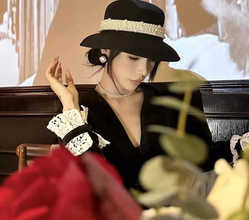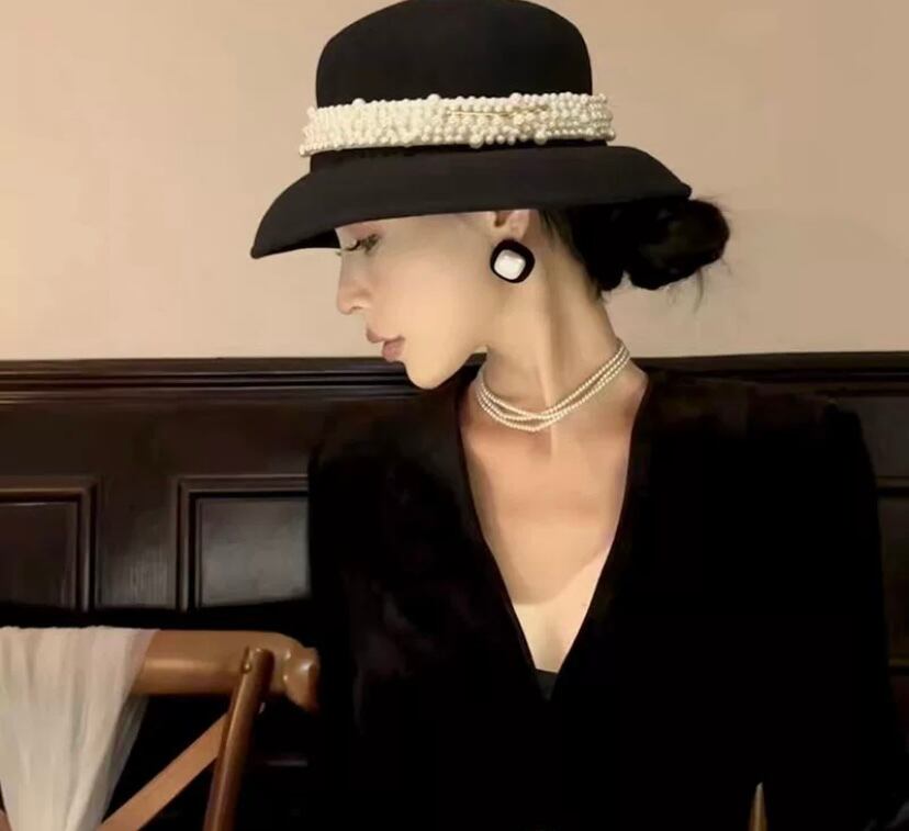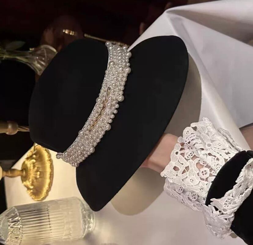 エレガント、黒 パール 帽子 ゴージャス パーティー ハット アクセサリー、小物