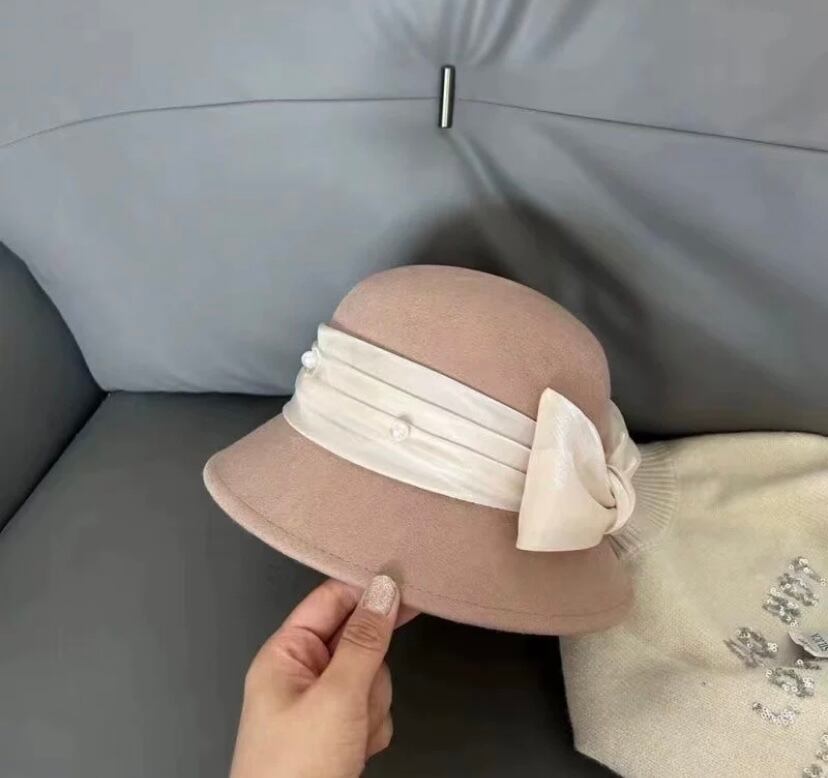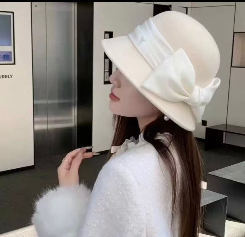 白 黒 ベージュ、パール リボン、エレガント、お嬢様、ヘアアクセサリー 帽子