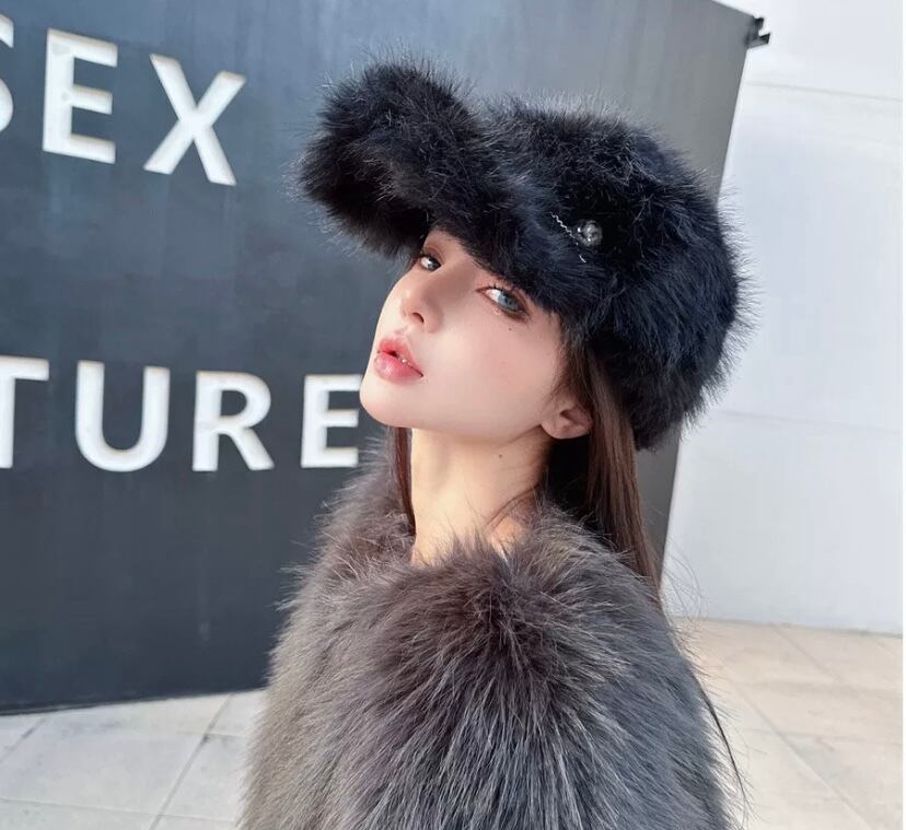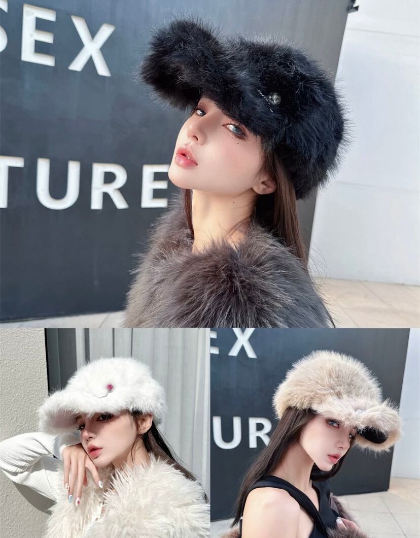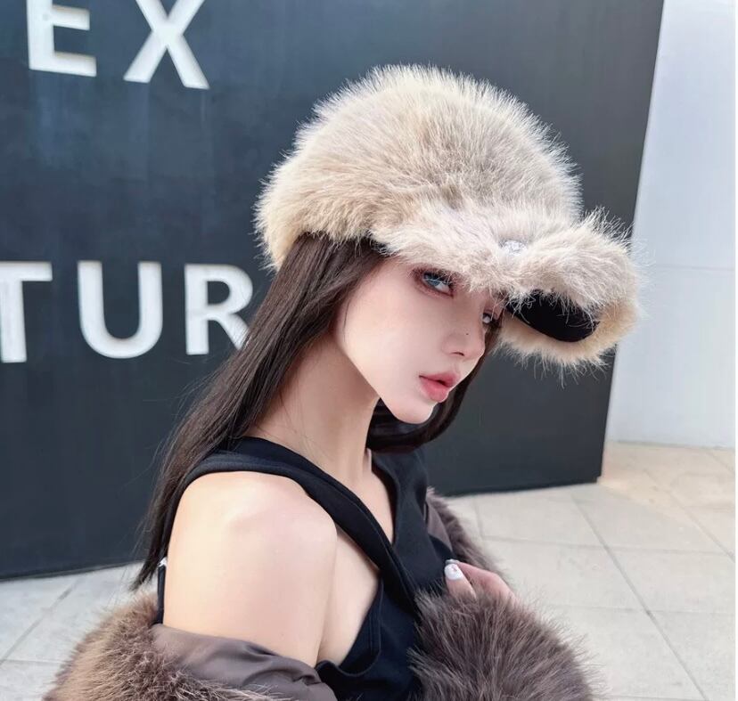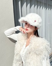 ベージュ、黒、白、ファー キャップ 帽子、アクセサリー、小物、ヘアアクセサリー、カジュアル