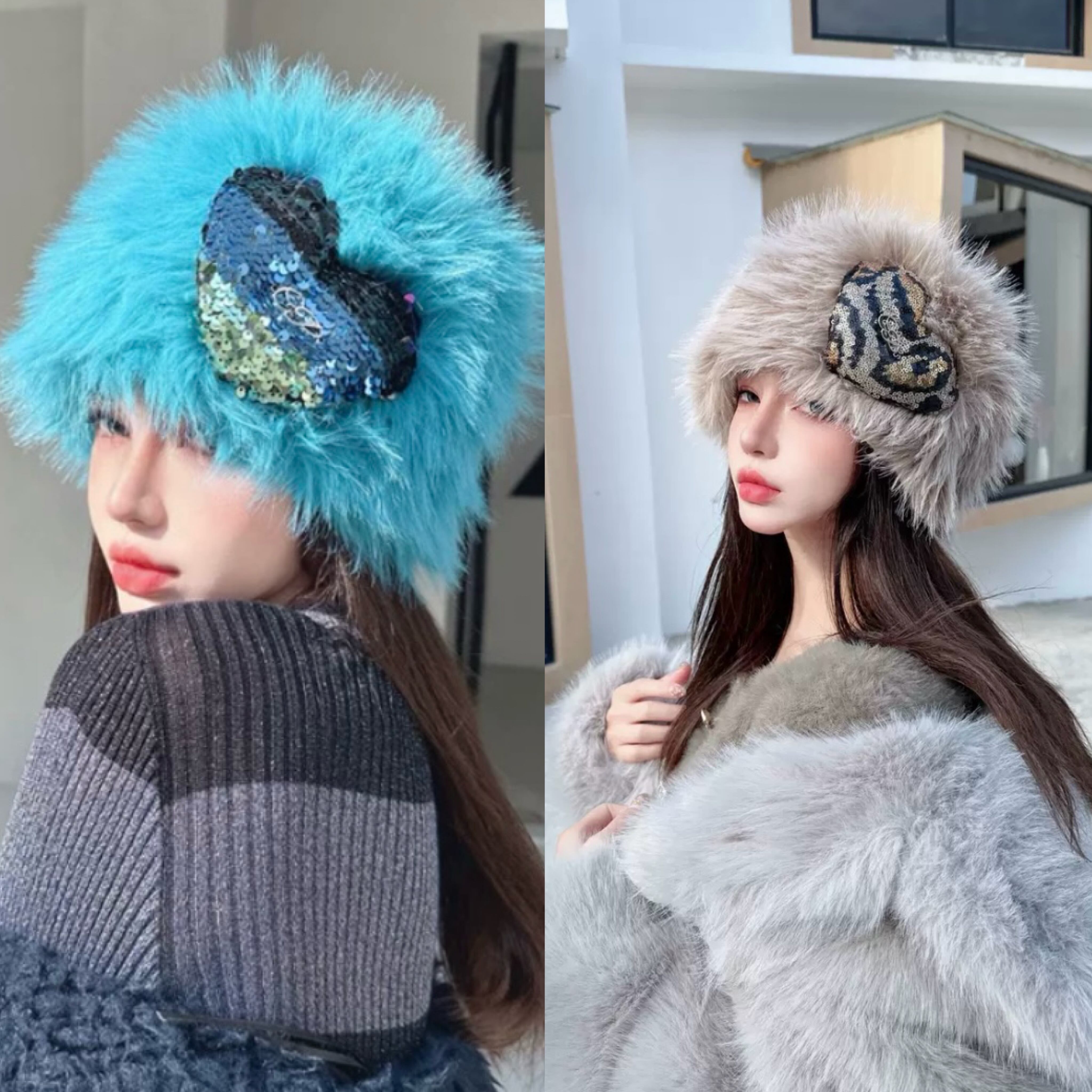 水色 ハート ベージュ きらきら ハート 帽子、アクセサリー、小物 豹柄 スパンコール