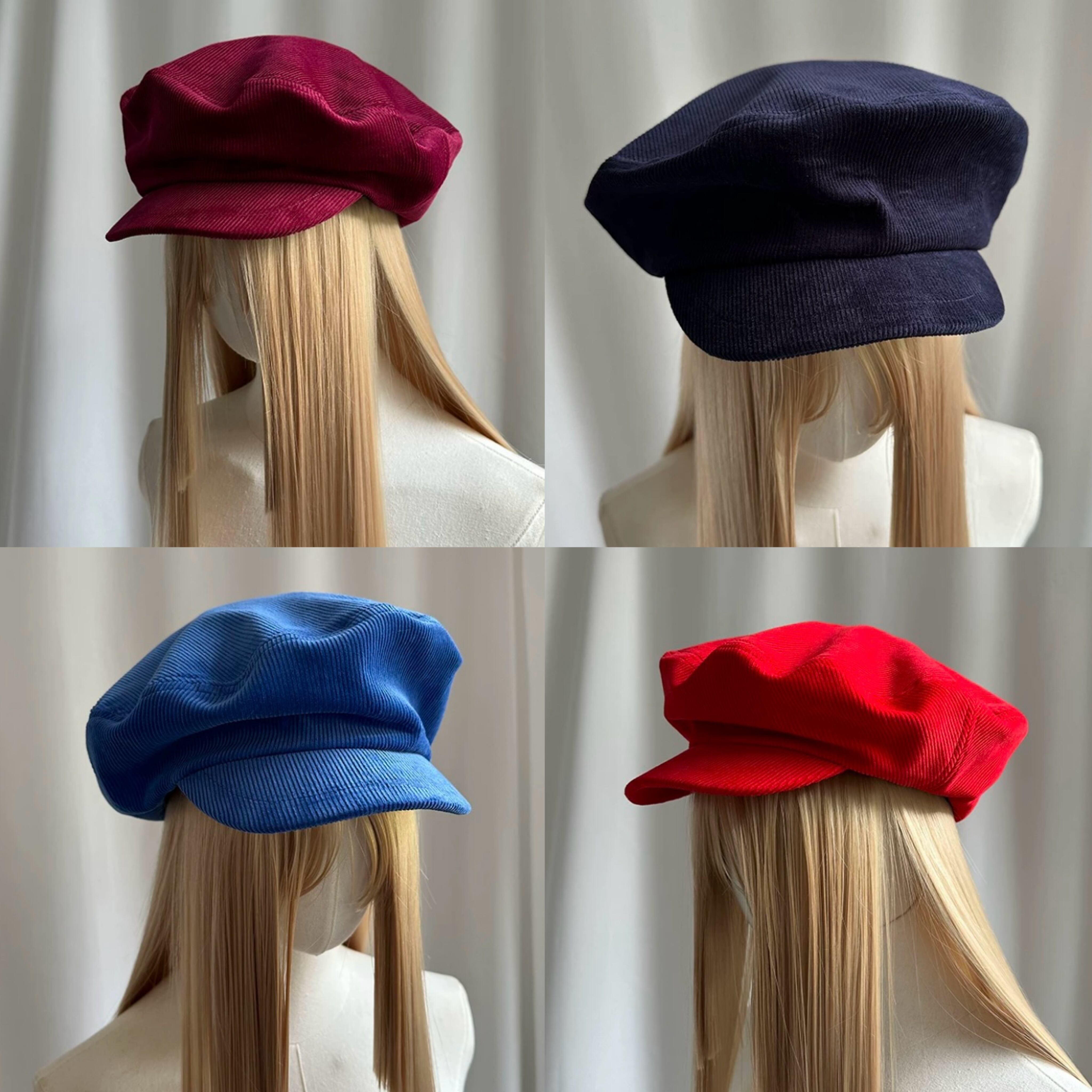 コーデュロイ、赤、ワインレッド、水色、ネイビー、ブルー星帽子、キャスケット、ベレー帽、ヘアー、アクセサリー、小物、秋冬、カジュアル 古着