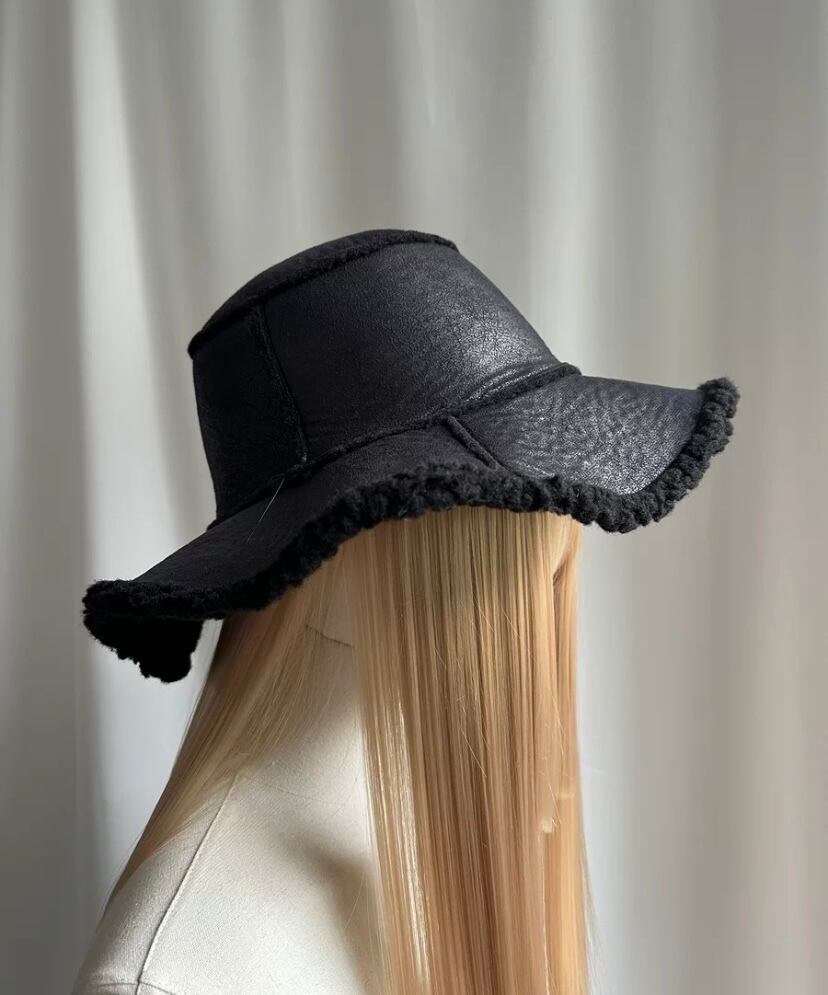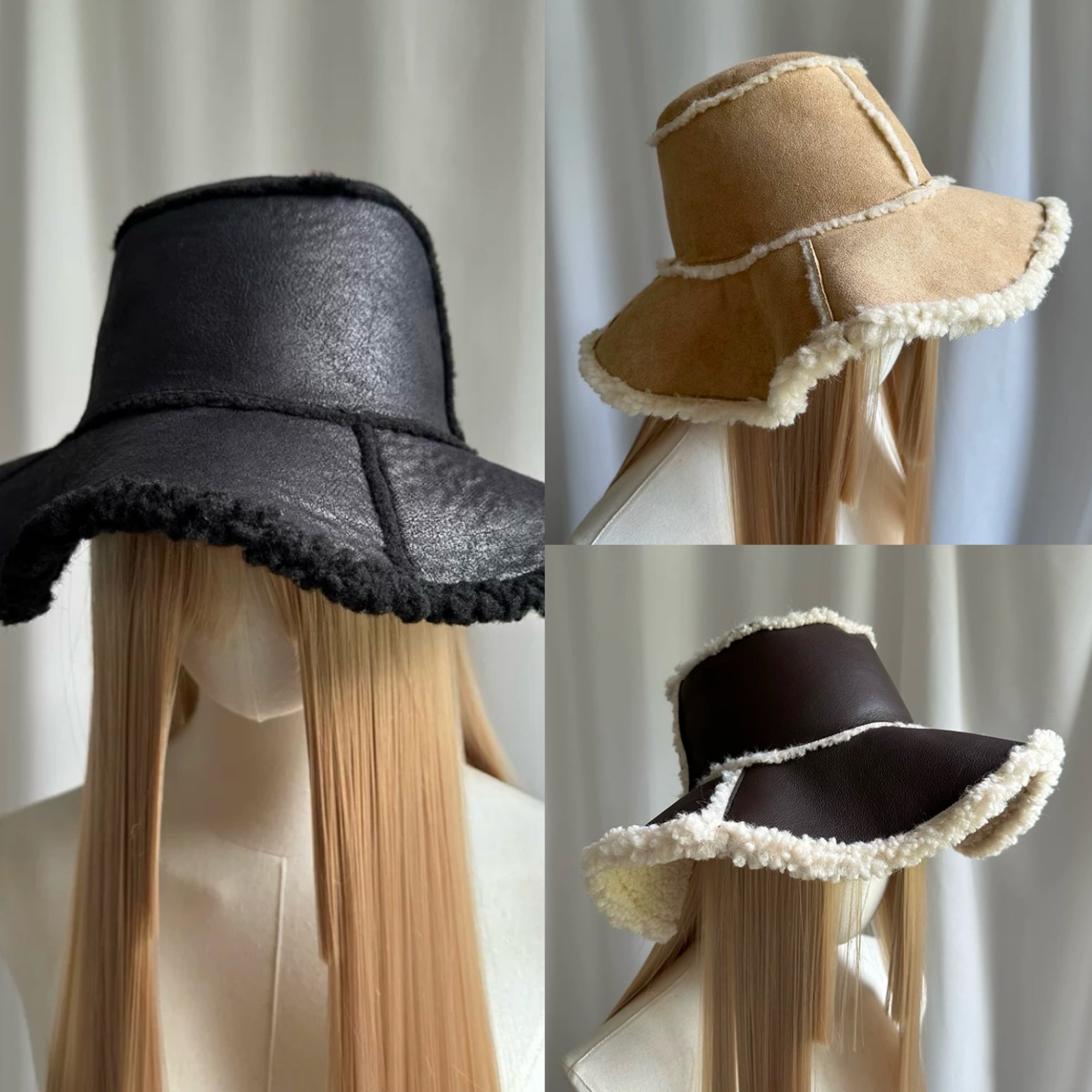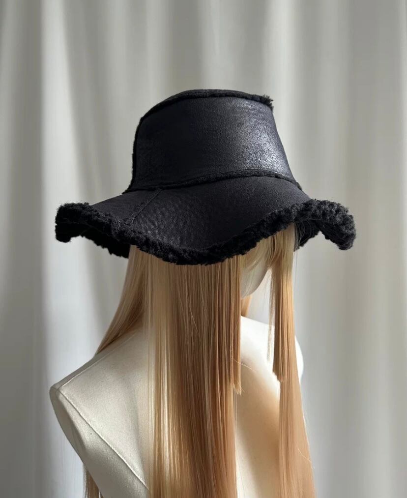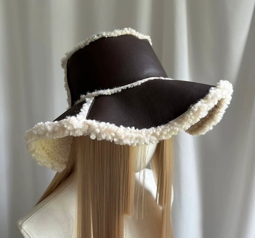 帽子、小物 白 レザー、黒 バケットハット、ムートン、アクセサリー、ヘアアクセサリー、小物 ふわふわ