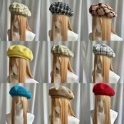黄色 チェック 水色 赤 ピンク 帽子、小物 白 レザー、黒 バケットハット、ムートン、アクセサリー、ヘアアクセサリー、小物 ふわふわ コーデュロイ 画家