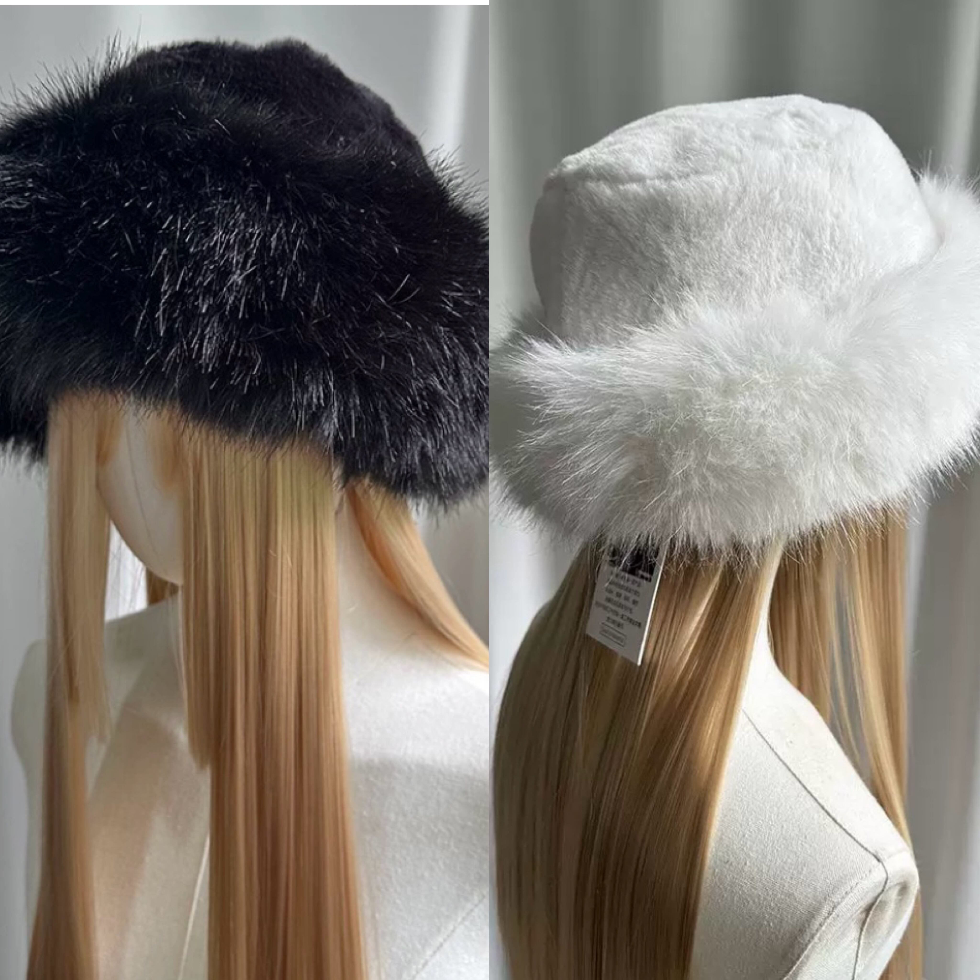 黒 白 ファー ゴージャス 帽子、小物 白 レザー、黒 バケットハット、ムートン、アクセサリー、ヘアアクセサリー、小物 ふわふわ