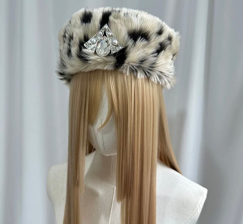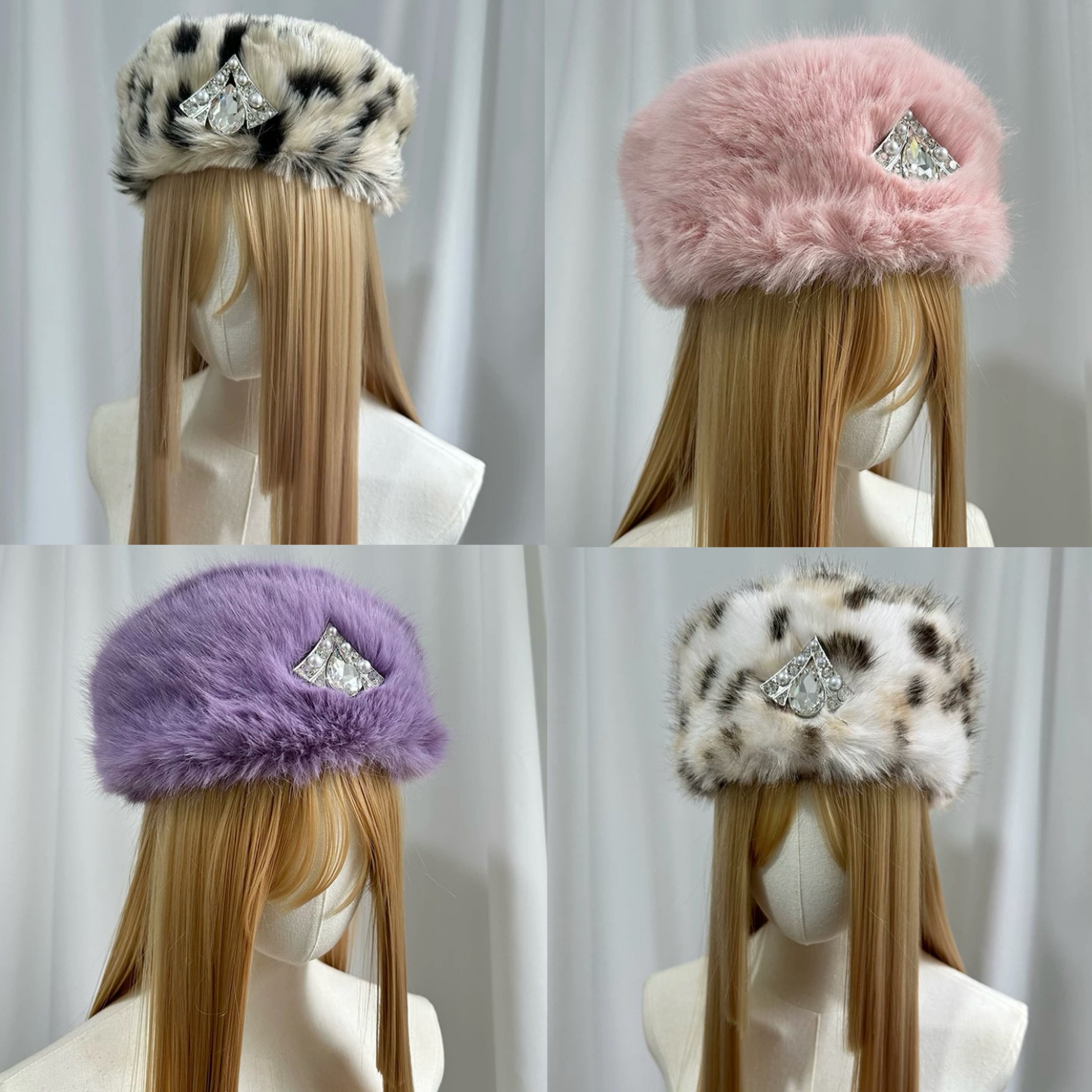 レオパード ヒョウ柄 ピンク 紫 ラインストーン 帽子、小物 白 レザー、黒 バケットハット、ムートン、アクセサリー、ヘアアクセサリー、小物 ふわふわ キャスケット 古着 原宿 可愛い マダム