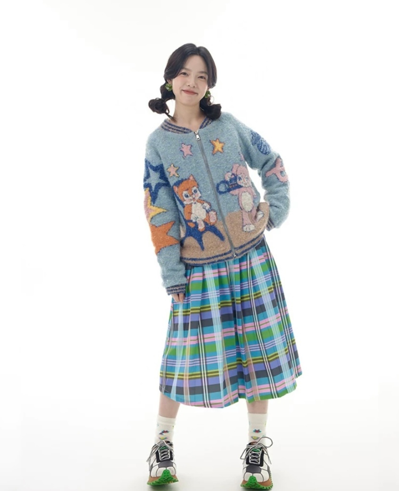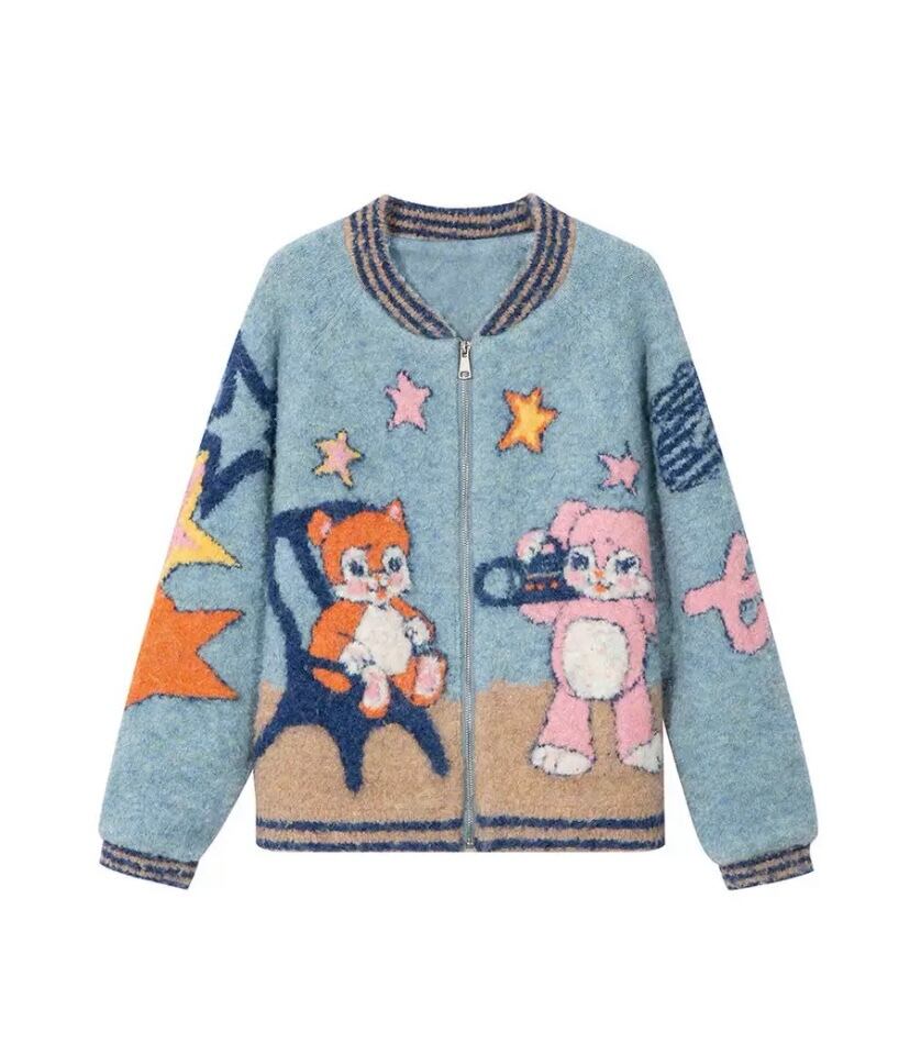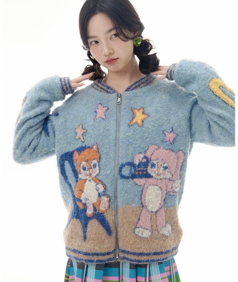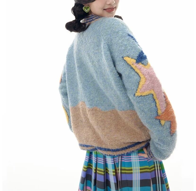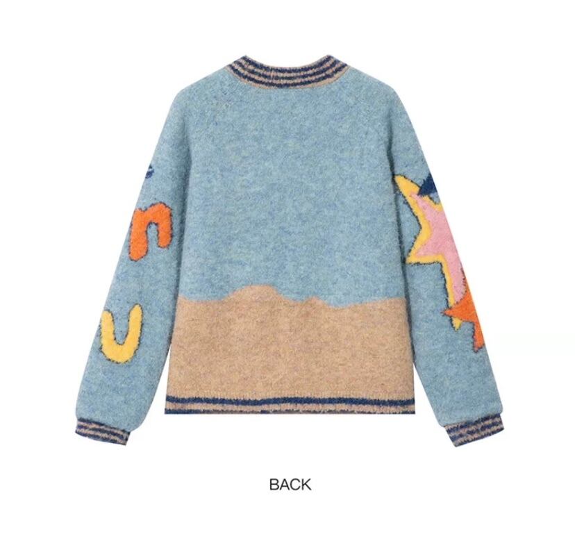 くま 熊さん、ピンク オレンジ 水色 月 星 黄色 かわいい レトロ 古着、原宿 カーディガン、セーター アウター トップス