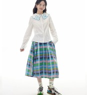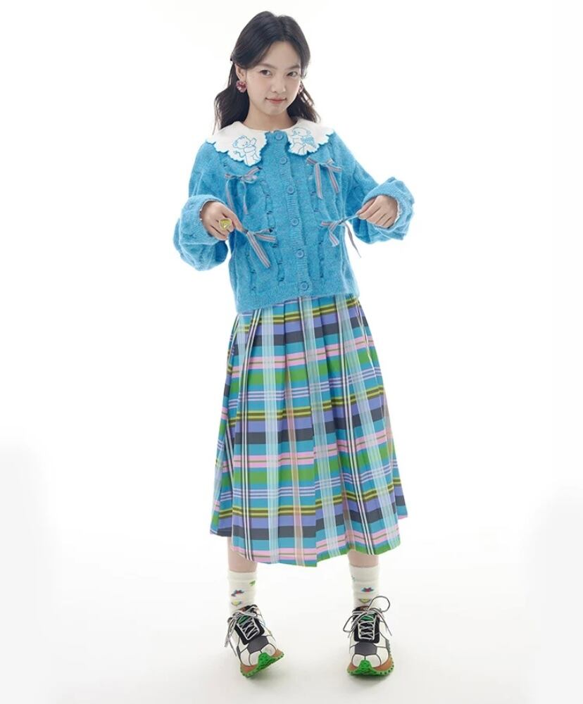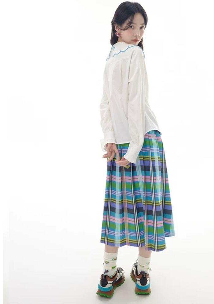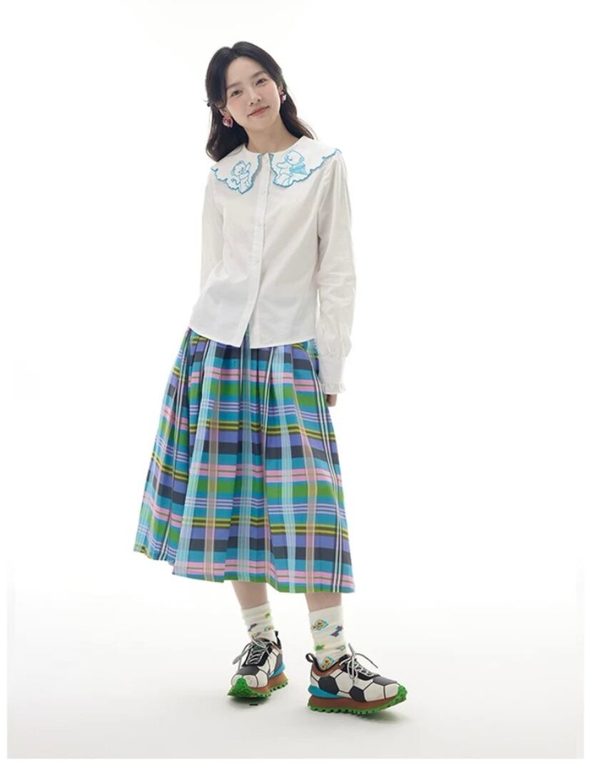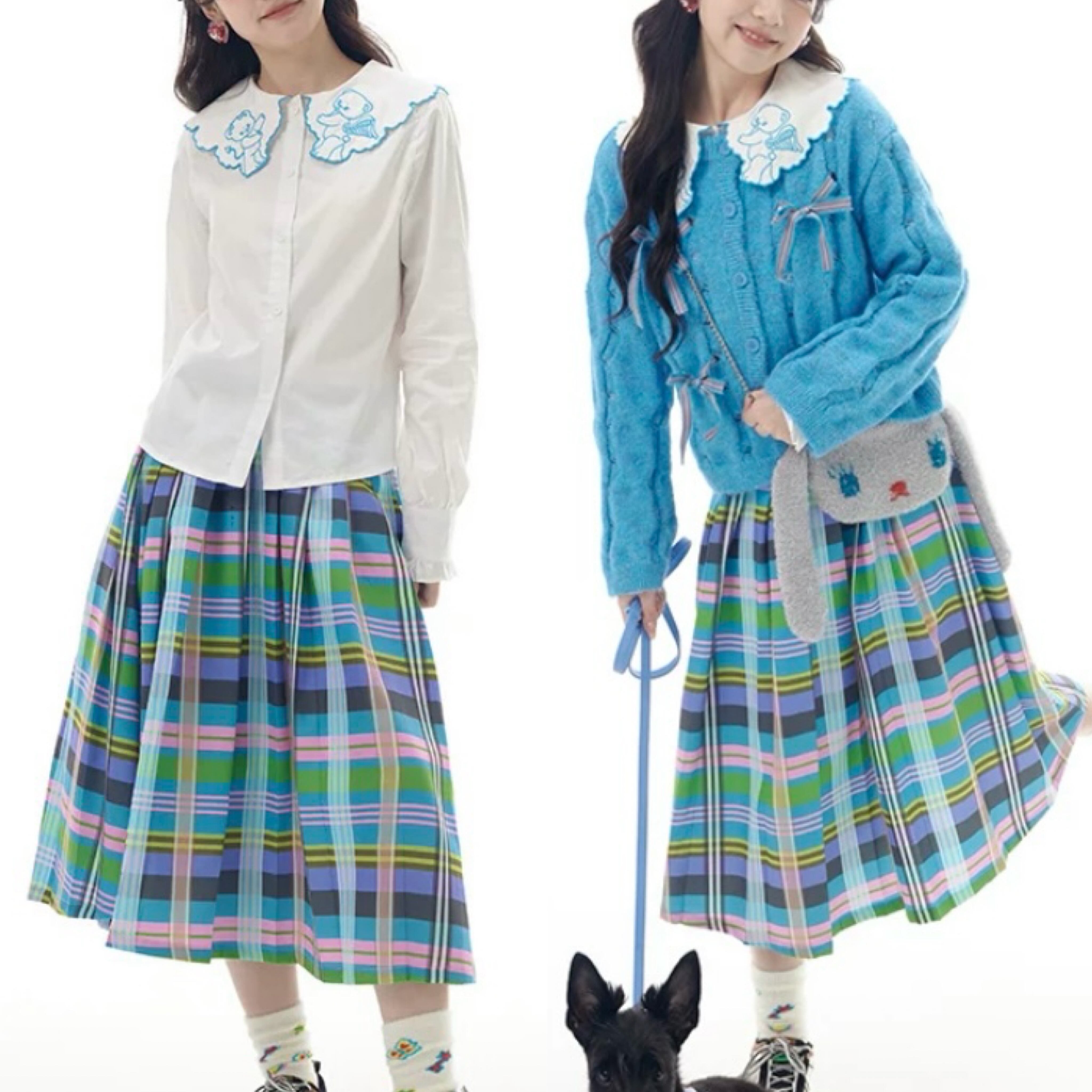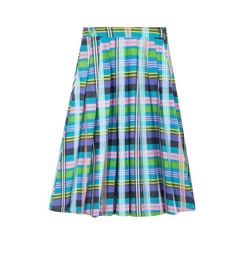 水色 チェック、スクール、ピンク、制服 プリーツ スカート ボトムス 膝丈 スカート 原宿