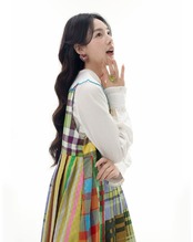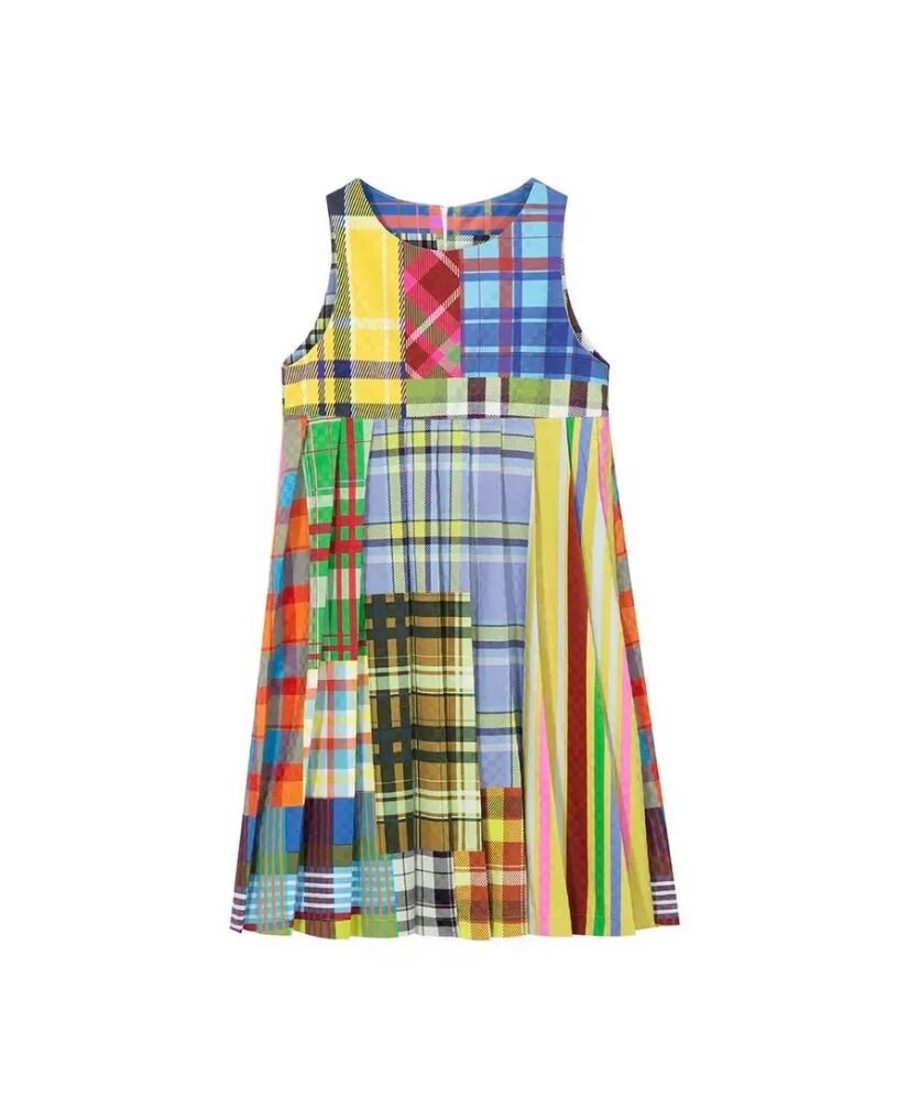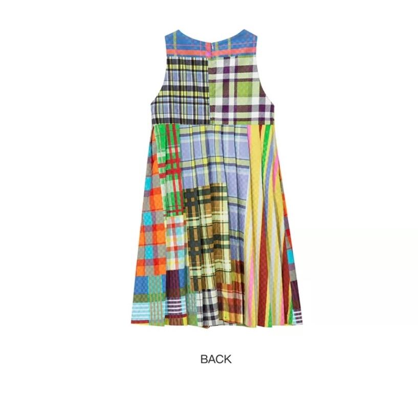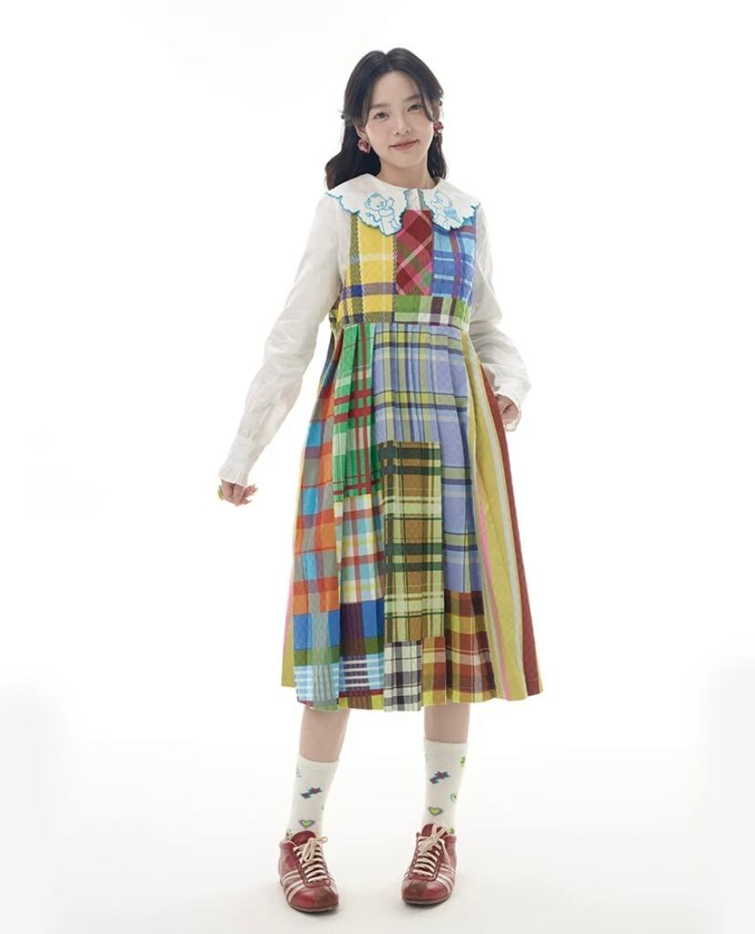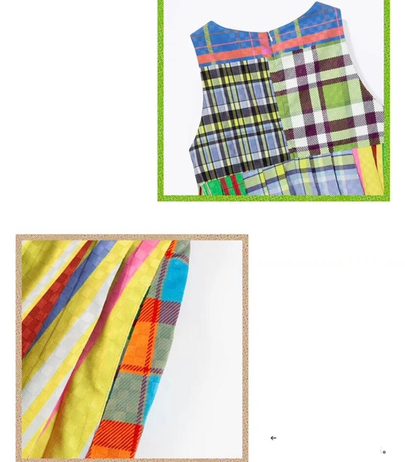 パッチワーク 黄色 チェック 水色、オレンジ かわいい 原宿 プリーツ スカート レトロ 華やか カラフル
