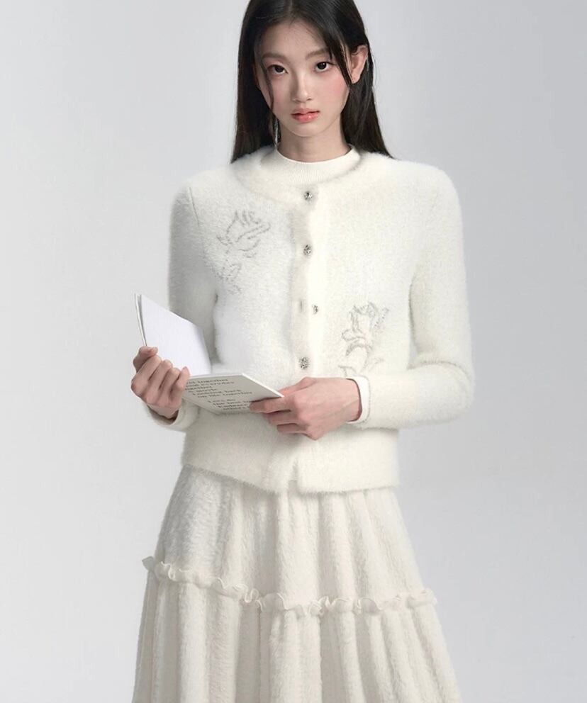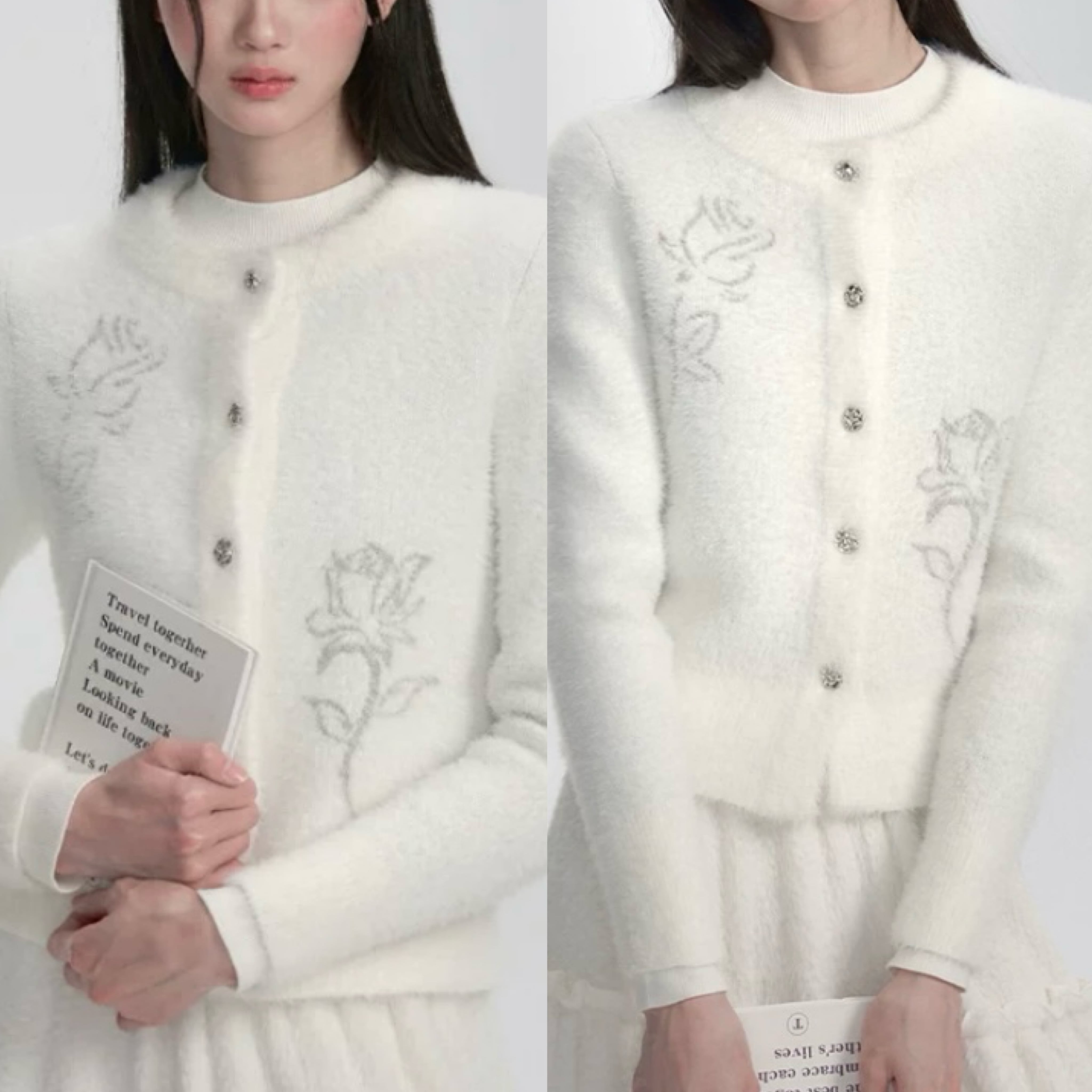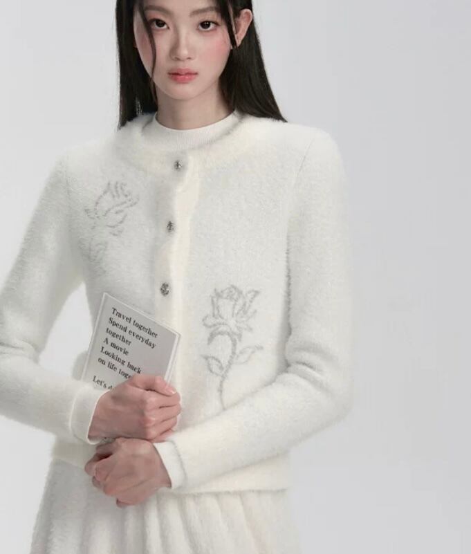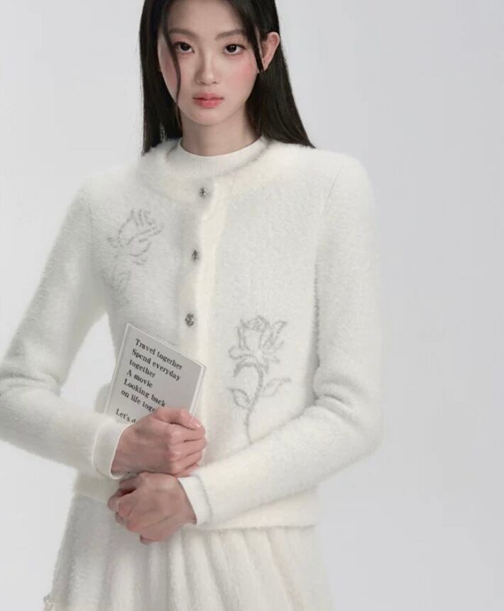 白 薔薇 フラワー ホワイト、花柄、カーディガン、セーター、お嬢様、渋谷 原宿 表参道