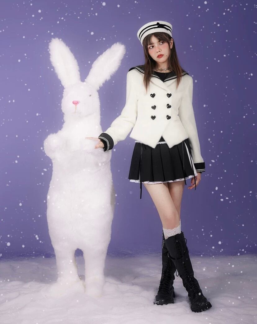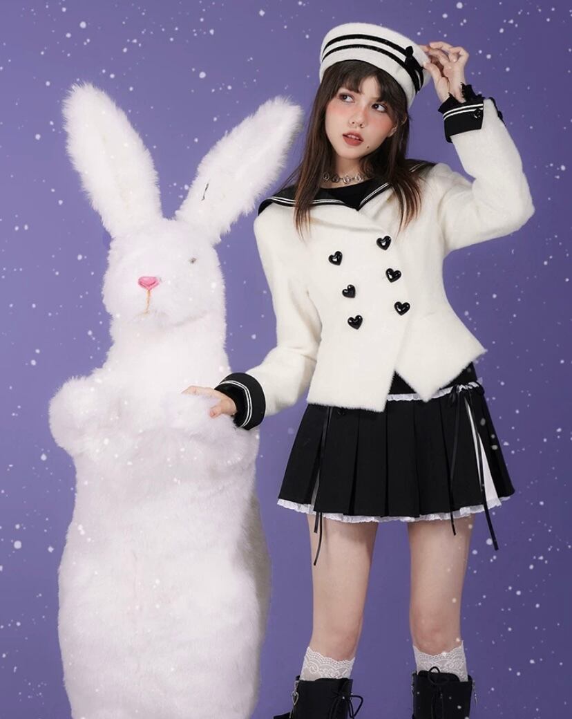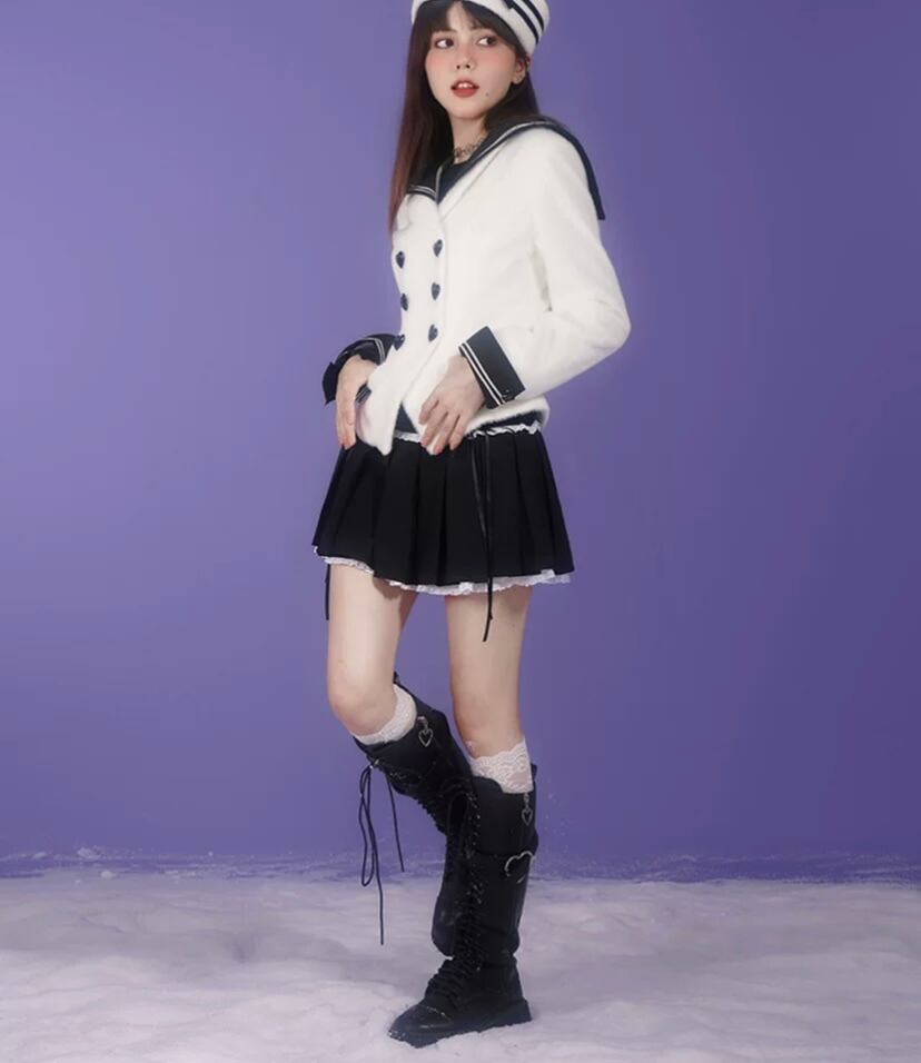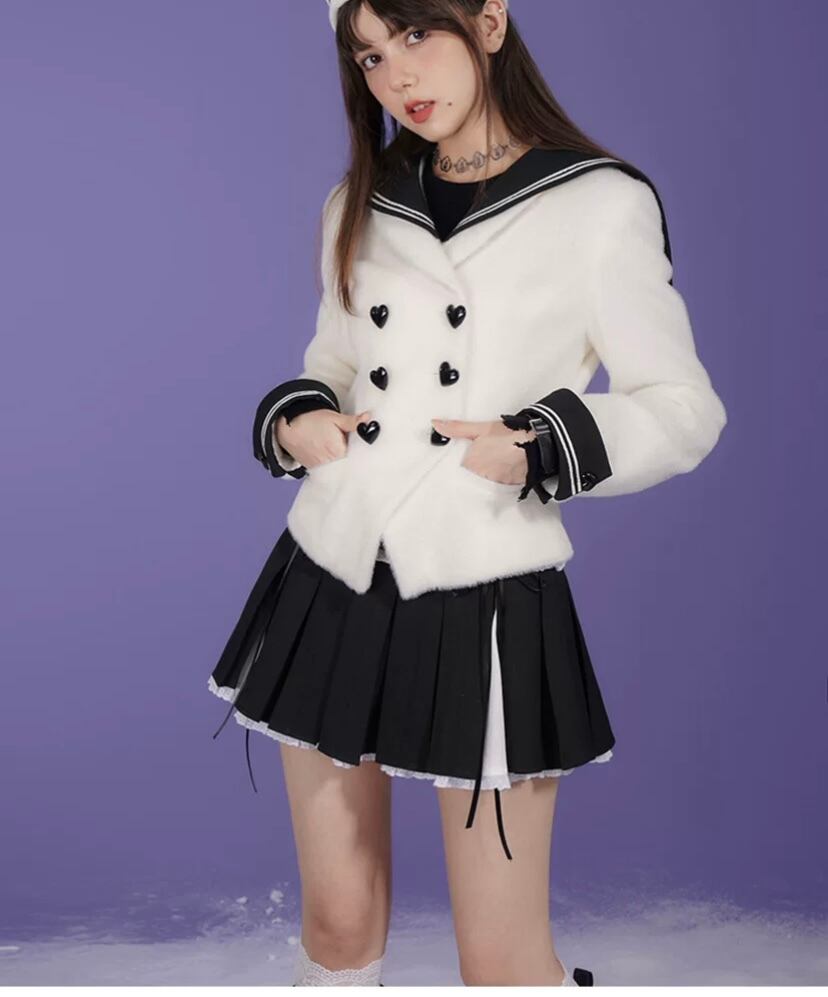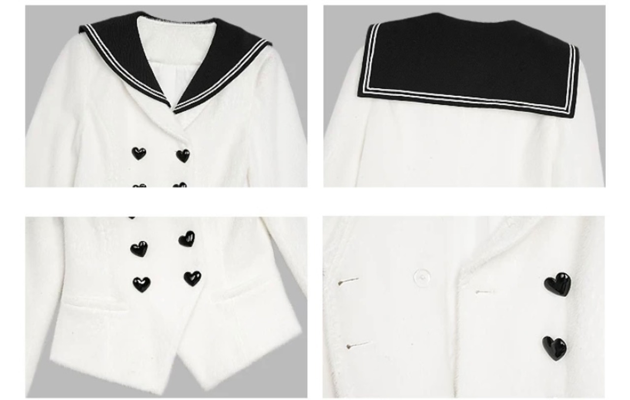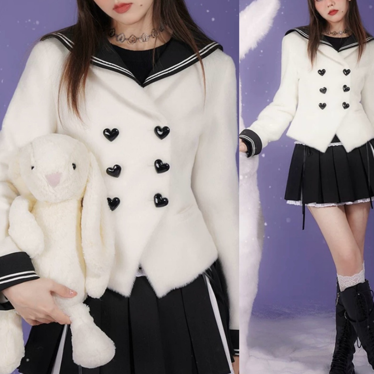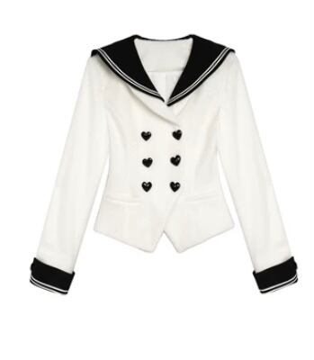 白 ハート セーラー、ネイビー ジャケット、 スクール 制服、かわいい 原宿 マリン