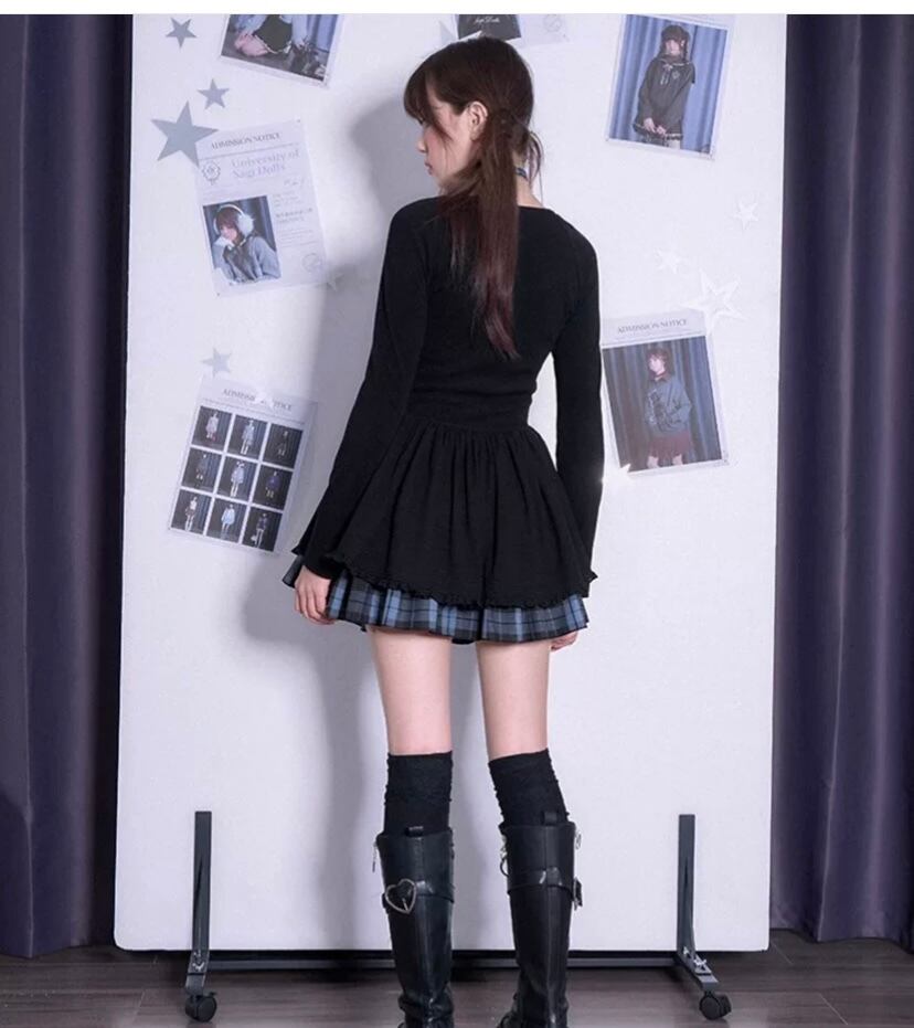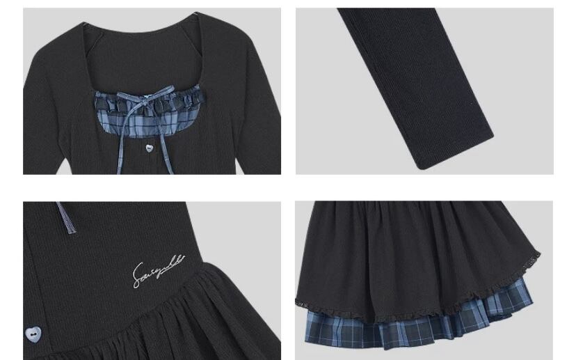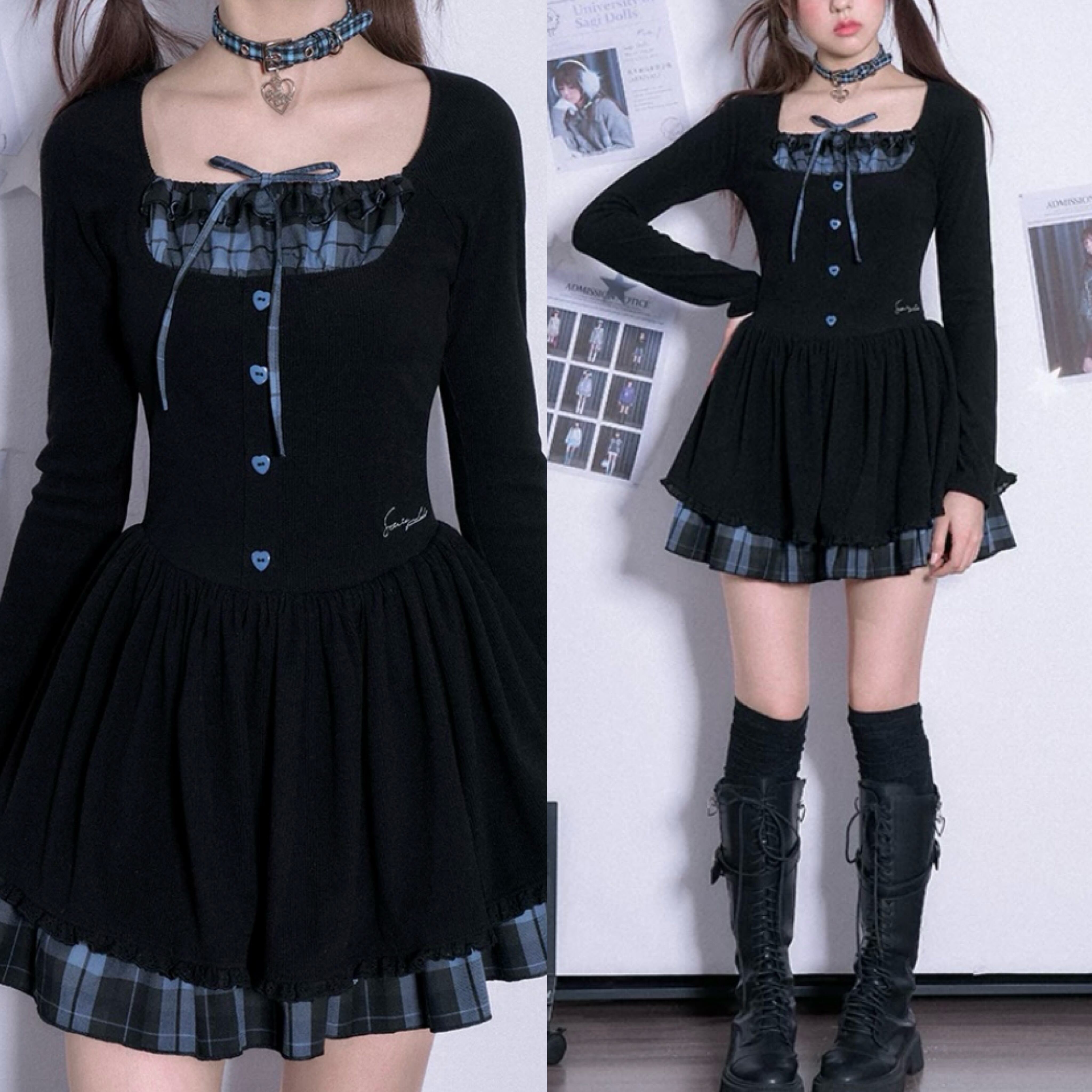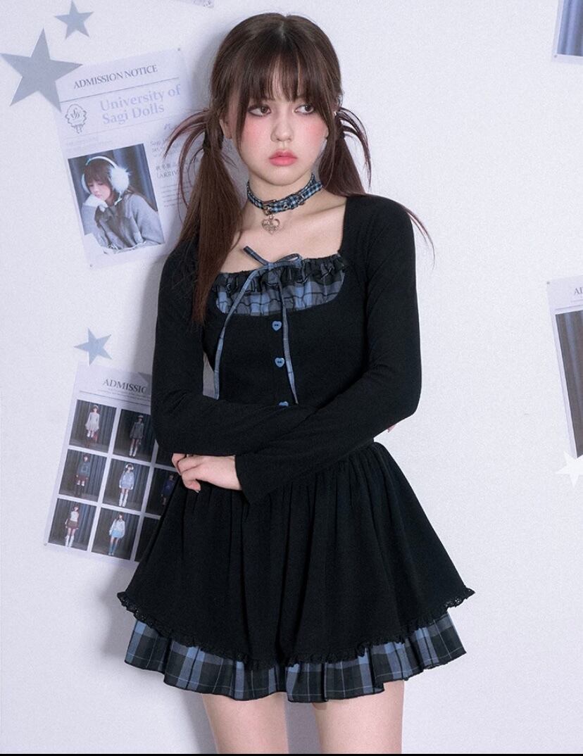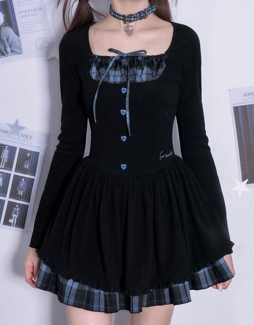 ガーリー ワンピース チェック、スクール、制服、原宿 かわいい リボン、お嬢様