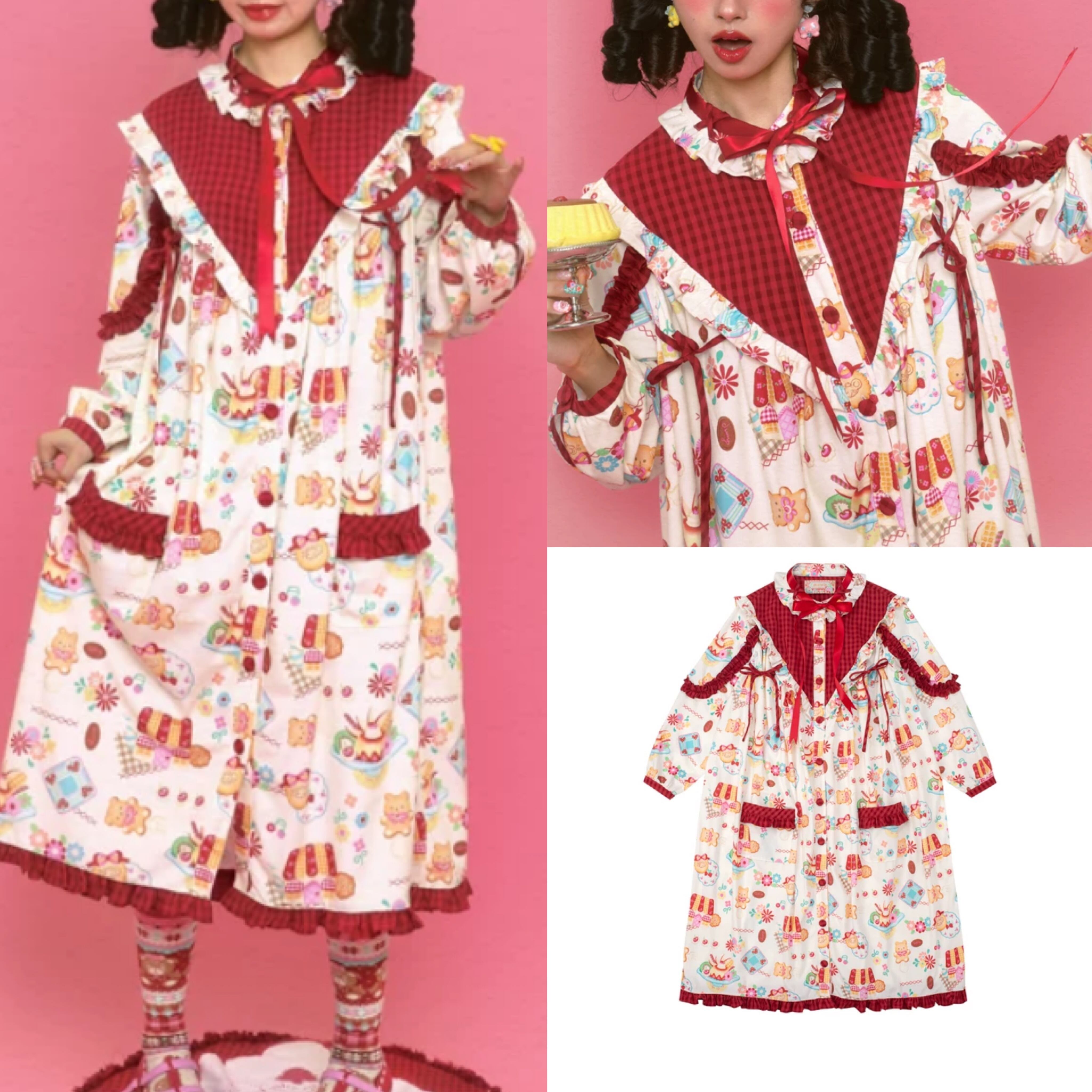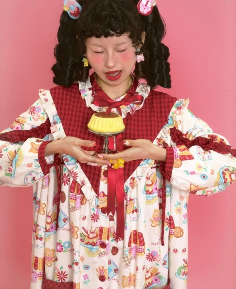 カーディガン ブラウス、コート ワンピース、ジャケット、アウター、赤 リボン、かわいい 原宿 レトロ ロリータ