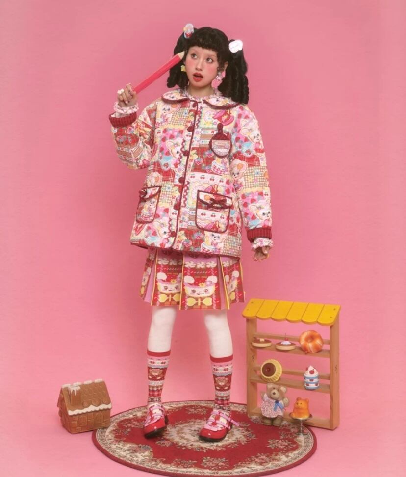 赤ピンク レトロ 原宿 、丸襟 ジャケット、アウター コート ワンピース、カーディガン、トップス ダウンコート