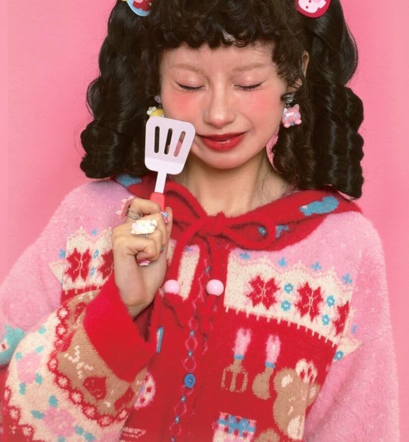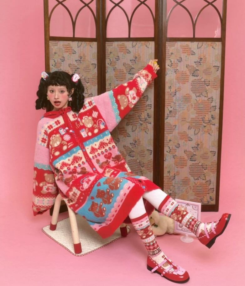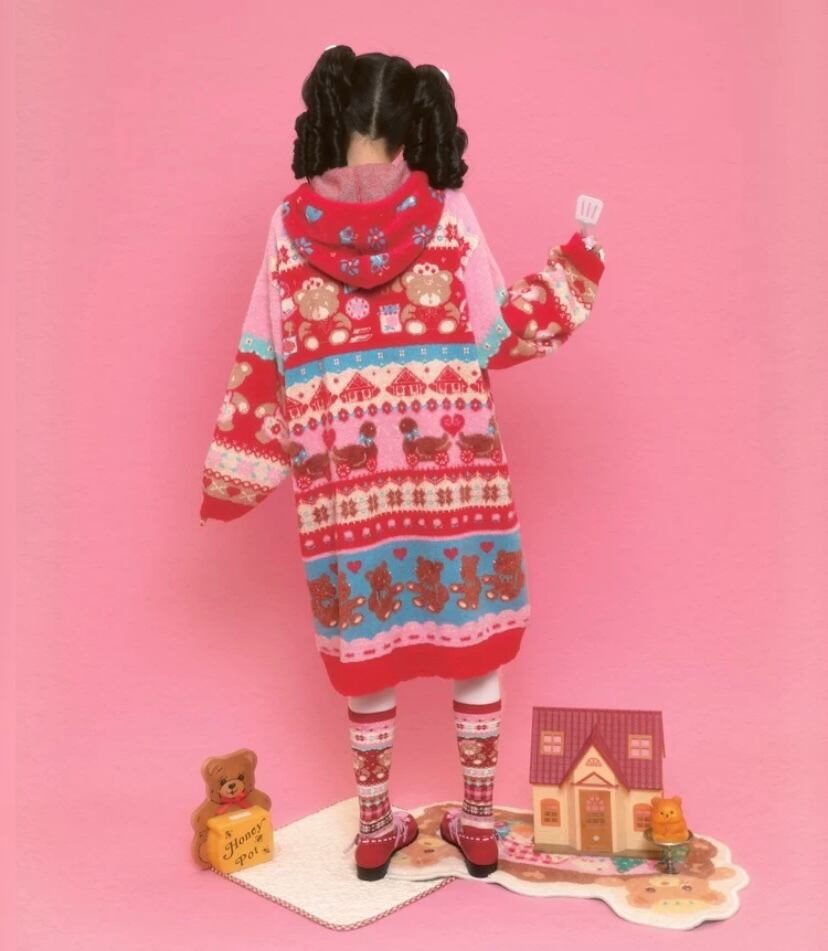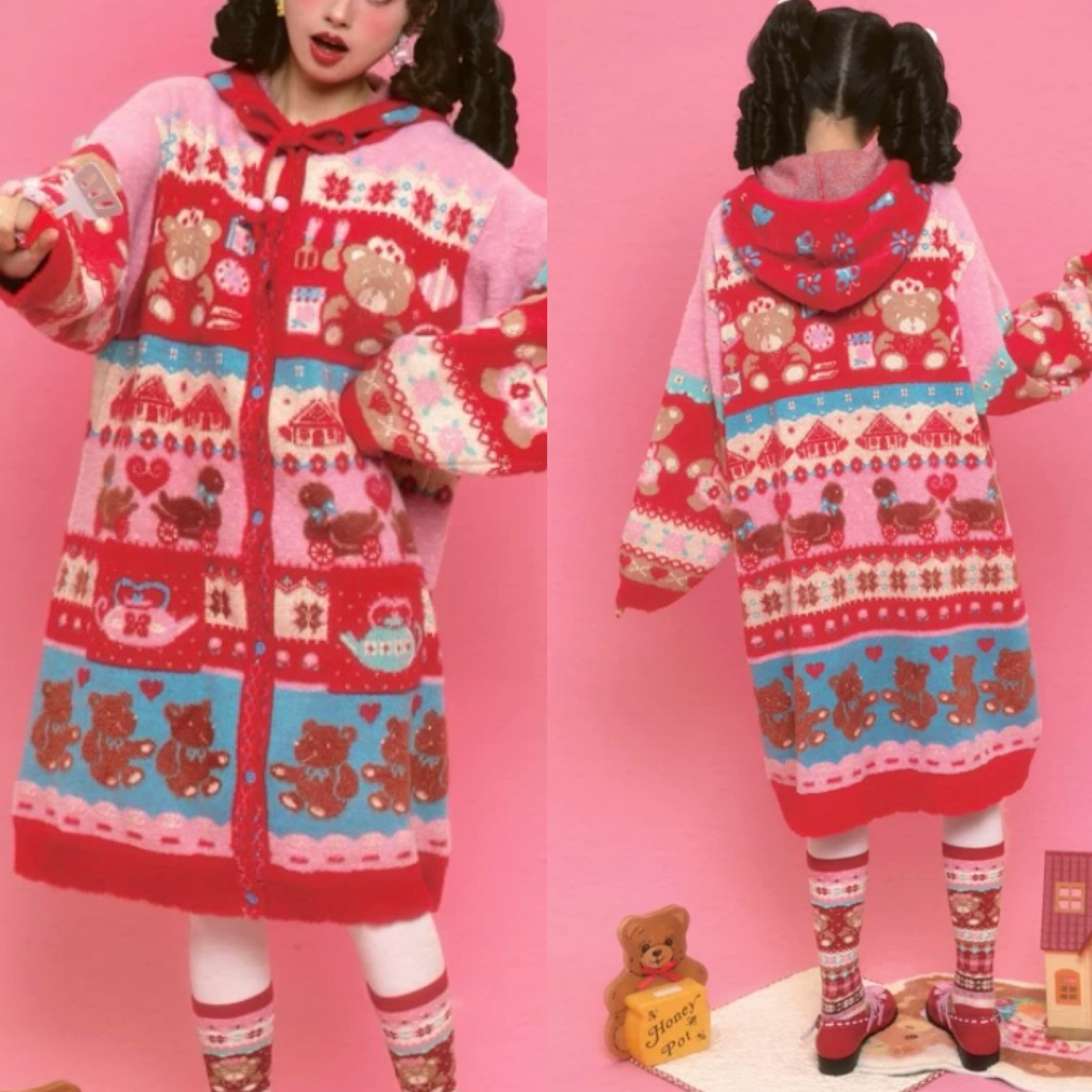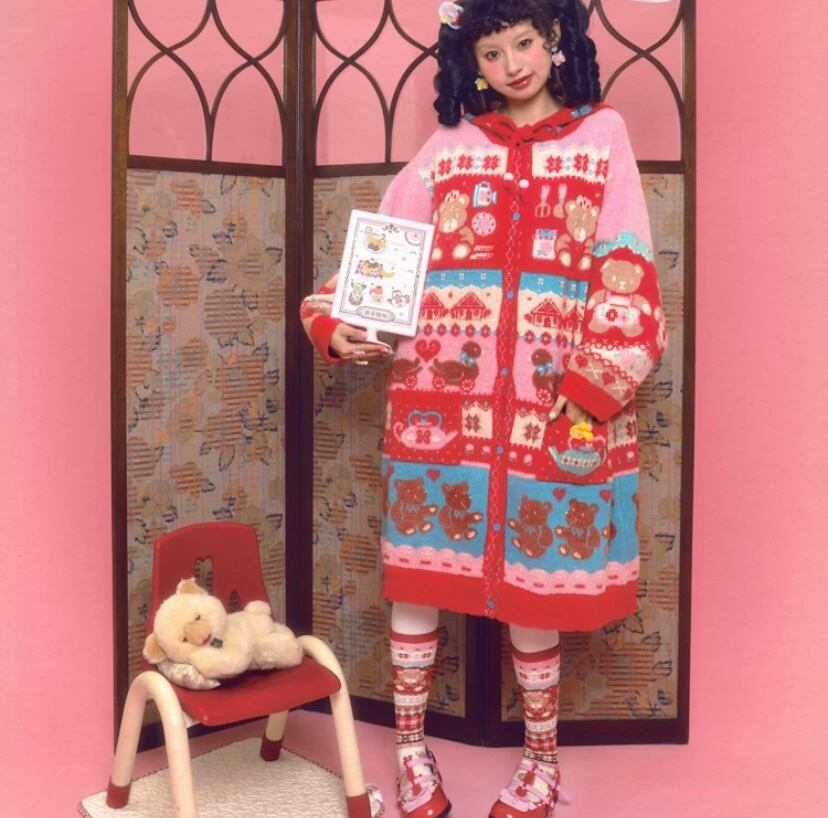 ピンク、赤 パッチワーク クマ フード パーカー コート ジャケット カーディガン、水色 原宿 ロリータ かわいい