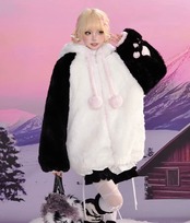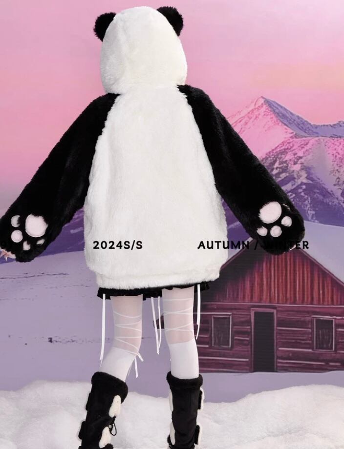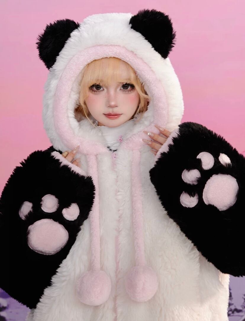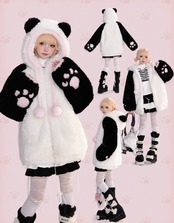 フリース パーカー、白黒 パンダ、熊、耳、カーディガン、アウターコート ジャケット 原宿 アニマル、コスプレ、秋葉原 動物 かわいい
