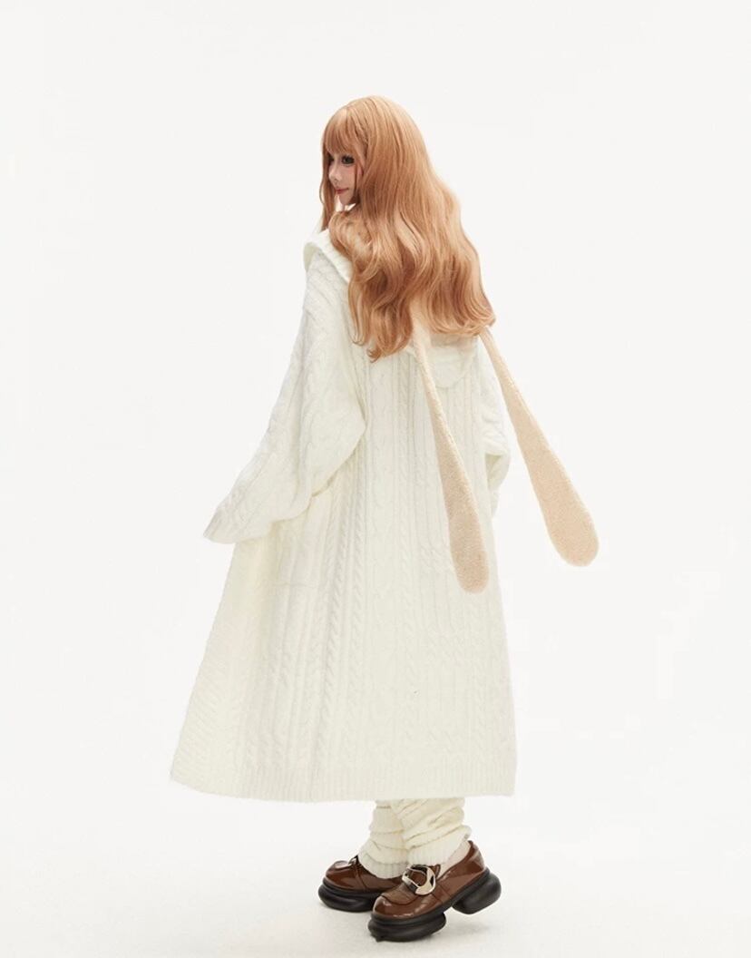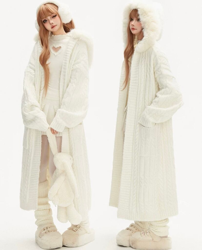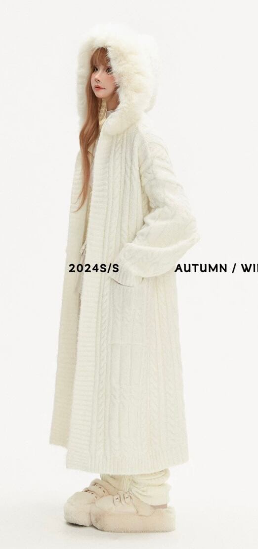 白 ホワイト ロング カーディガン、アウター セーター パーカー フード コート、原宿 かわいい シンプル ワンピース