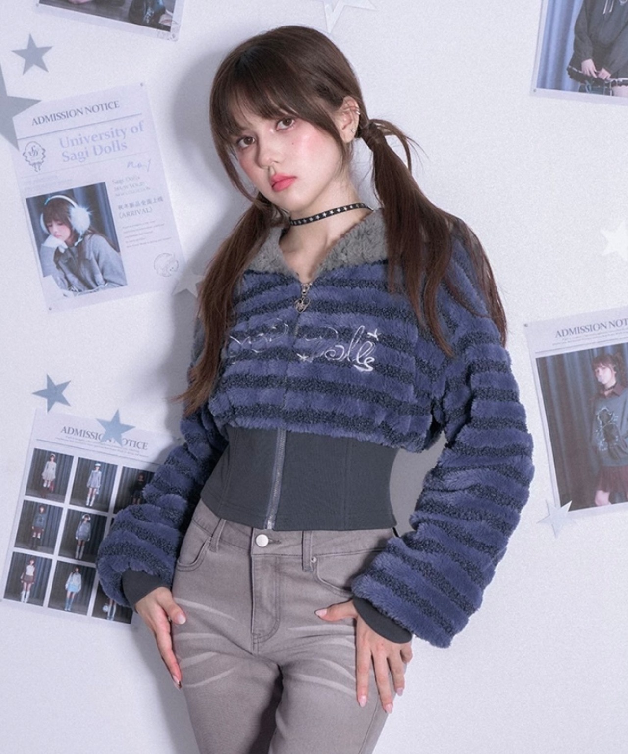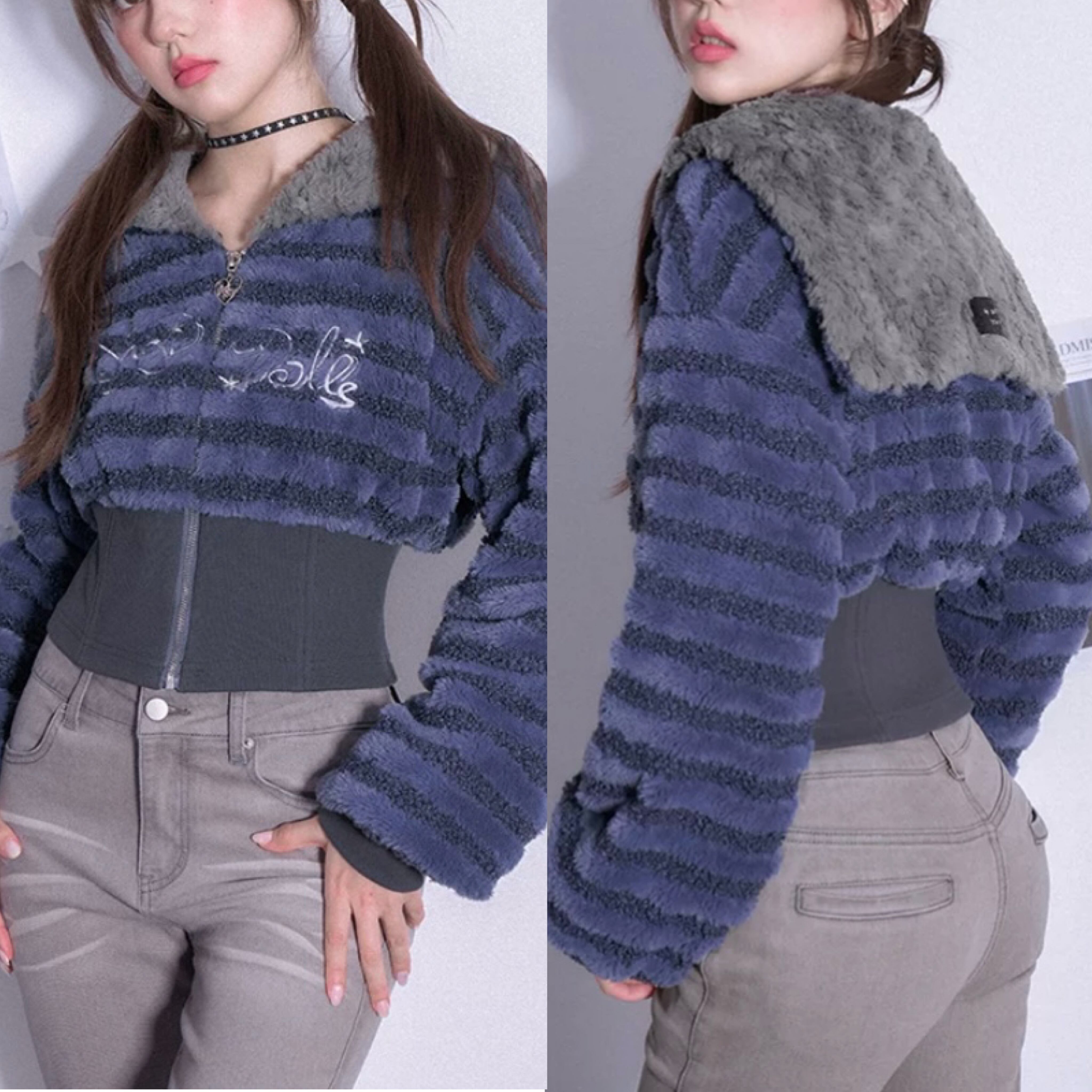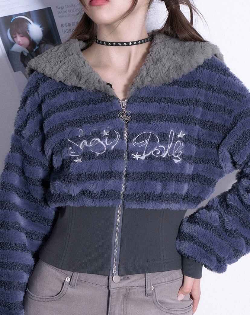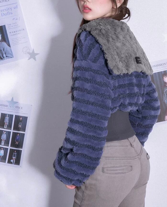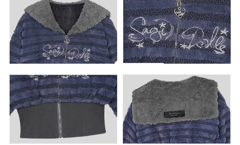 グレー、ネイビー、ボーダー、セーラー、えり、カーディガン、フリース パーカー、トップス、アウター ジャケット、コート、原宿 制服