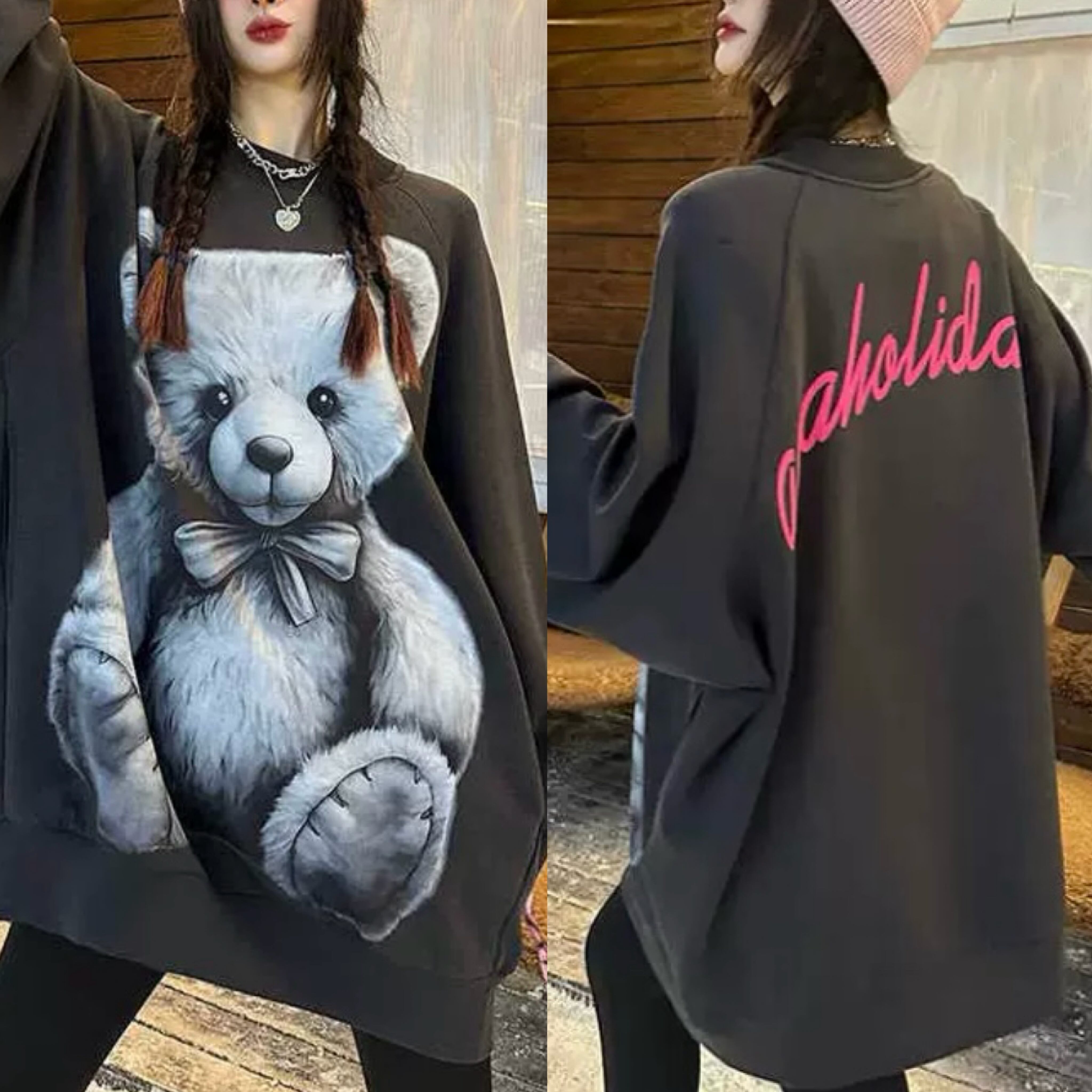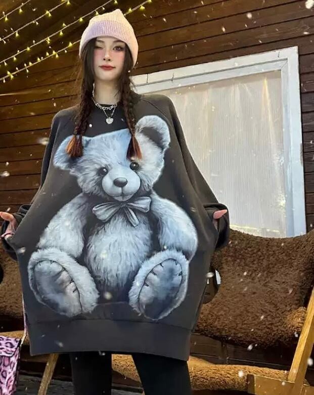 熊 スウェット トレーナー、くまさん、ベアー ピンク スウェット トレーナー ワンピース、ゆったり ストリート、原宿 カジュアル XL オーバーサイズ カジュアル ブラウス XL ワンピース ピンク