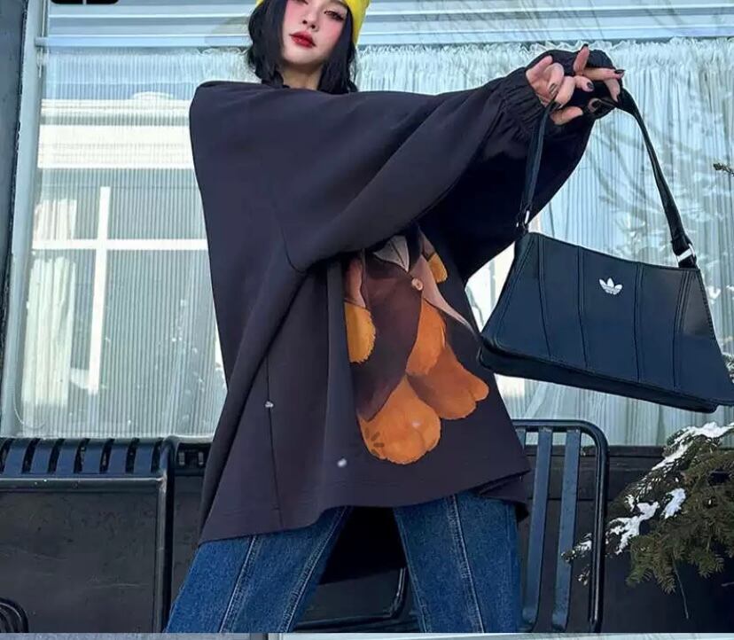 熊熊、茶色、オレンジ、茶色、オレンジ ピンク スウェット トレーナー ワンピース、ゆったり ストリート、原宿 カジュアル XL オーバーサイズ カジュアル ブラウス XL ワンピース
