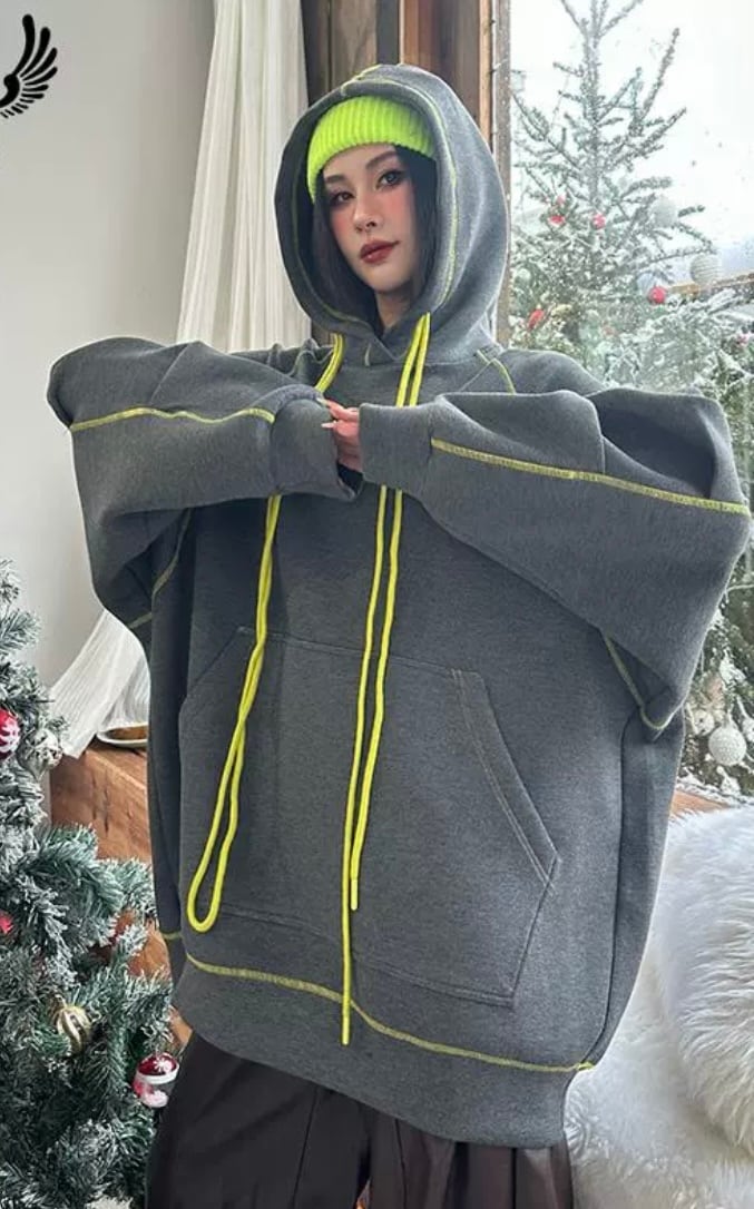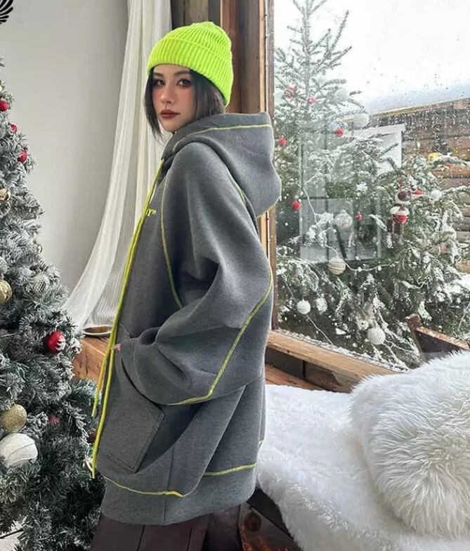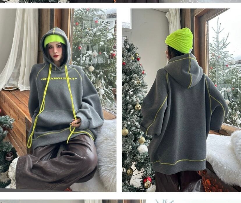 グレー 黄色 黄色 ピンク スウェット トレーナー ワンピース、ゆったり ストリート、原宿 カジュアル XL オーバーサイズ カジュアル ブラウス XL ワンピース