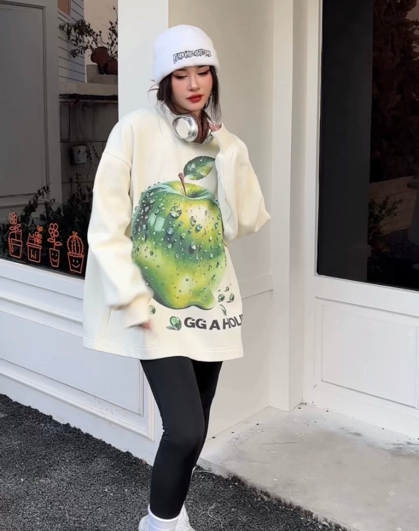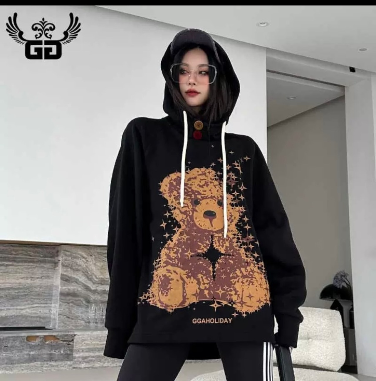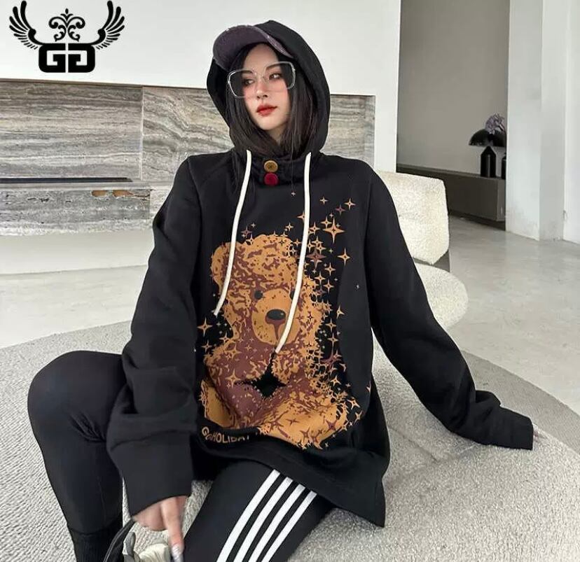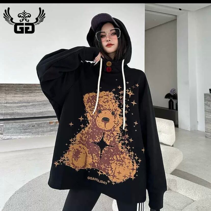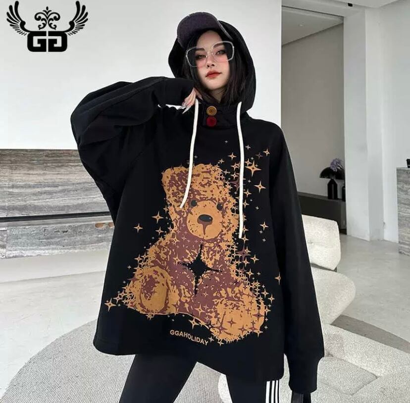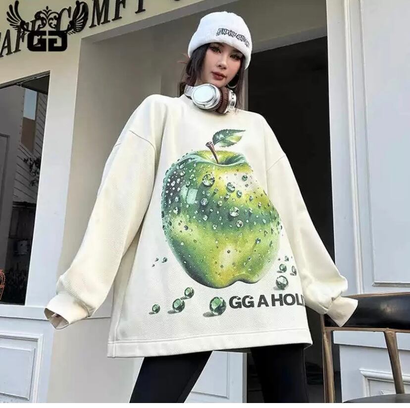 黒 茶色、熊 緑 りんご キラキラ ピンク スウェット トレーナー ワンピース、ゆったり ストリート、原宿 カジュアル XL オーバーサイズ カジュアル ブラウス XL ワンピース