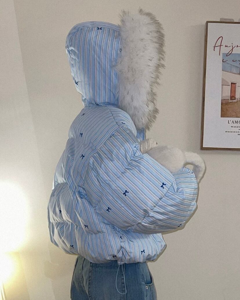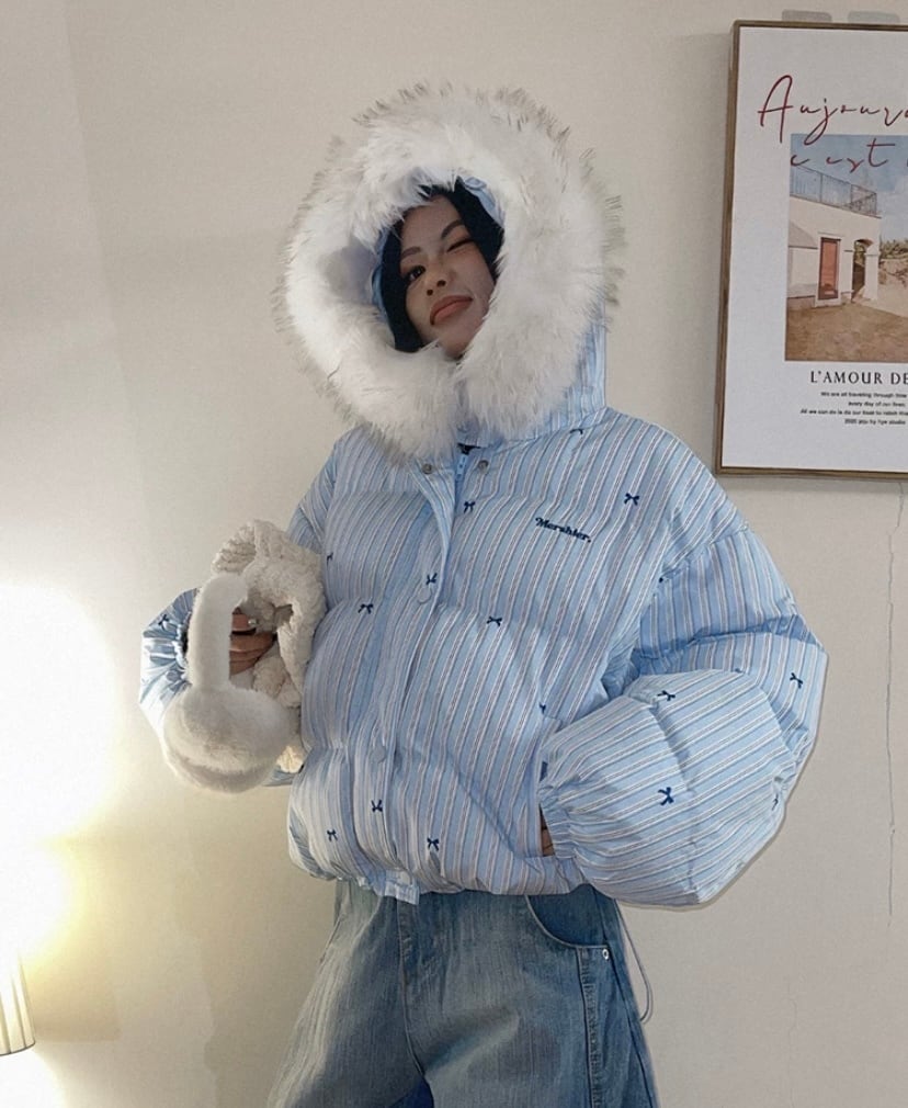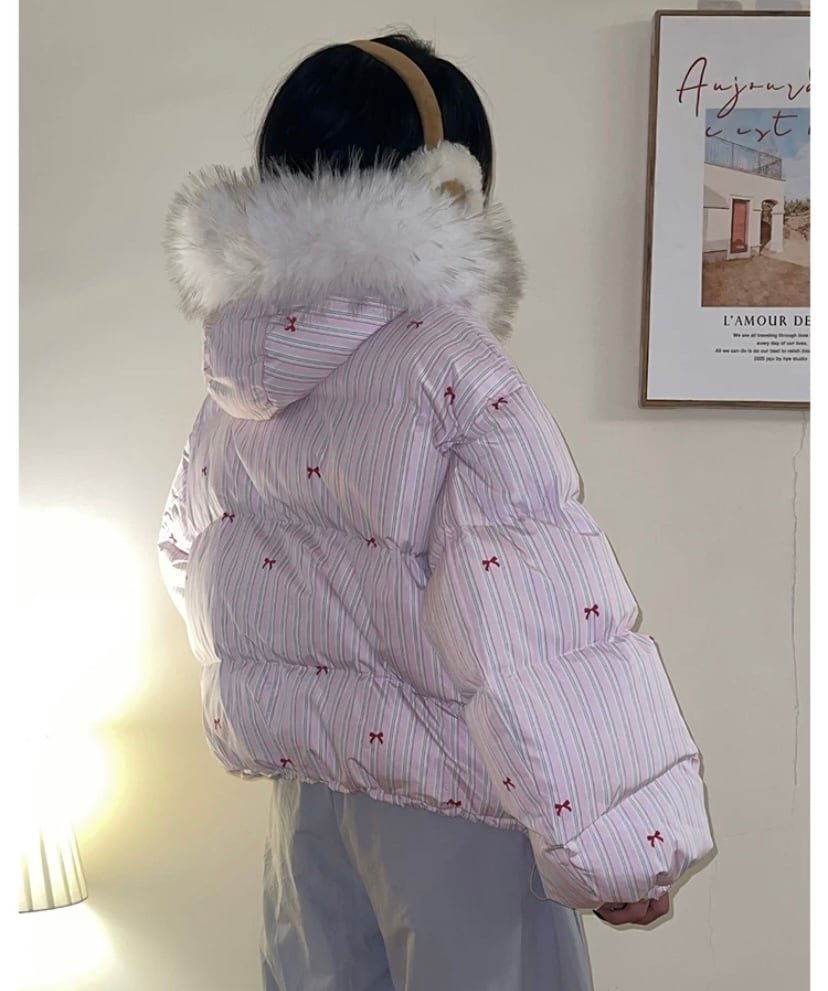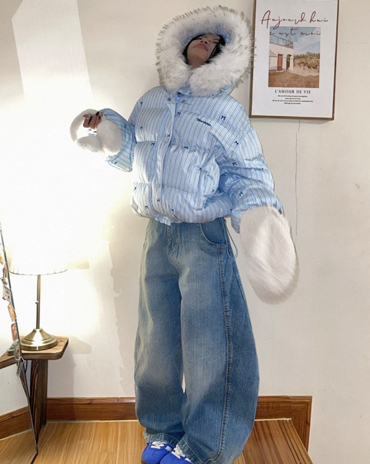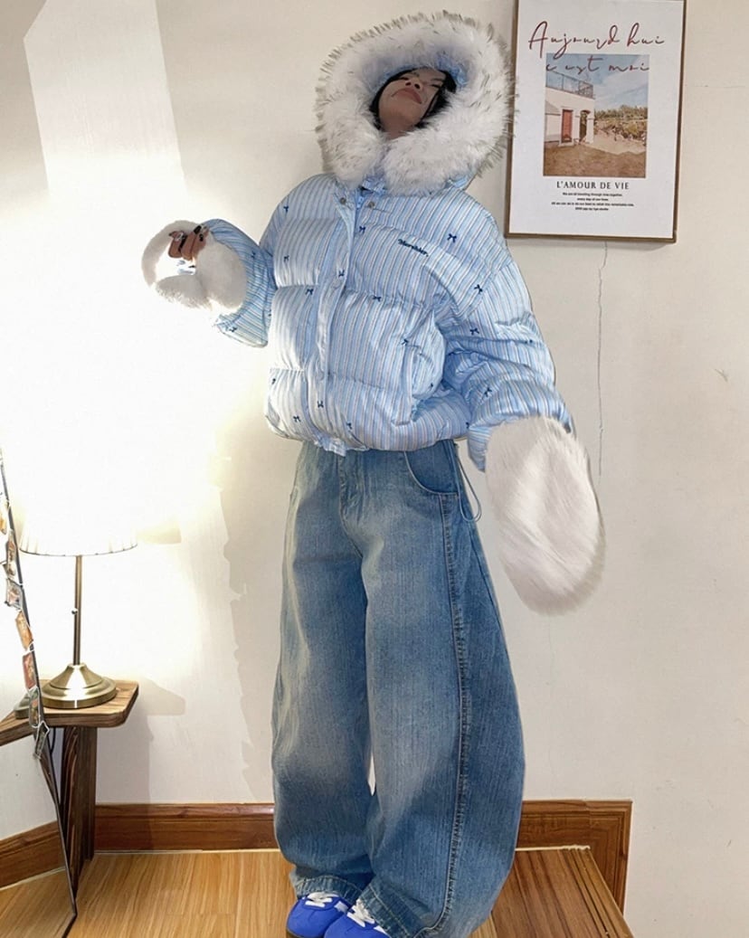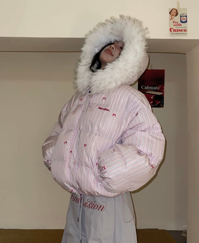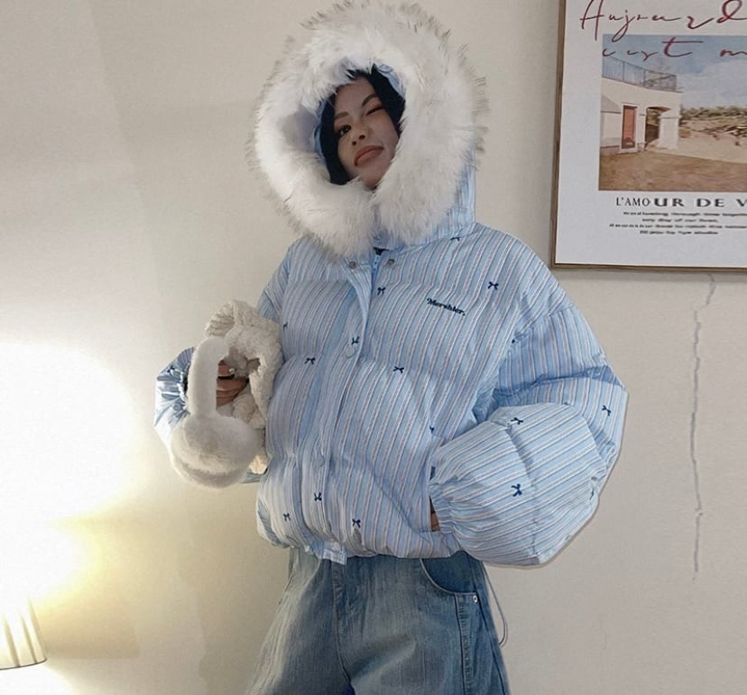 ダウン コート、水色、ピンク、ファー フード XL ピンク スウェット トレーナー ワンピース、ゆったり ストリート、原宿 カジュアル XL オーバーサイズ カジュアル ブラウス XL ワンピース