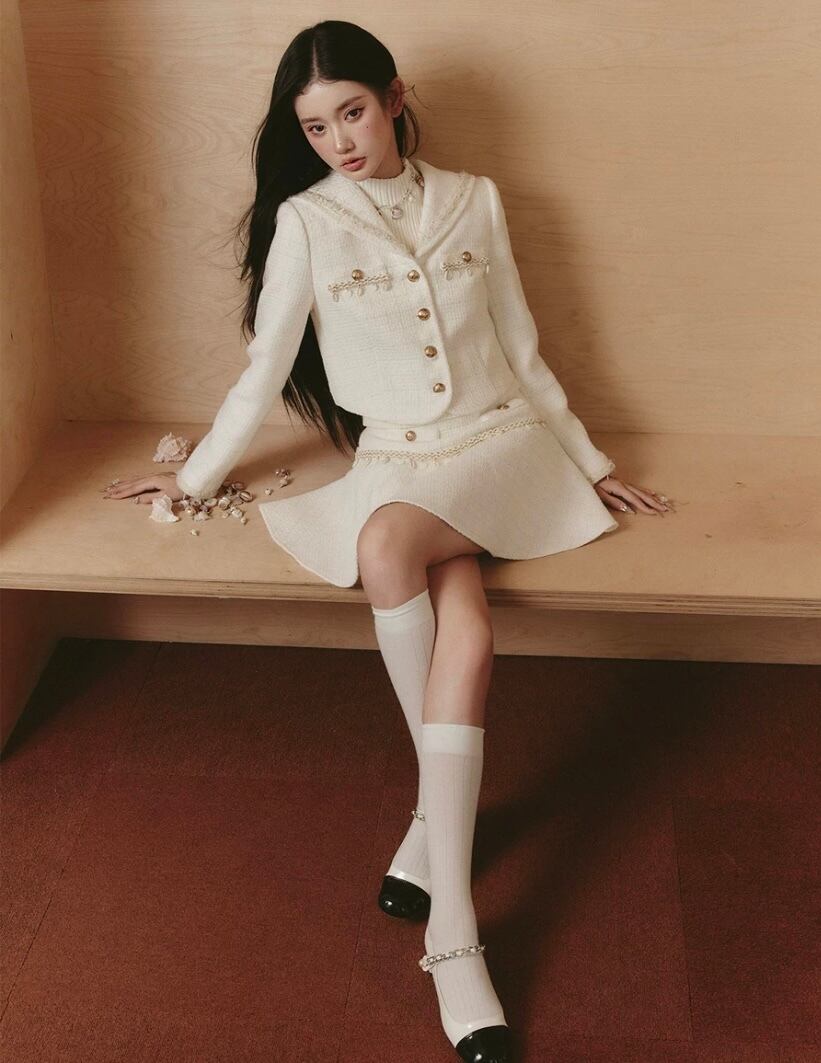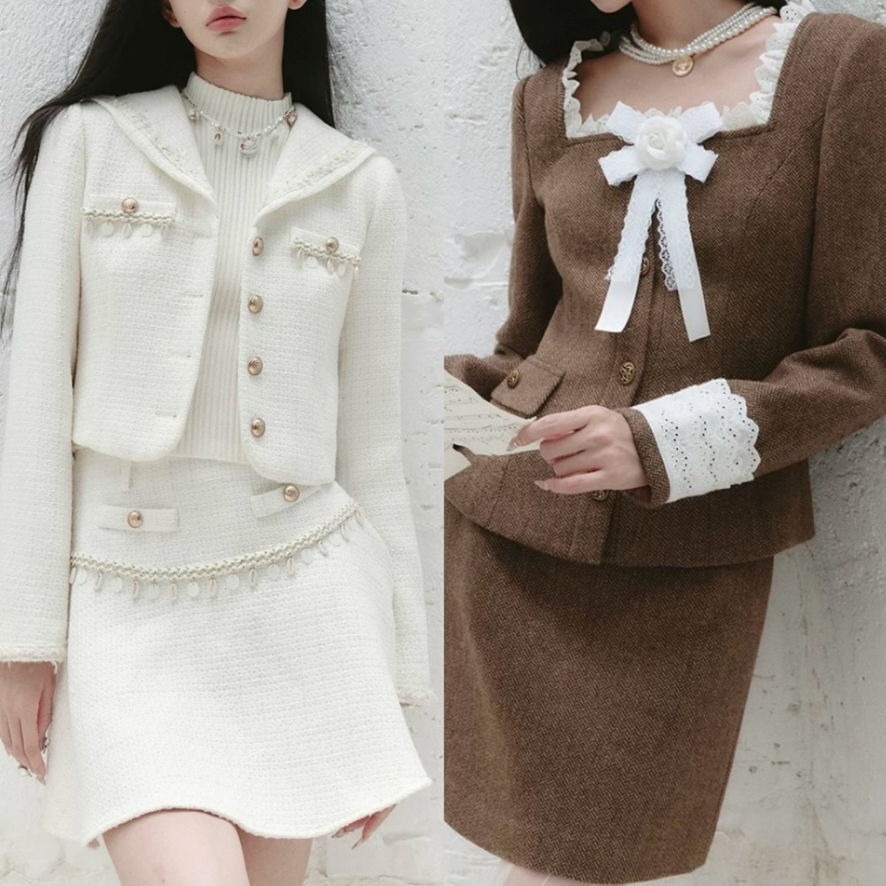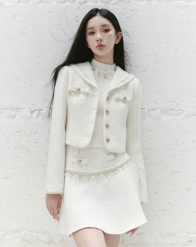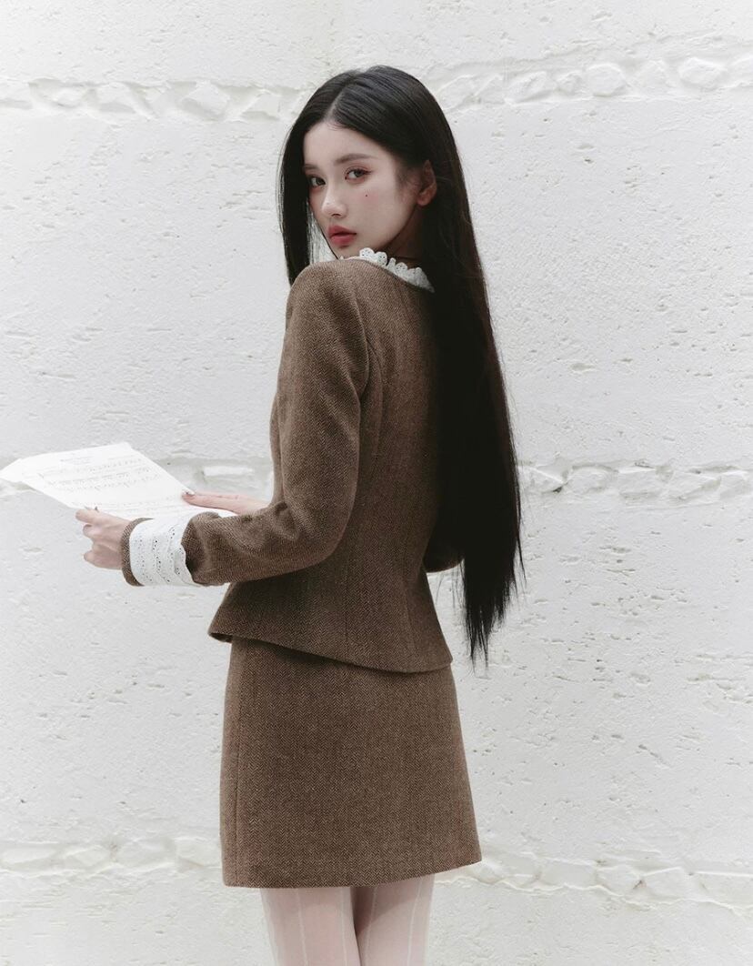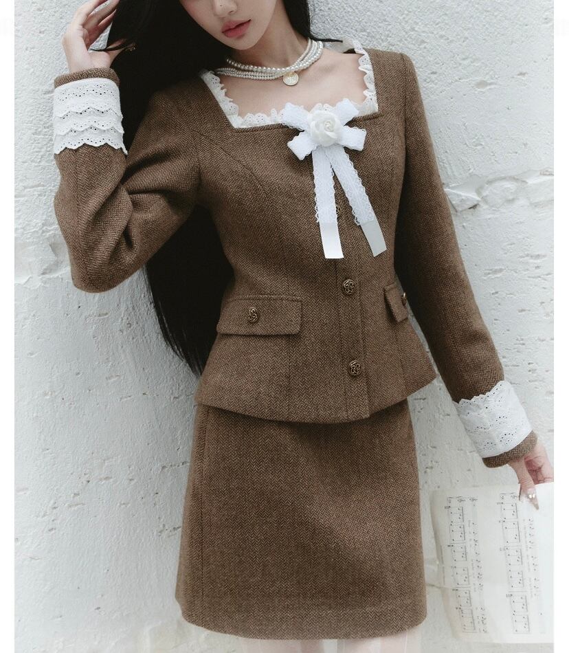 【スカート】白、茶色、ガーリー、お嬢様、エレガント、ボトムス ミニスカート スーツ セットアップ シンプル