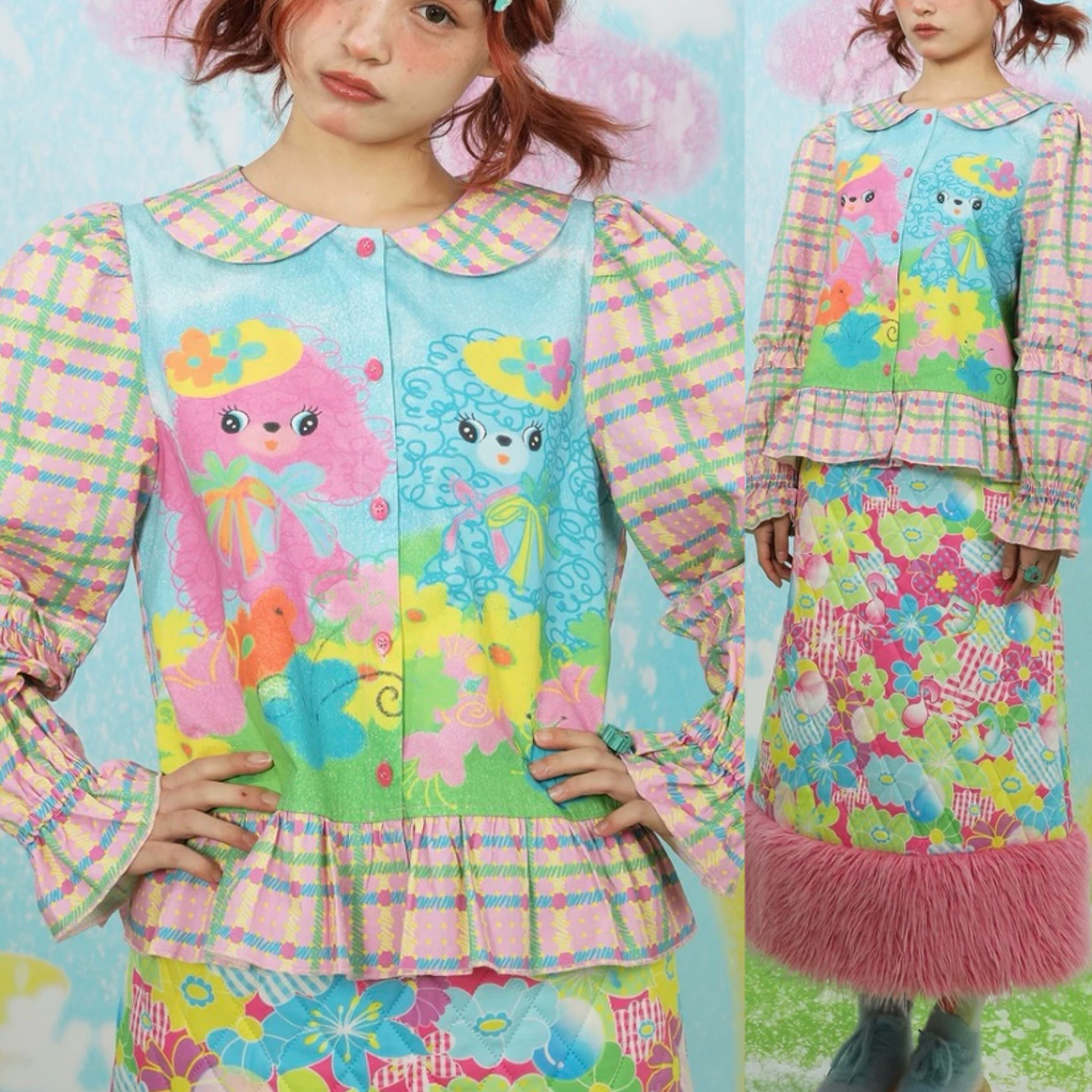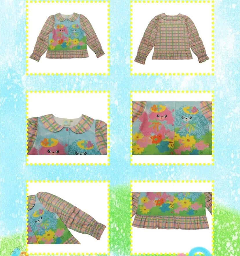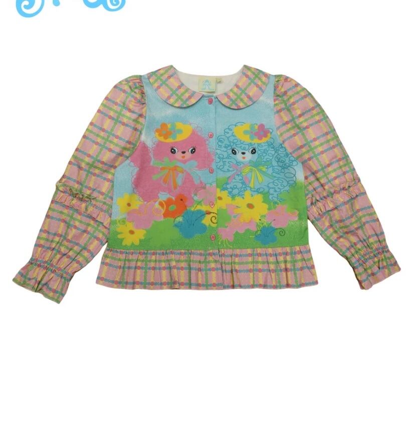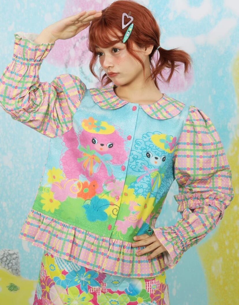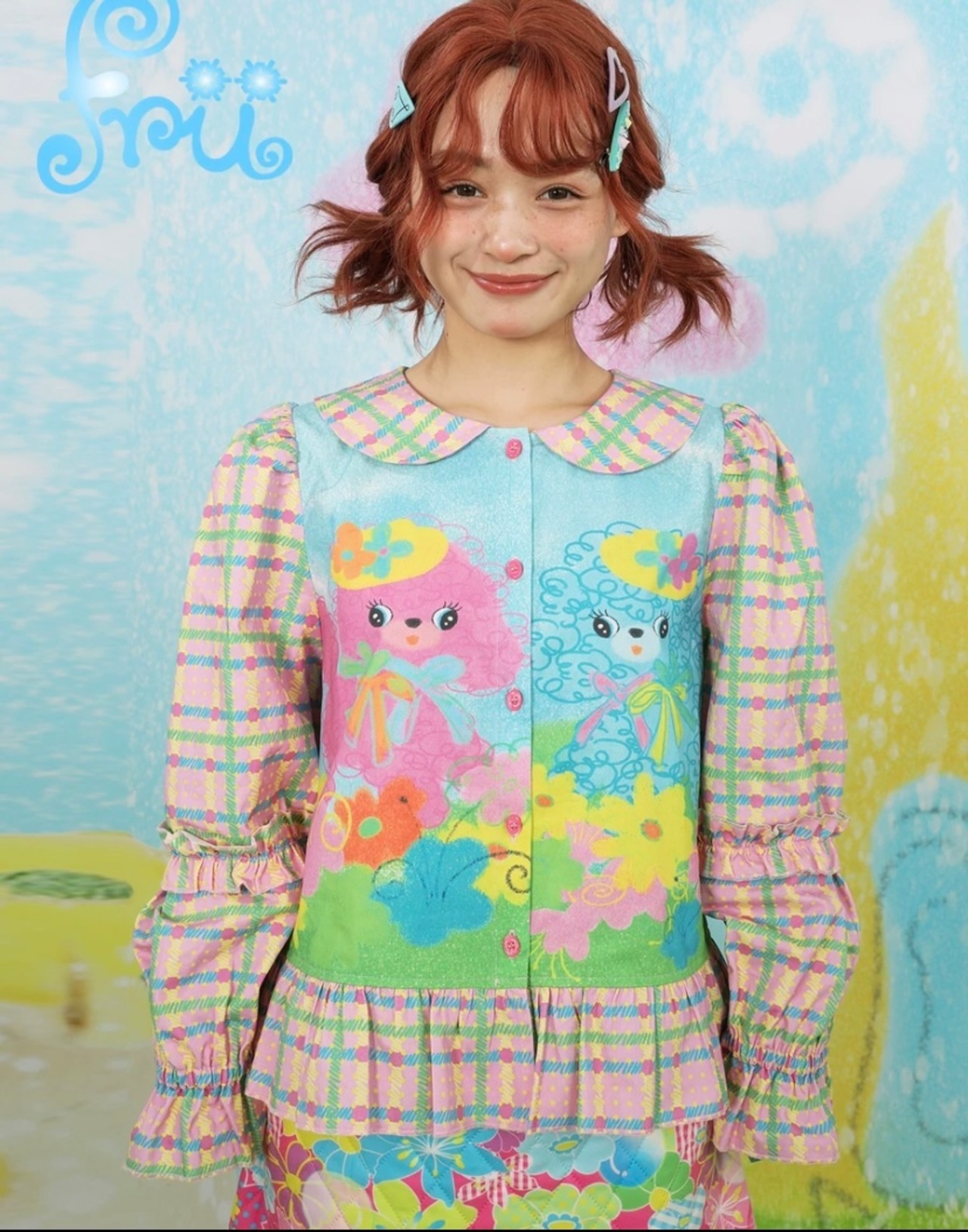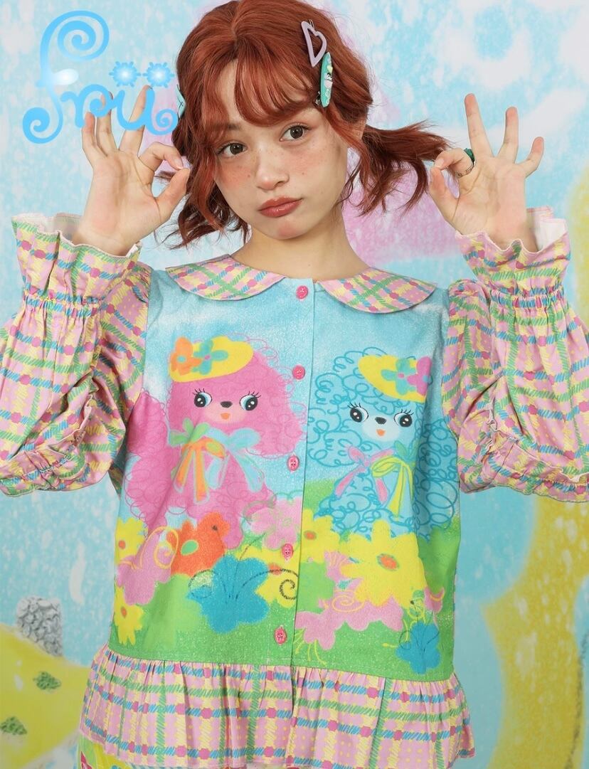 くまさん チェック、ピンク、水色、緑ブラウス、シャツ、トップス 原宿 ガーリー かわいい アニマル 丸襟