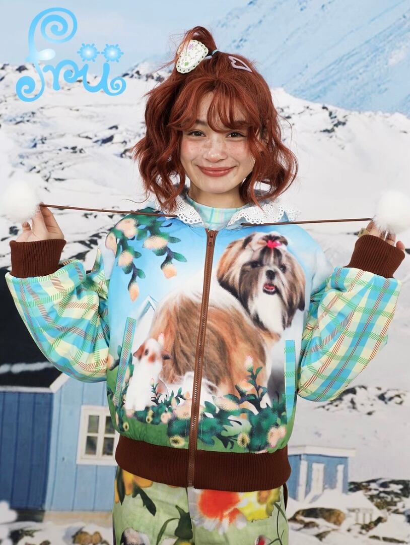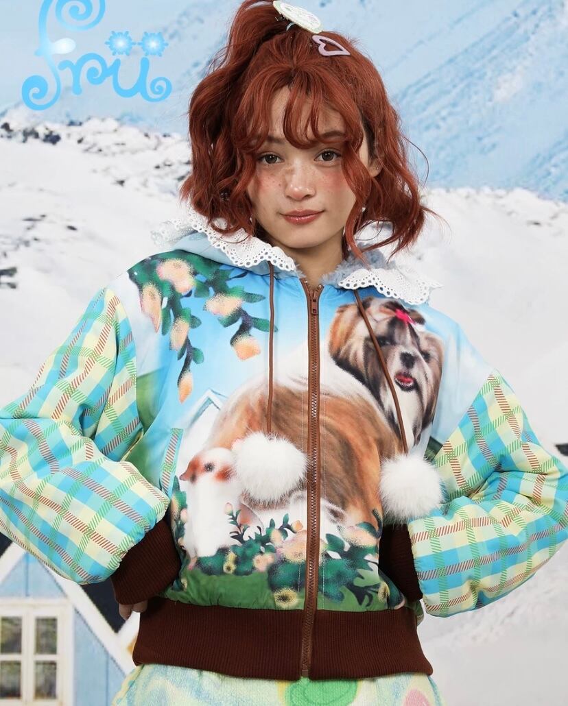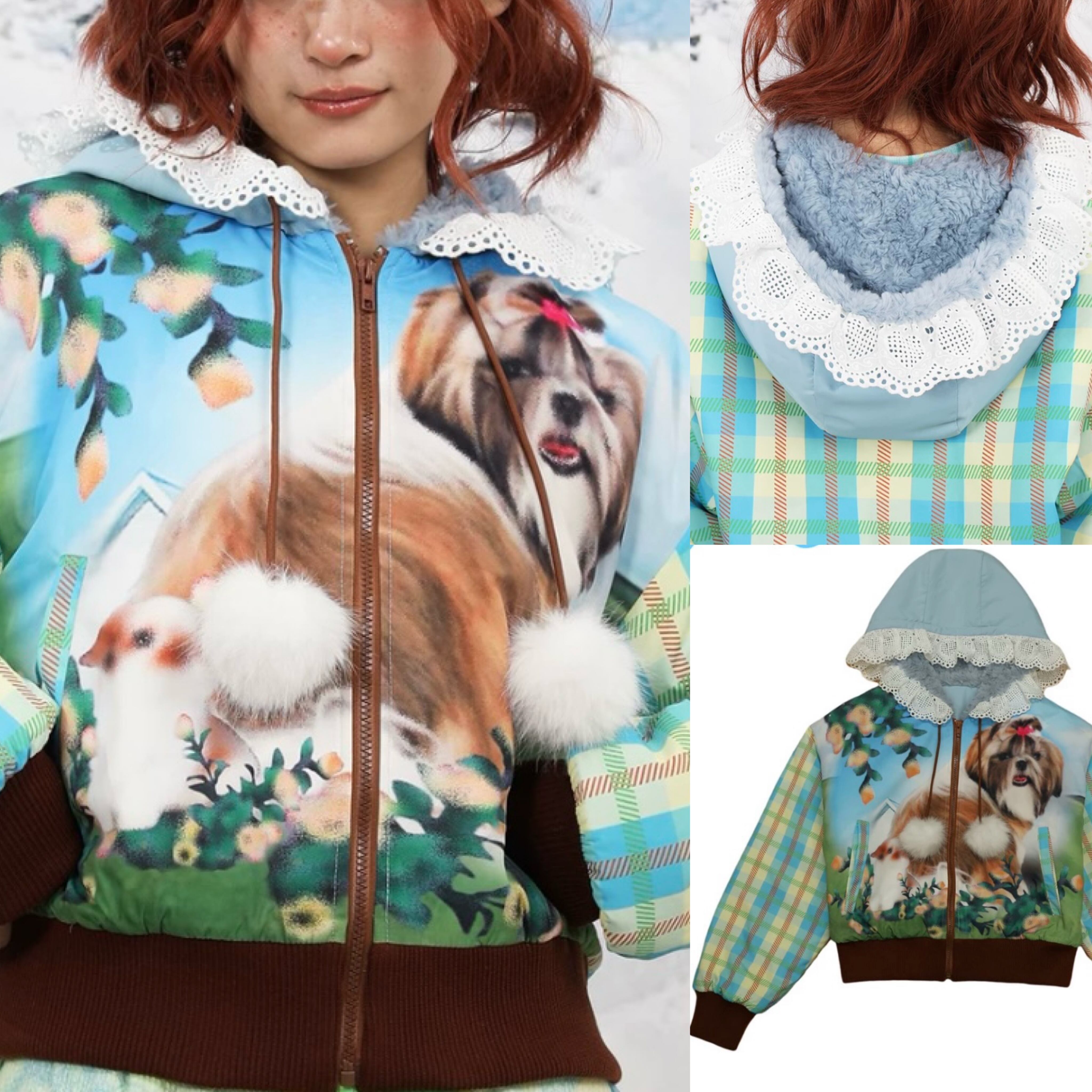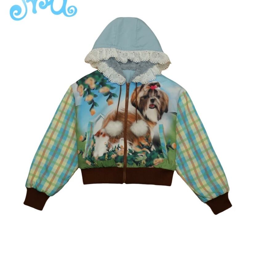 犬 パーカー フリース スウェット トレーナー チェック。緑 水色 ガーリー フリース フードレース フリル リボン、ヨークシャーテリア 犬 ペット アウター