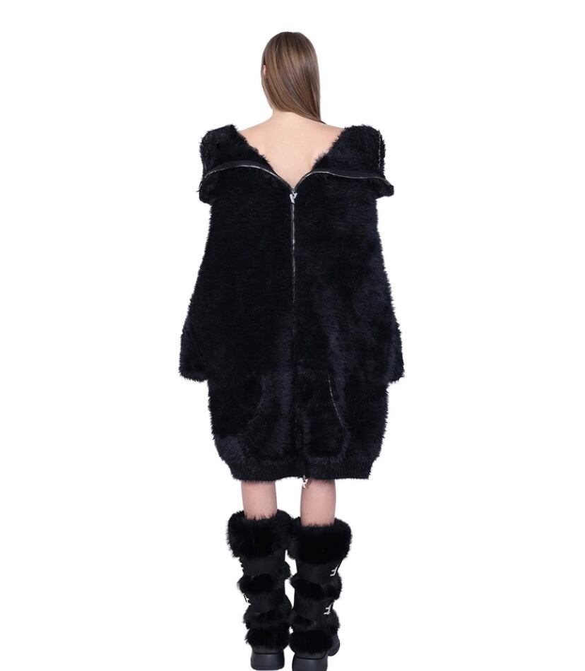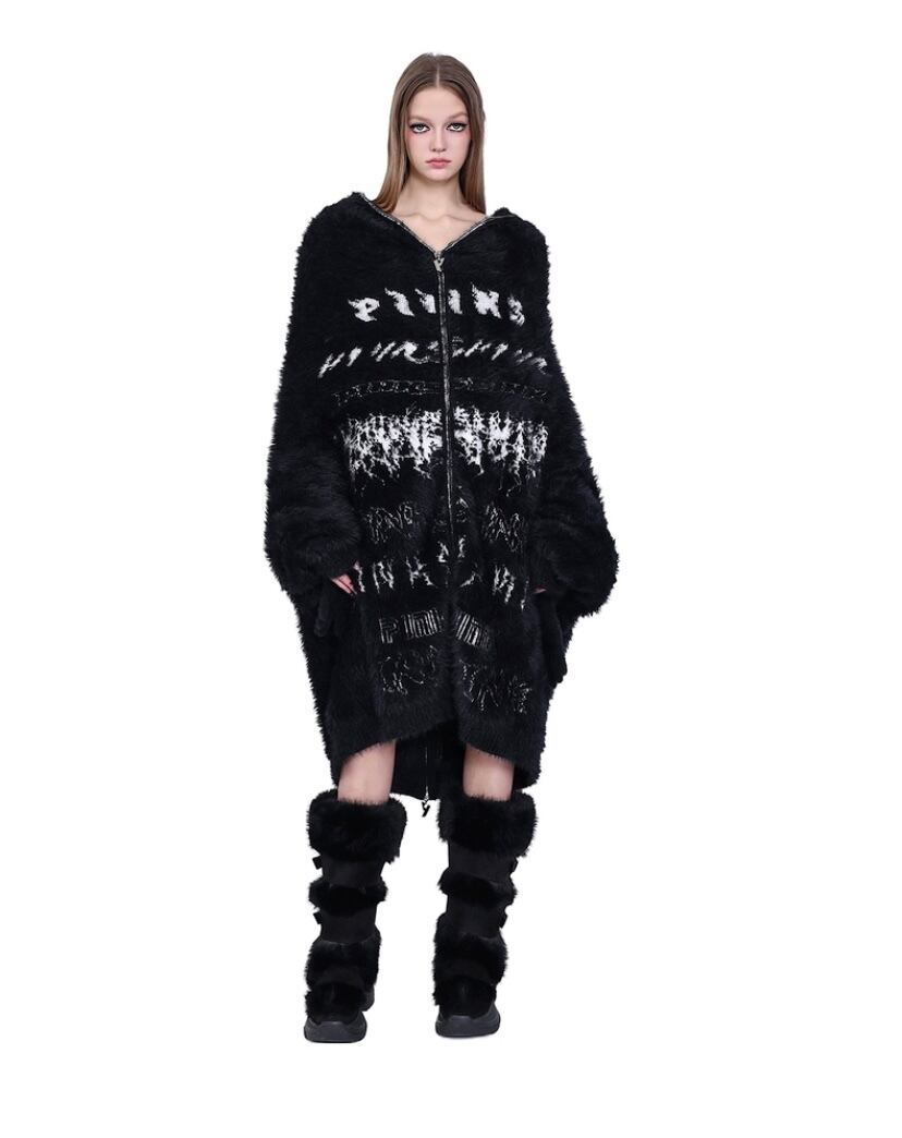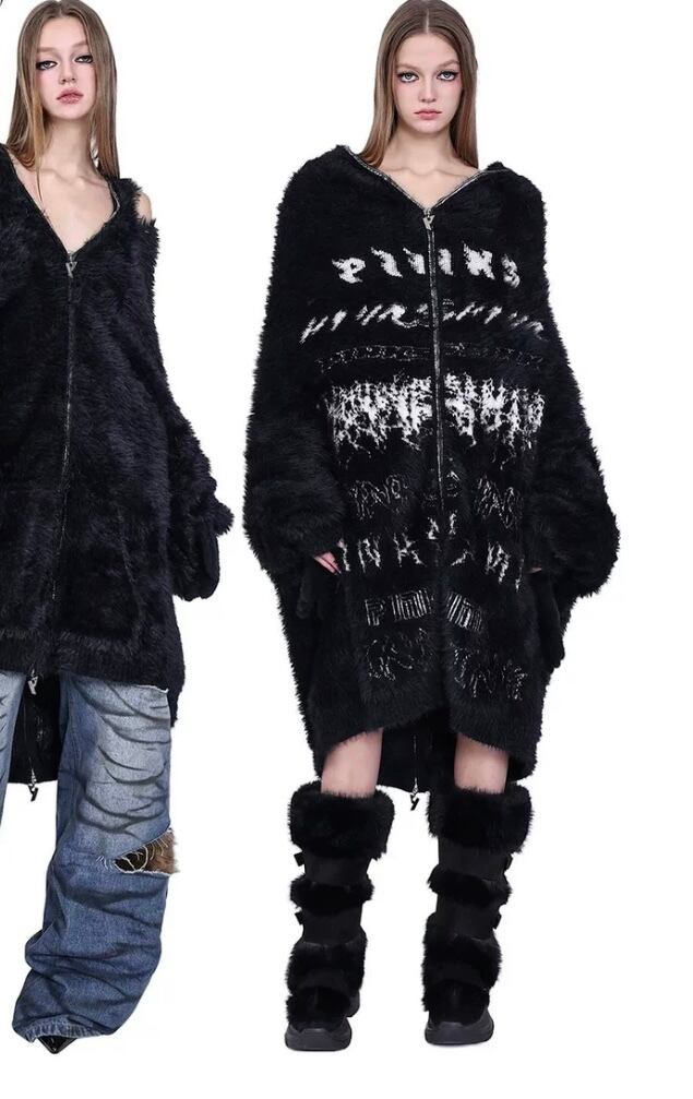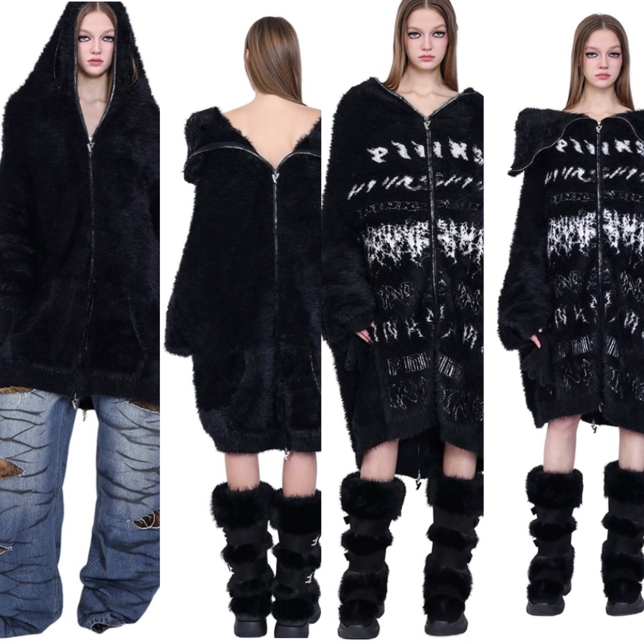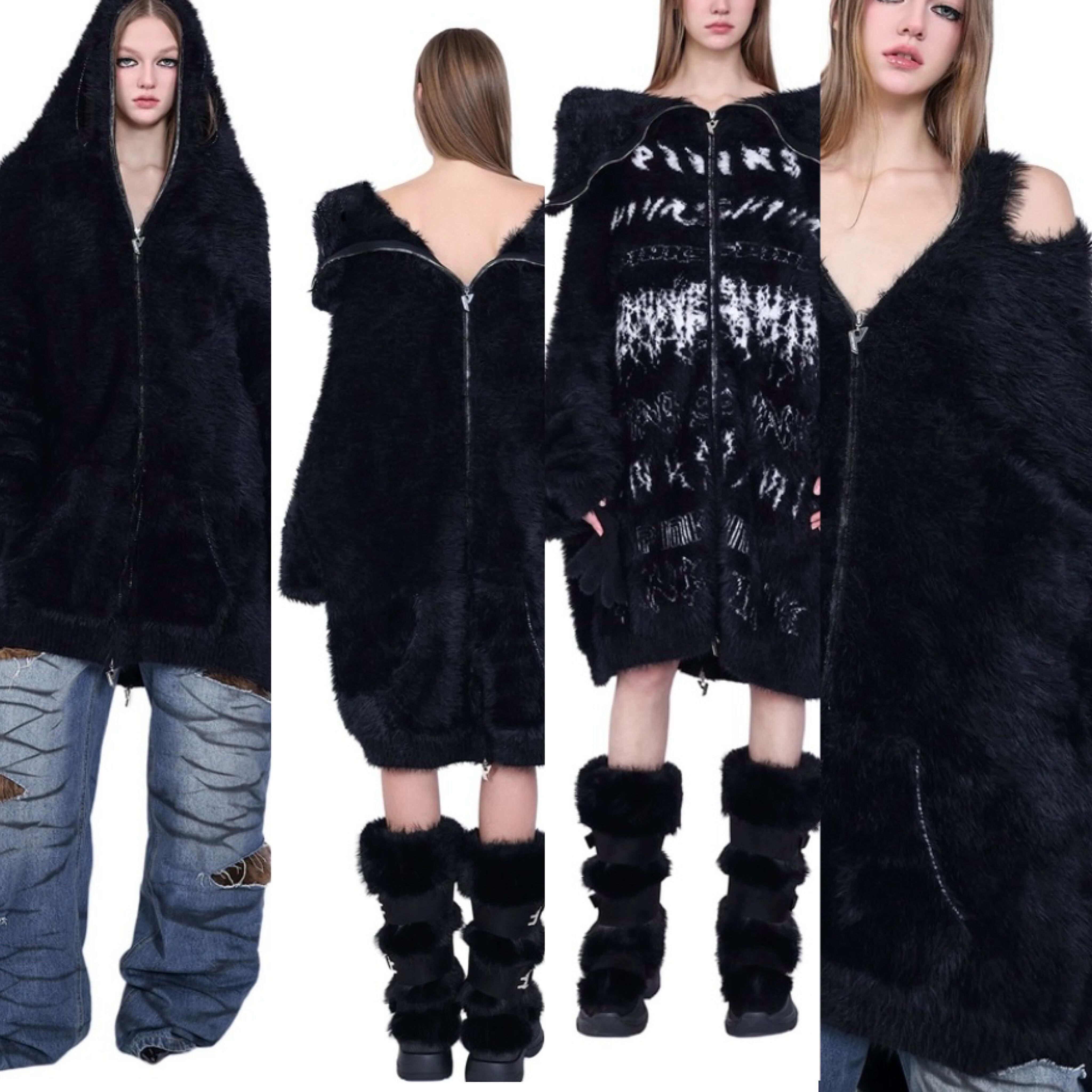 【複数WAY】黒 ブラック カーディガン アウター ジャケット コート パーカー フード フリース オフショルダー ワンピース カーディガン ストリート オーバーサイズ