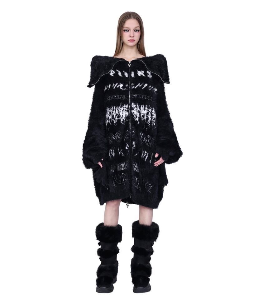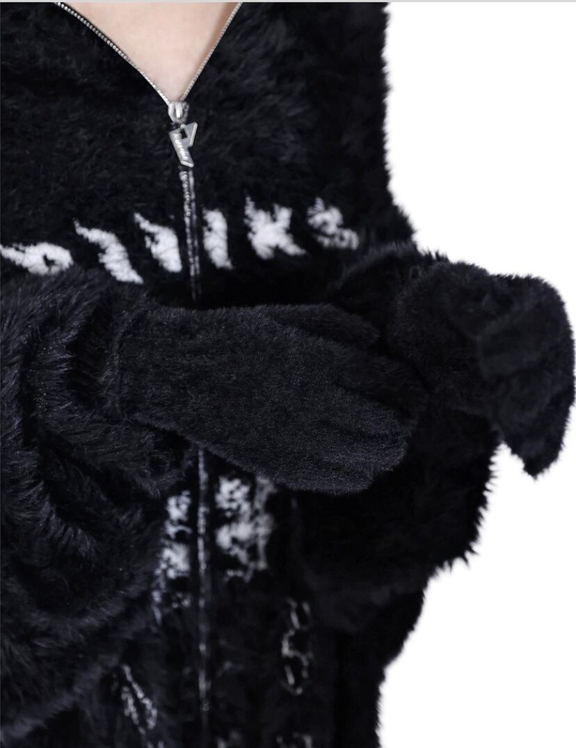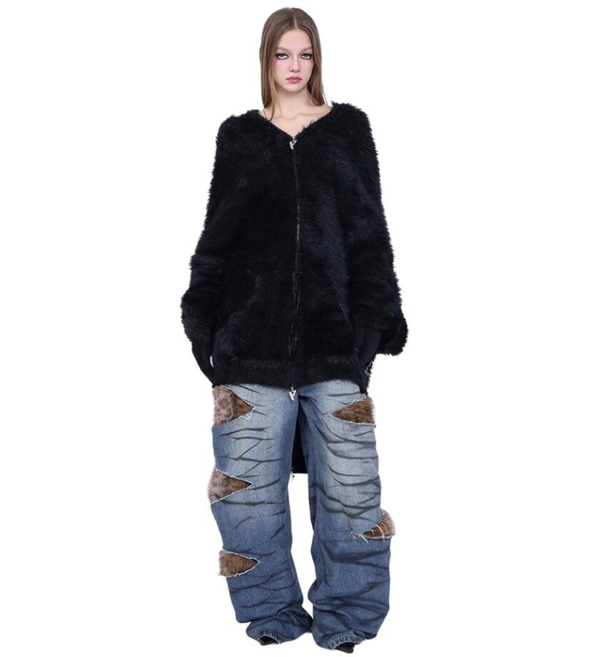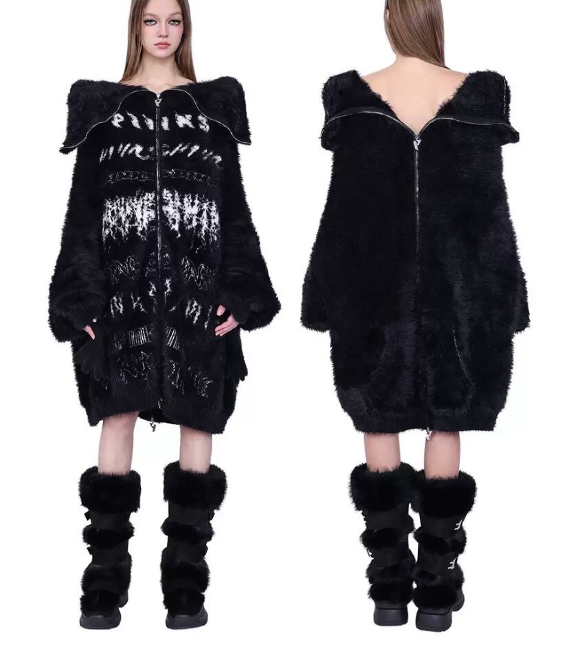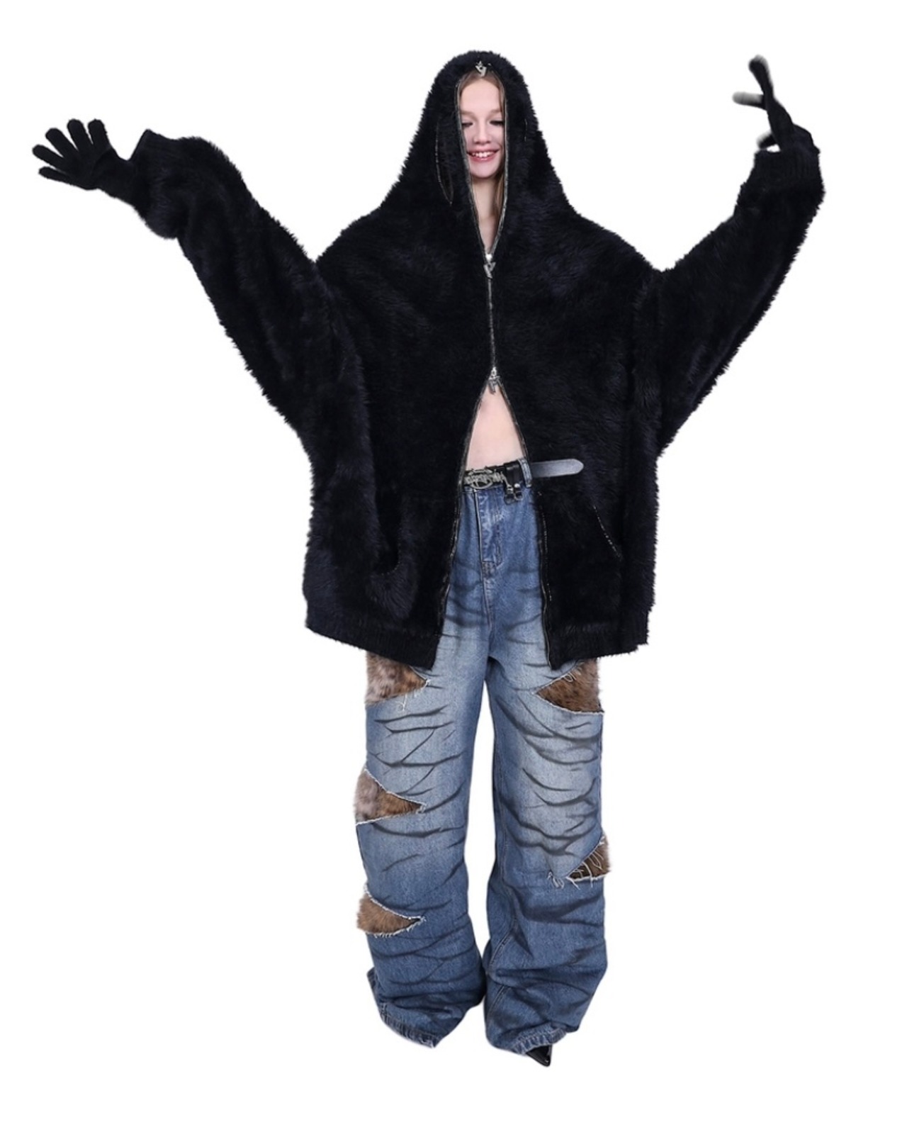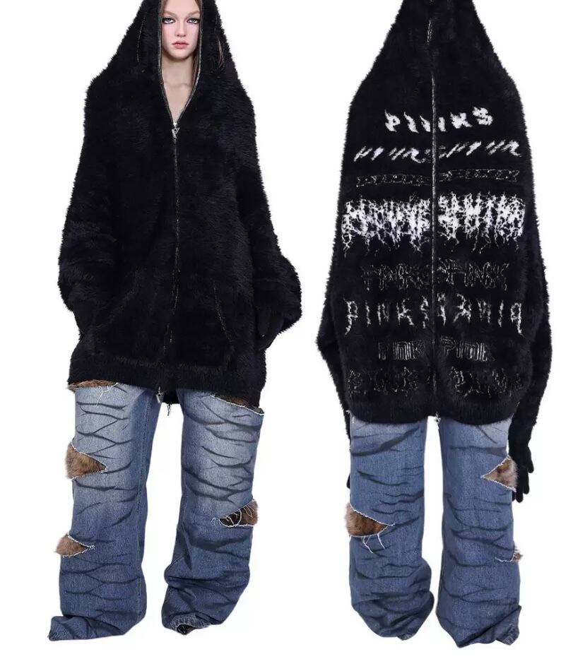 【複数WAY】黒 ブラック カーディガン アウター ジャケット コート パーカー フード フリース オフショルダー ワンピース カーディガン ストリート オーバーサイズ