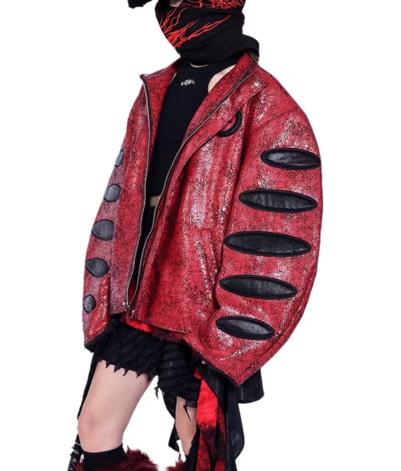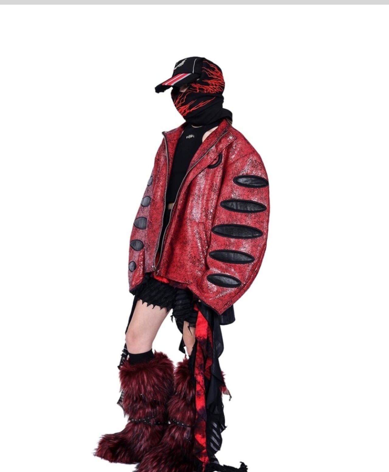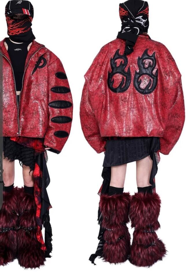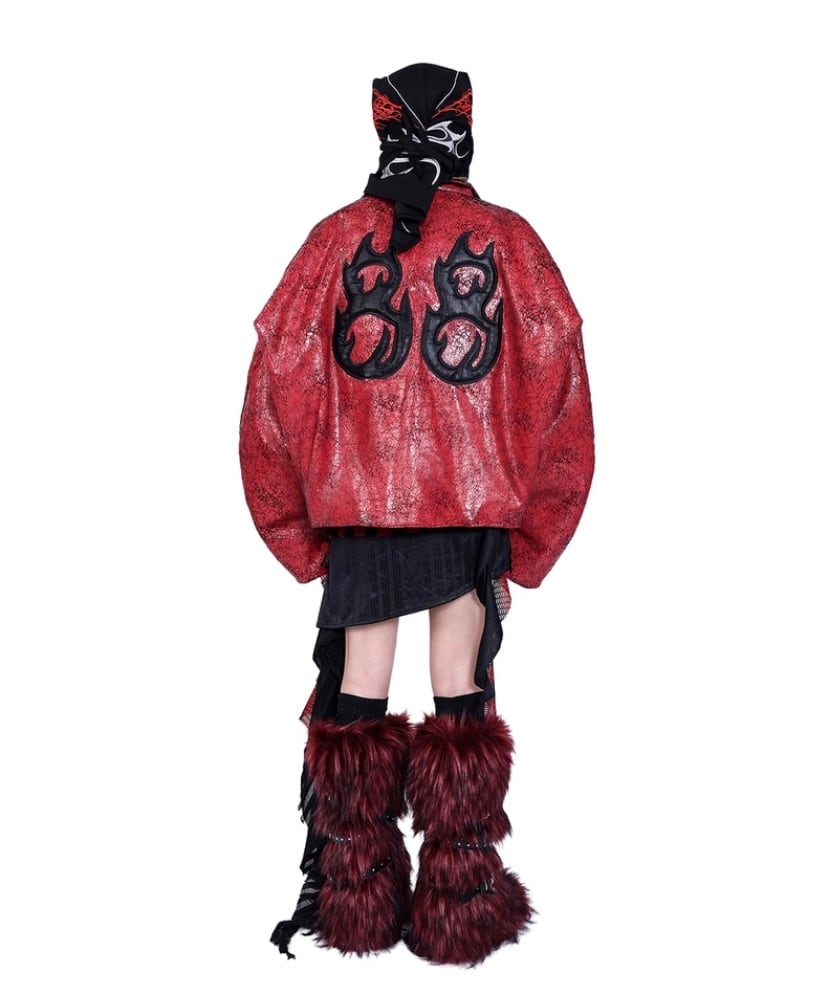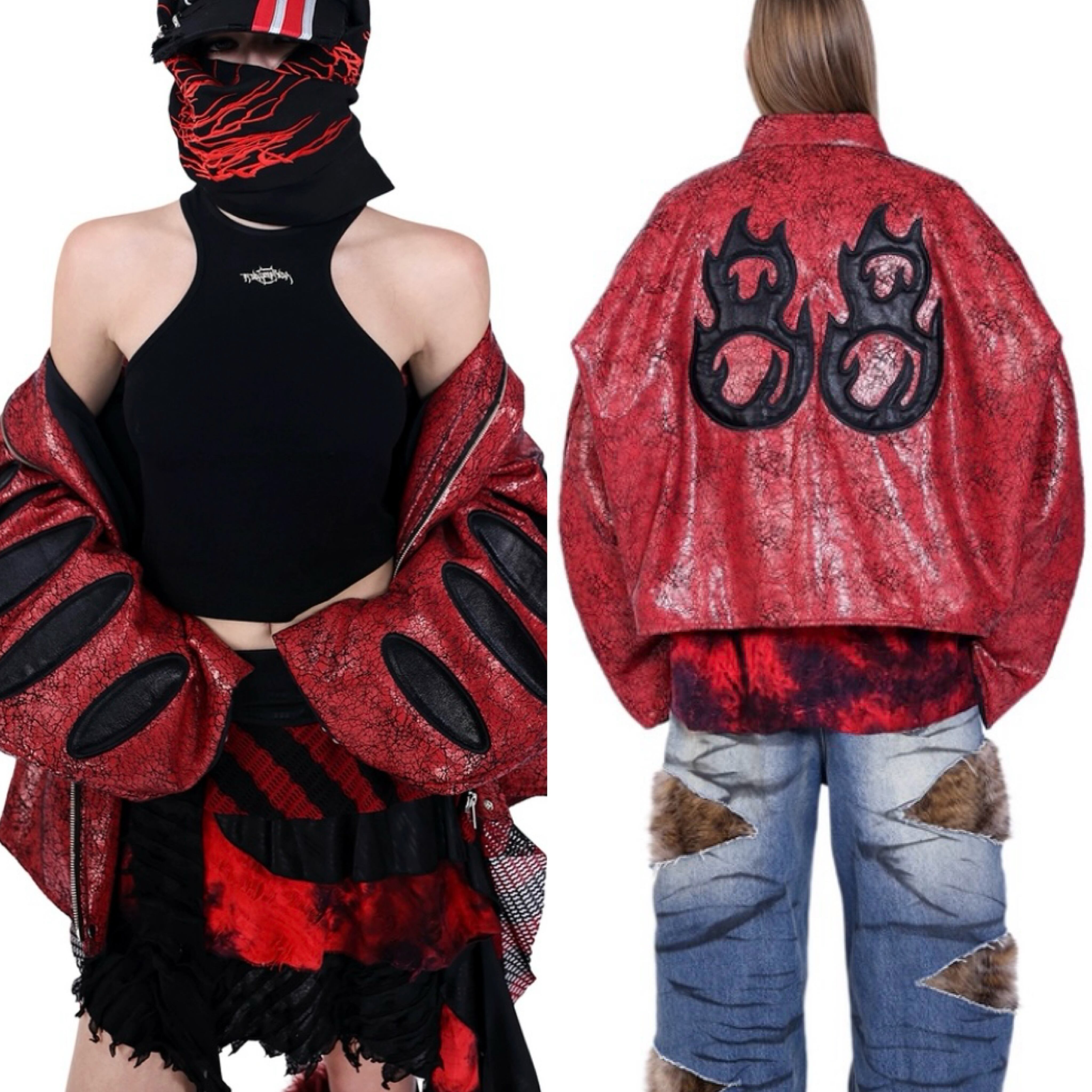 レザー ジャケット アウター コート 赤 88 ブルゾン 革ジャン バイク 赤 ストリート 炎