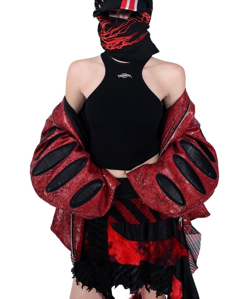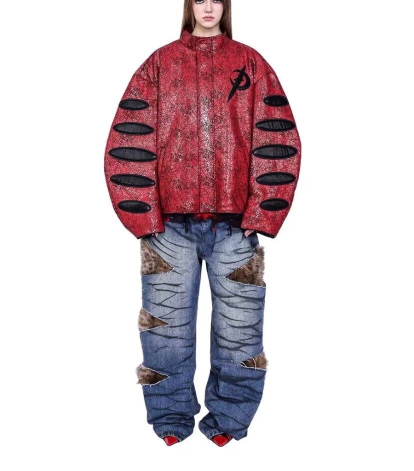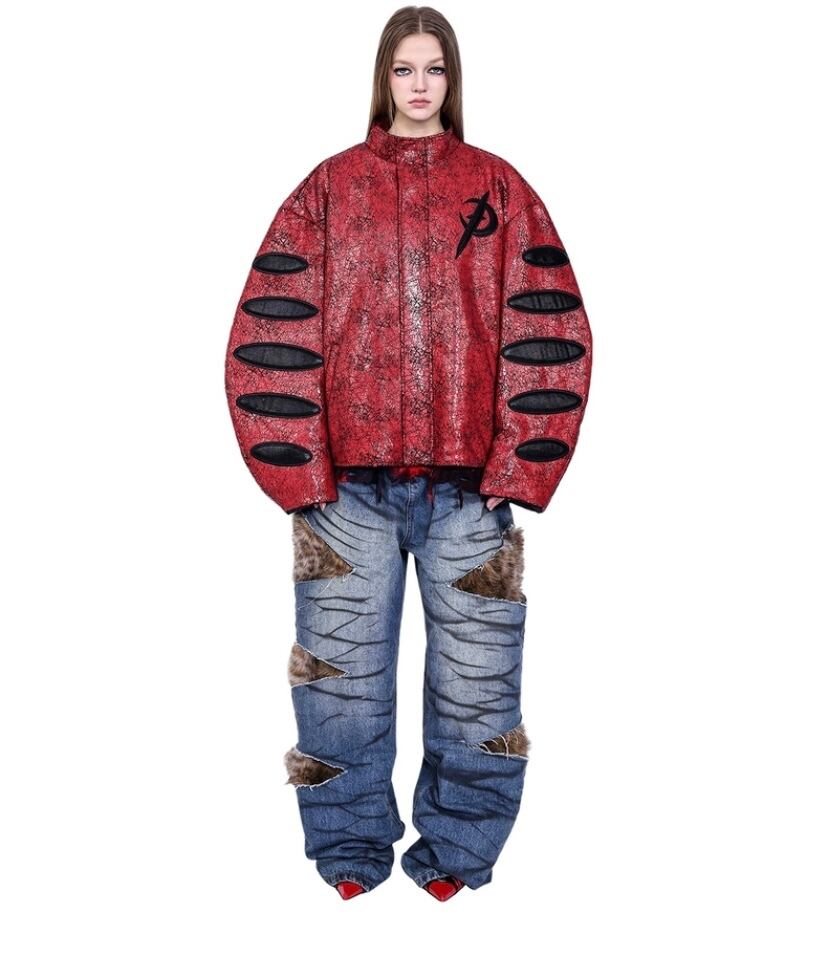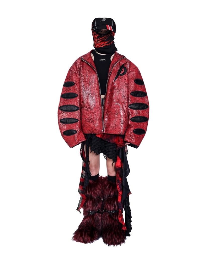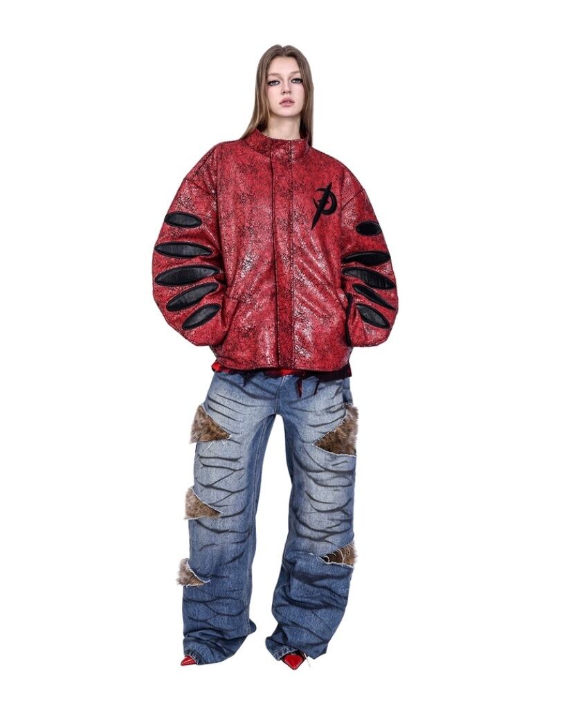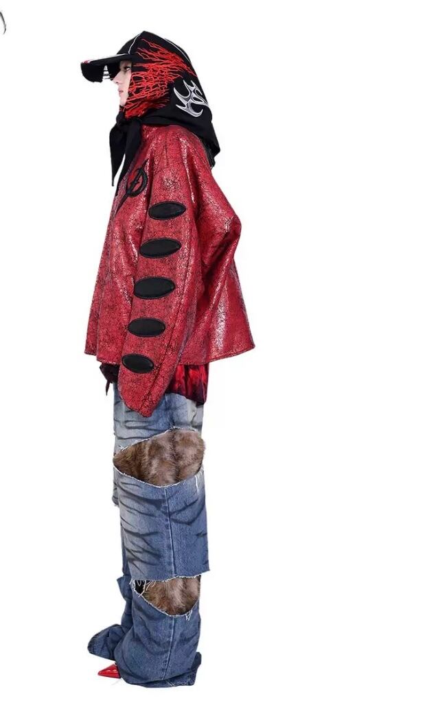 レザー ジャケット アウター コート 赤 88 ブルゾン 革ジャン バイク 赤 ストリート 炎