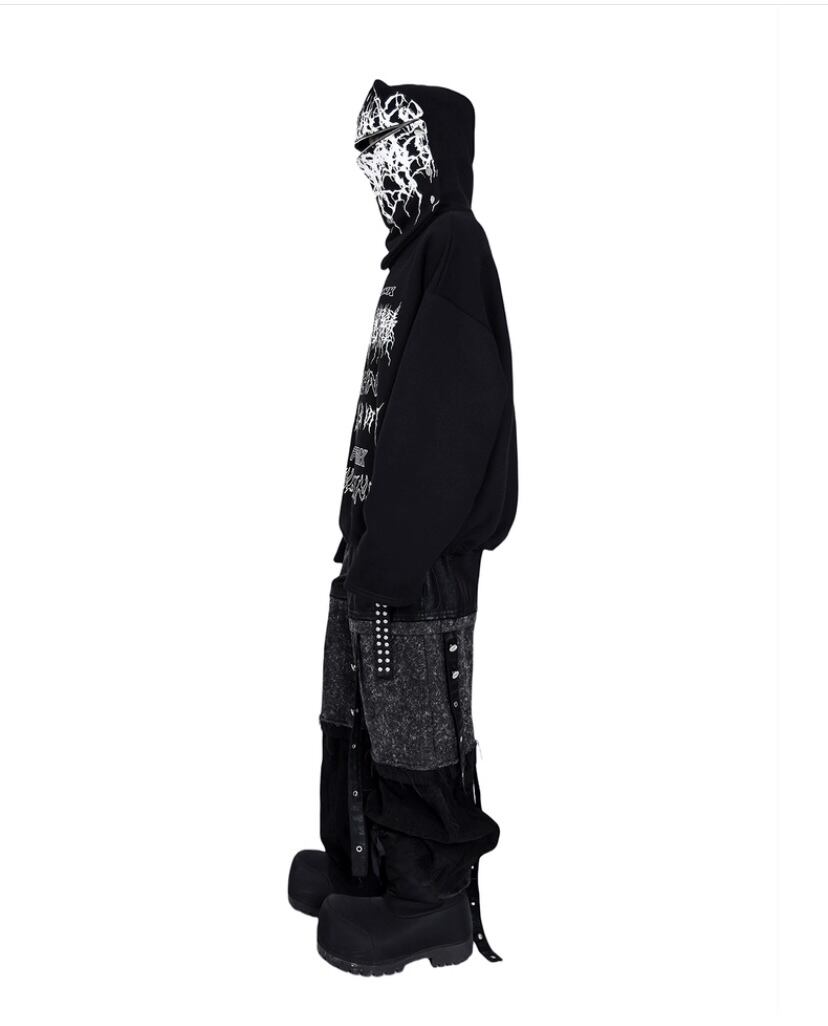 【複数WAY】パーカー スウェット 黒 ブラック ワンピース カジュアル カーディガン フード 変装