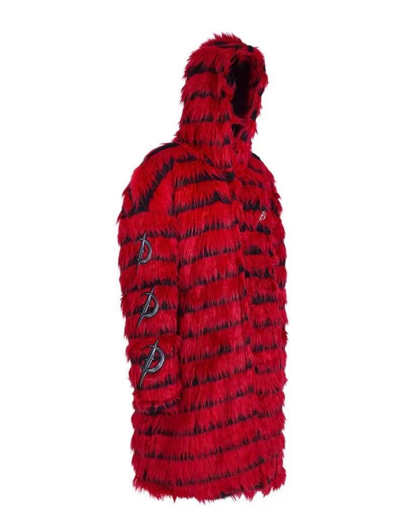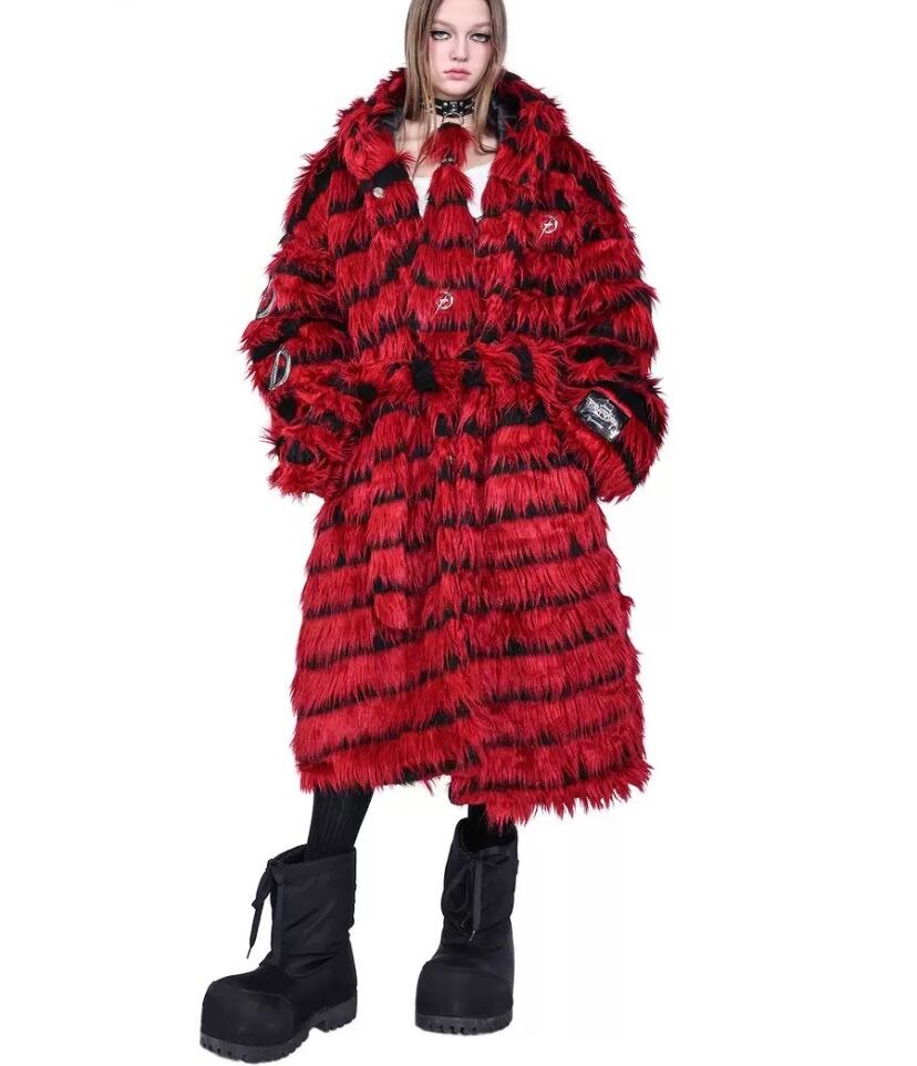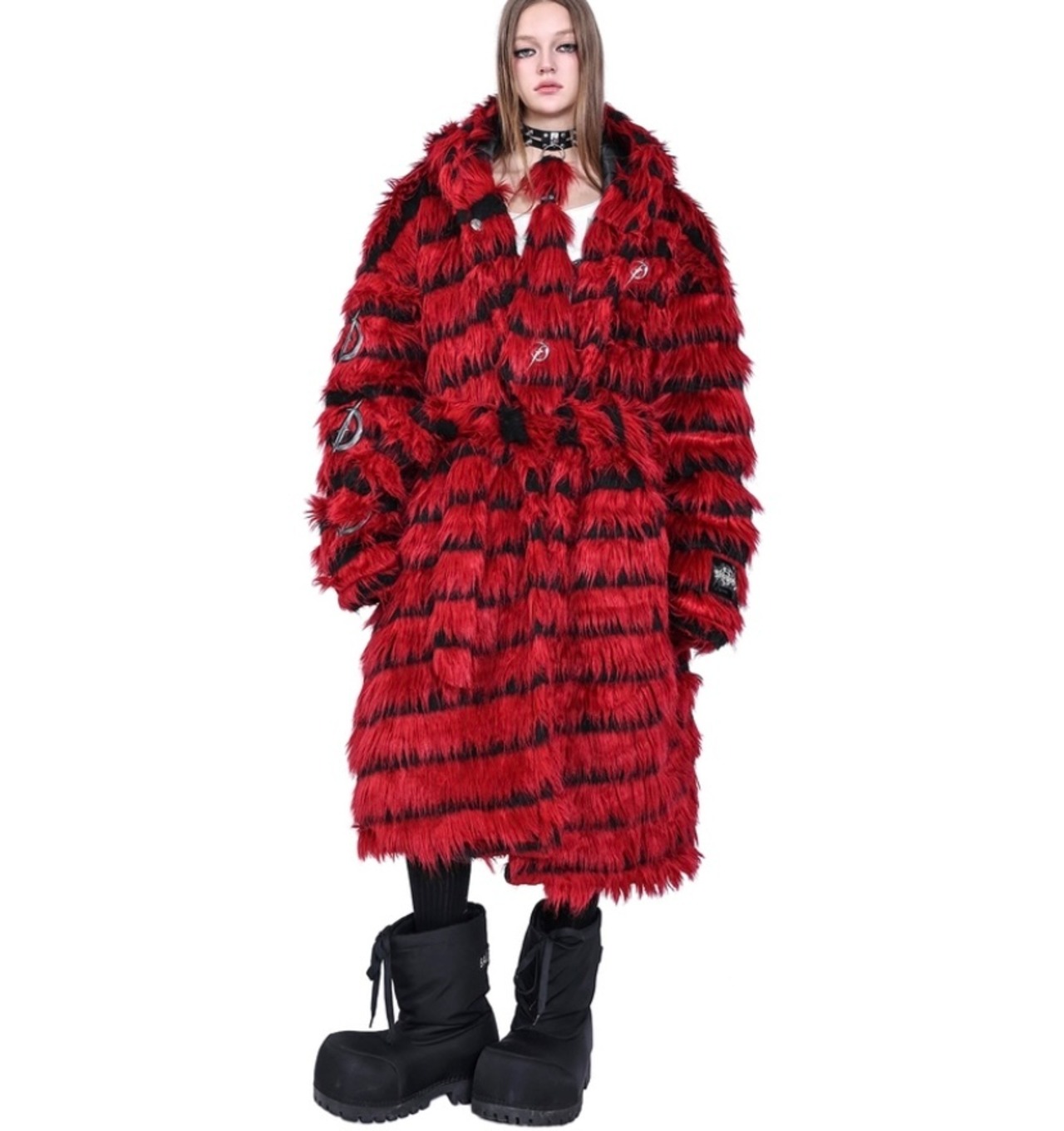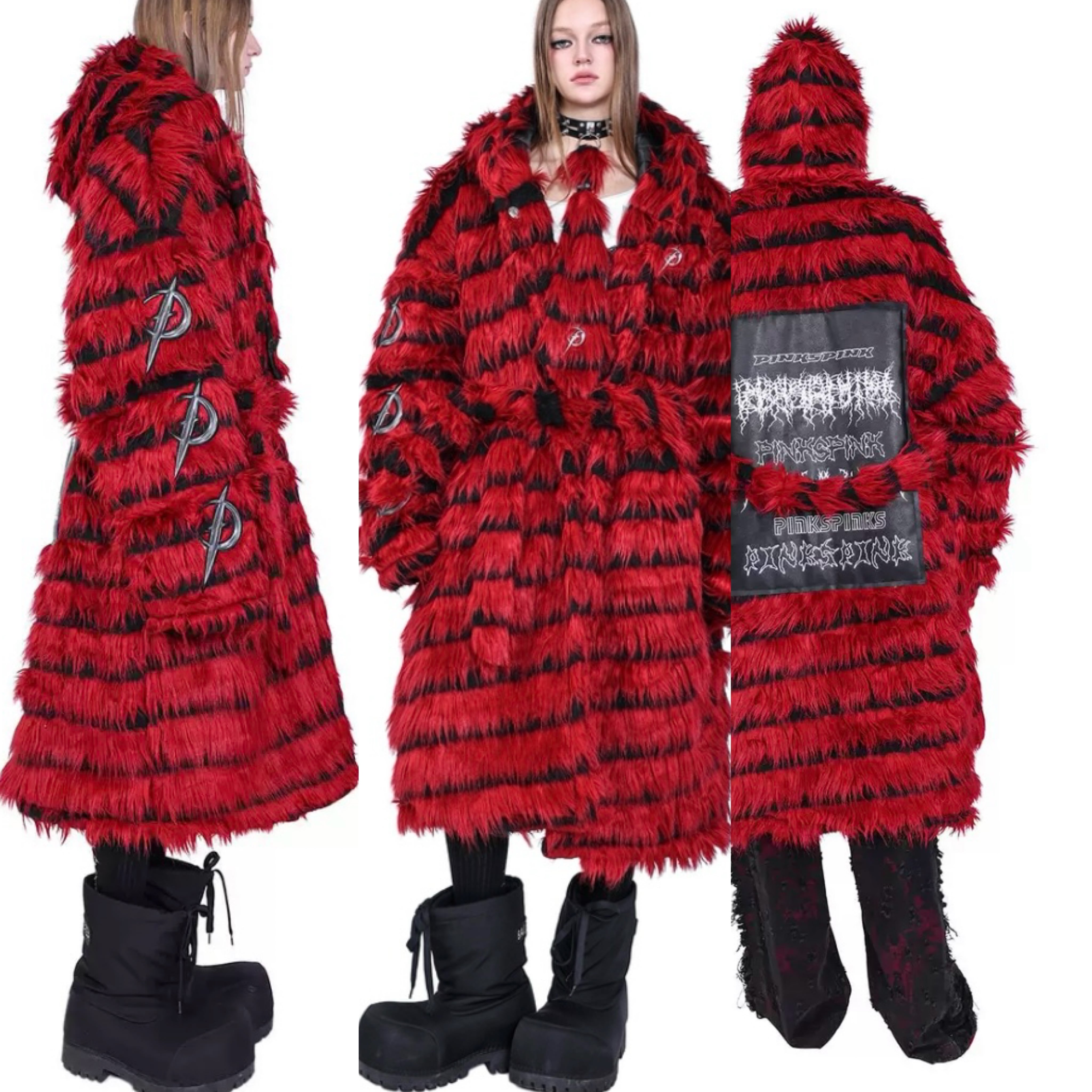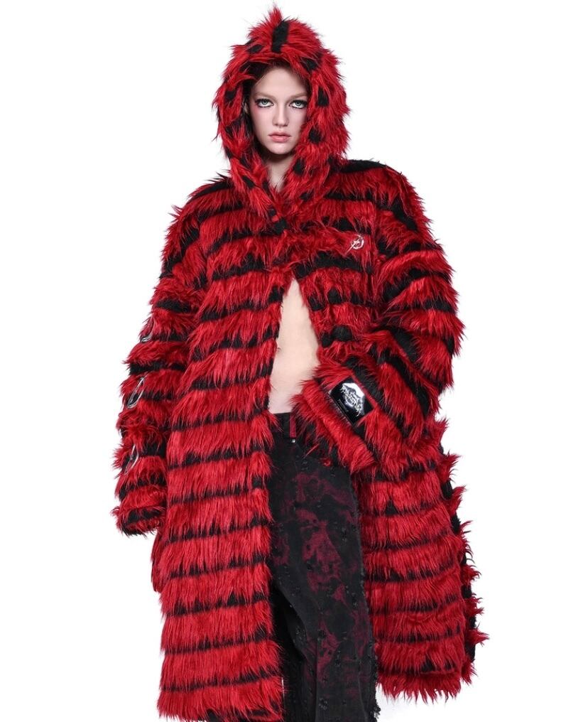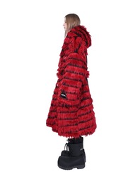 赤 ゴージャス レザー ファー コート ロング かっこいい ゴージャス フード