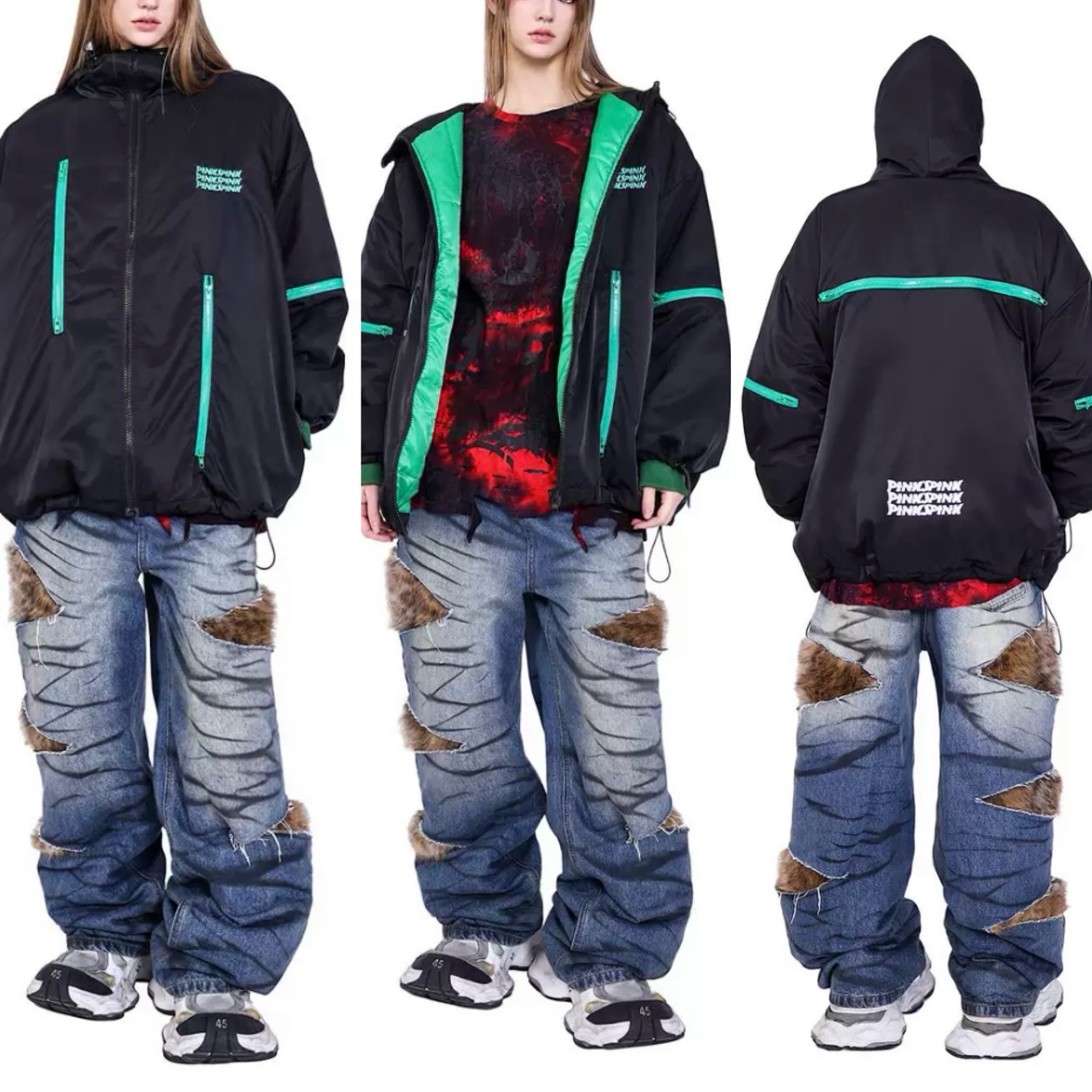 緑 黒 パーカー スウェット ブルゾン ジャンパー アウター 黒 緑 ストリート