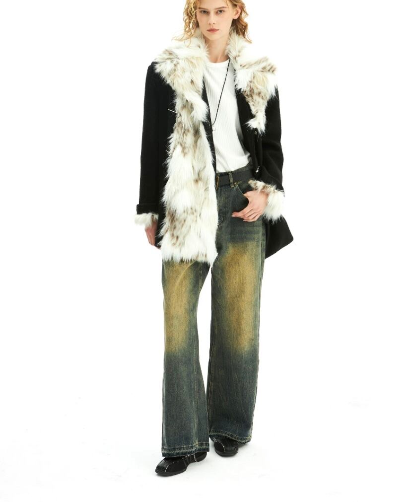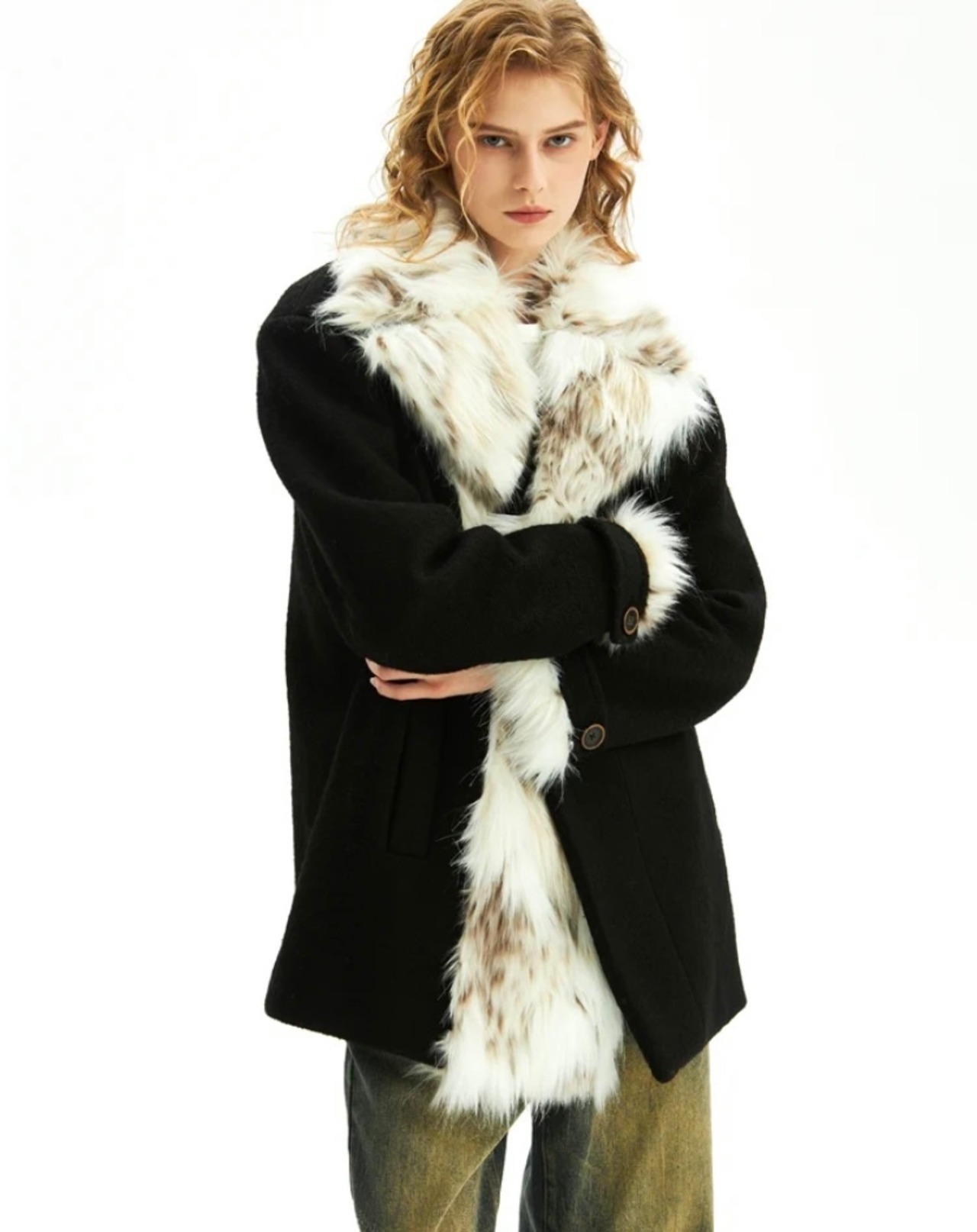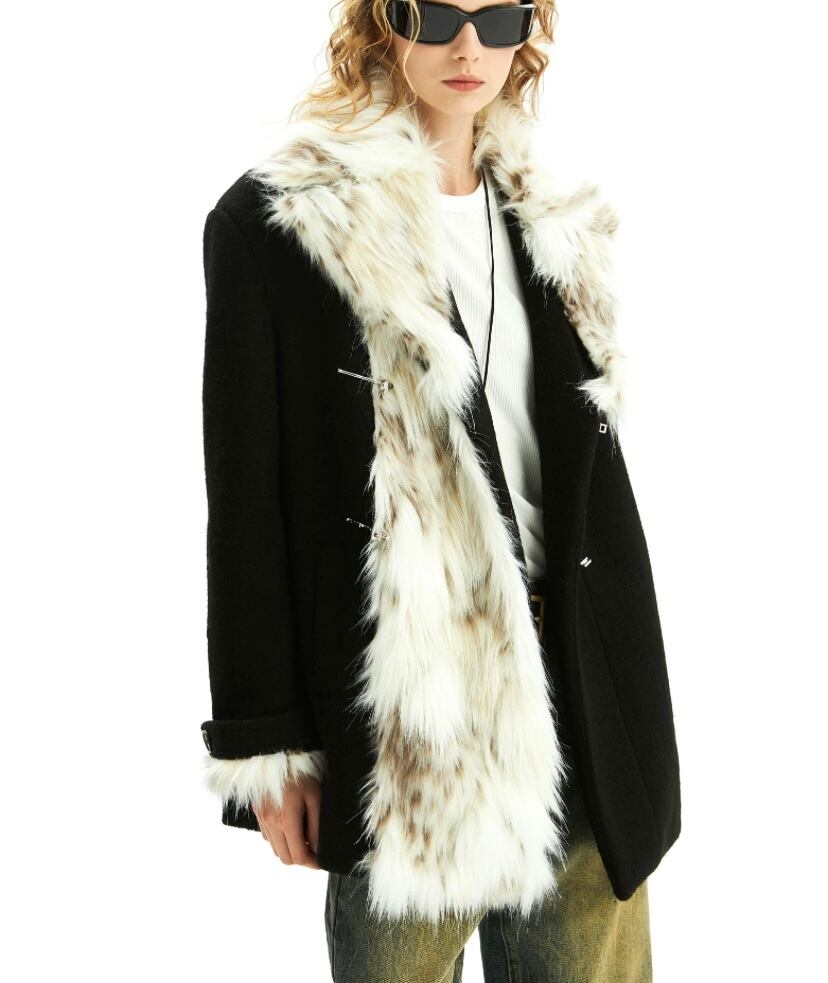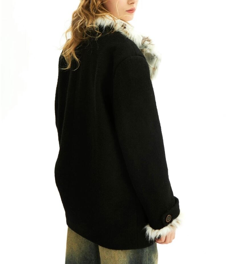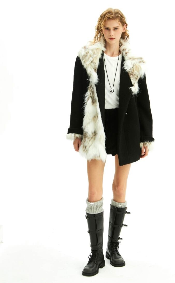 黒 ファー コート ジャケット アウター ゴージャス かっこいい モード クラシック スーツ カーディガン ブラック