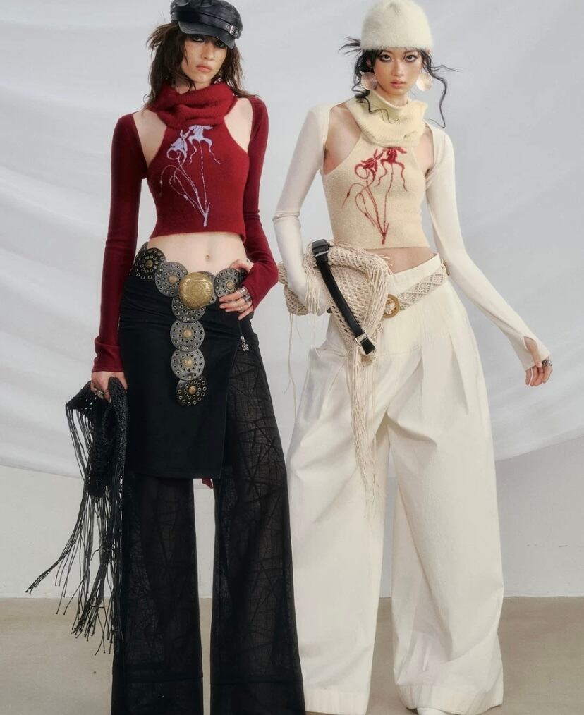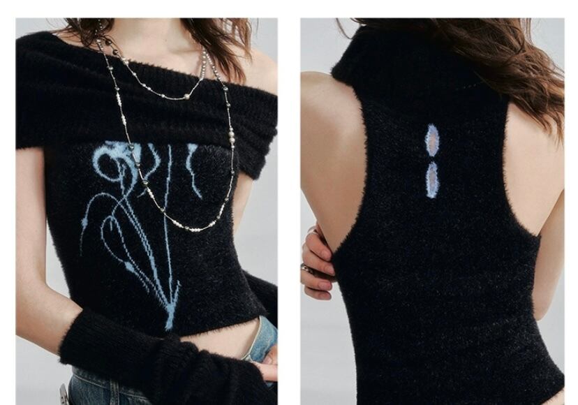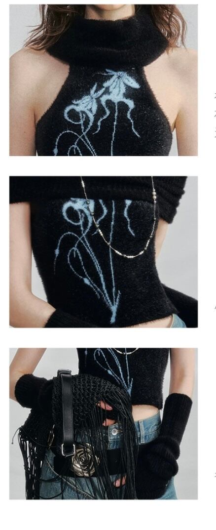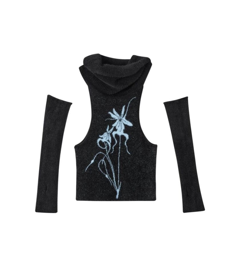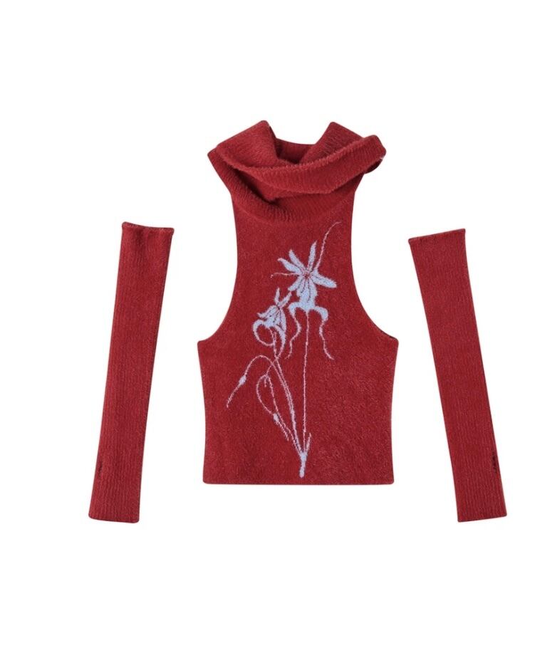 【アームウォーマー付】 黒 白 赤 ハイネック タンクトップ 手袋 オフショルダー セーター カーディガン ブラウス ダンス ストリート クラブ