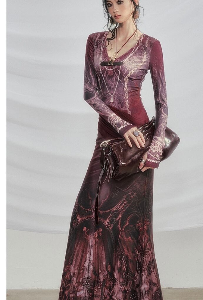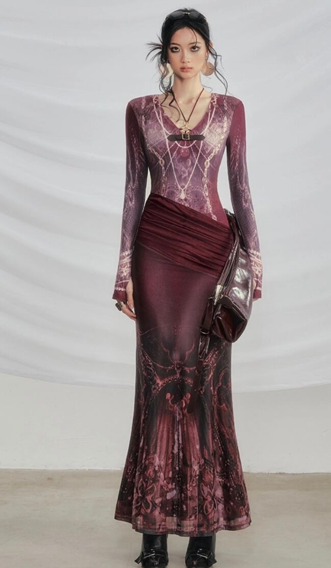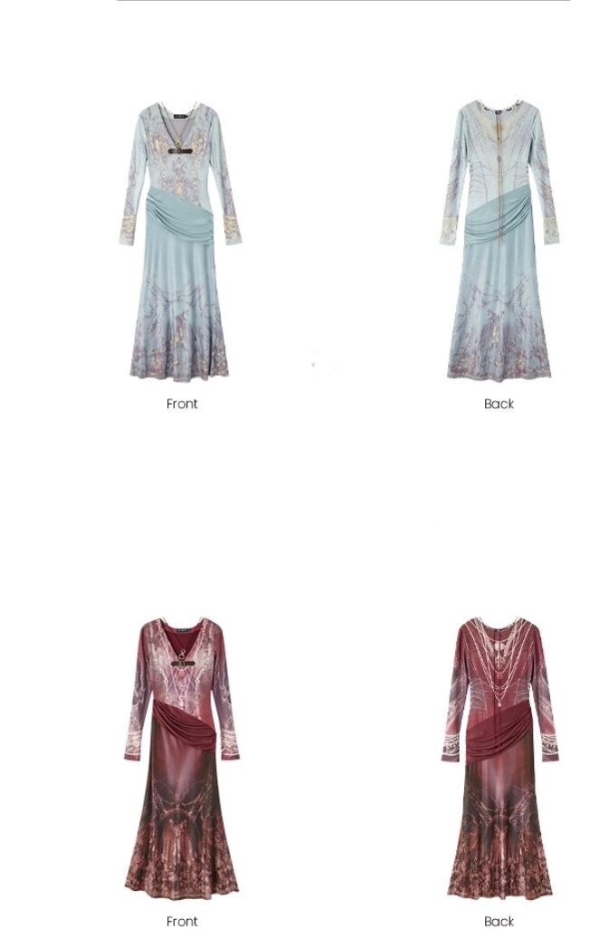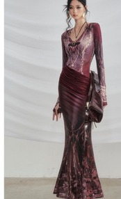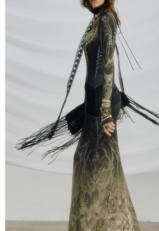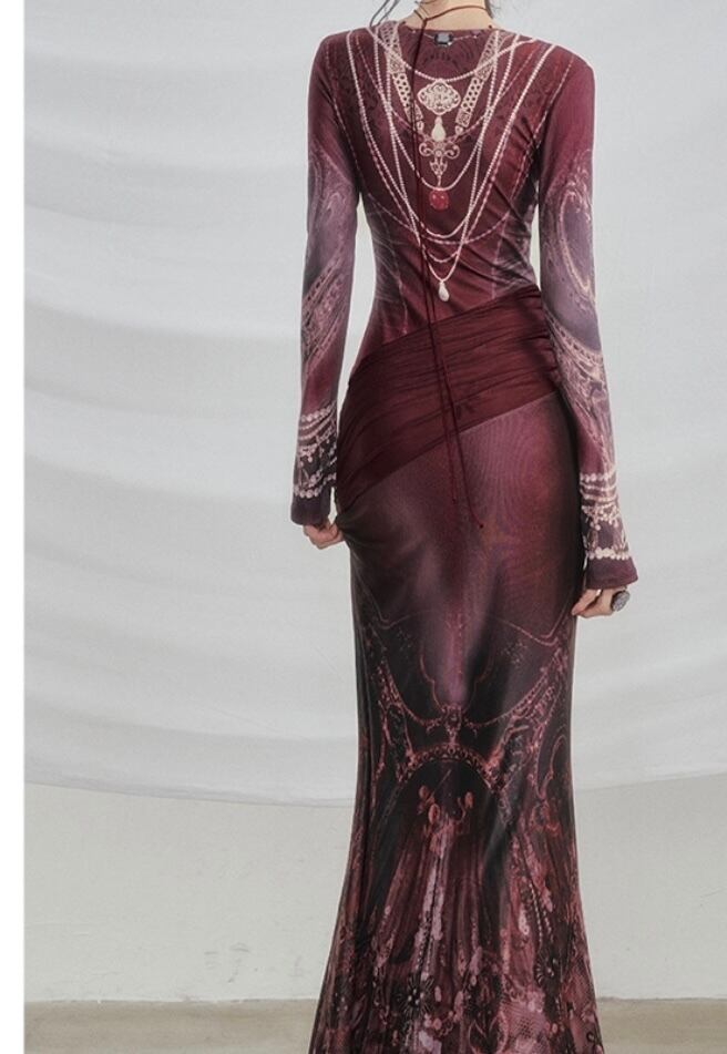 水色 ワンピース タイト マーメイド 水色 赤 黒 ドレス マキシ エレガント パーティー モード グラデーション 個性 セクシー