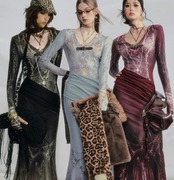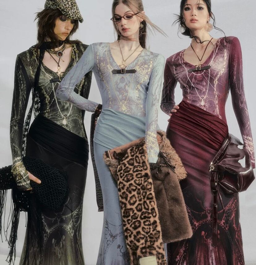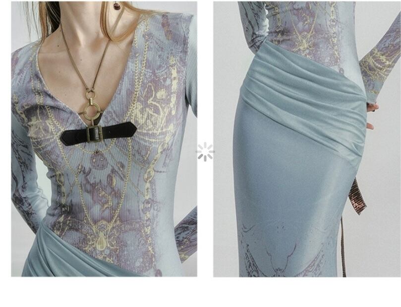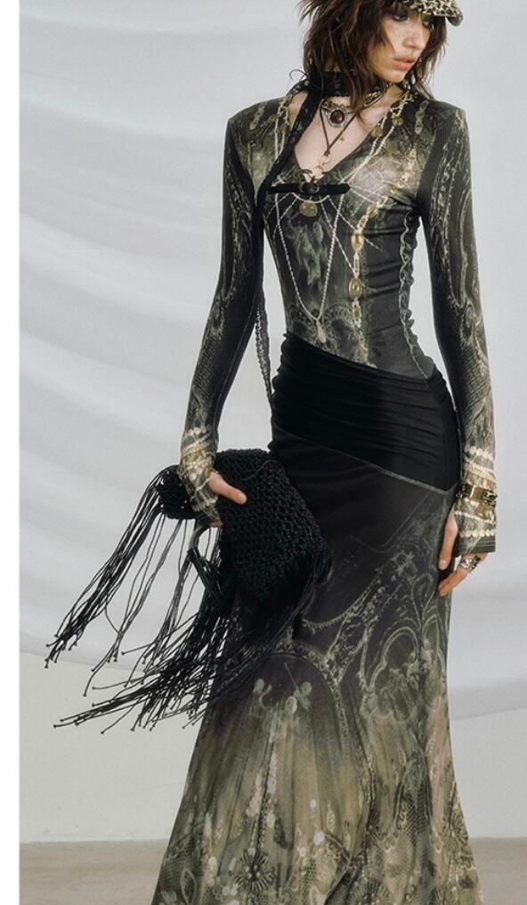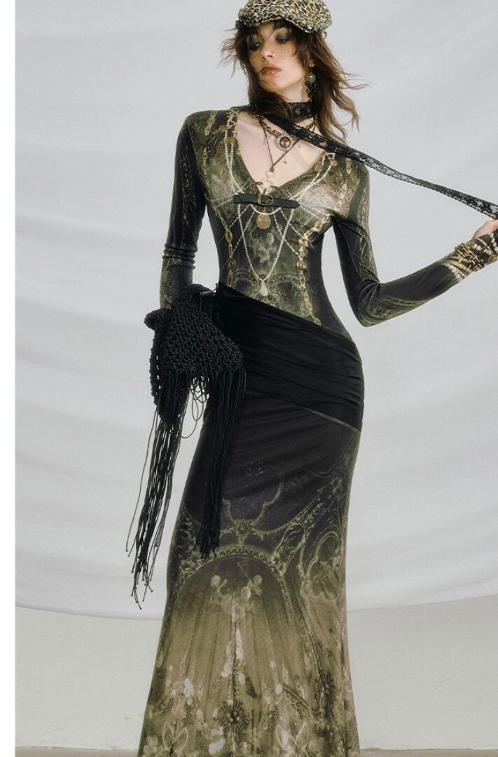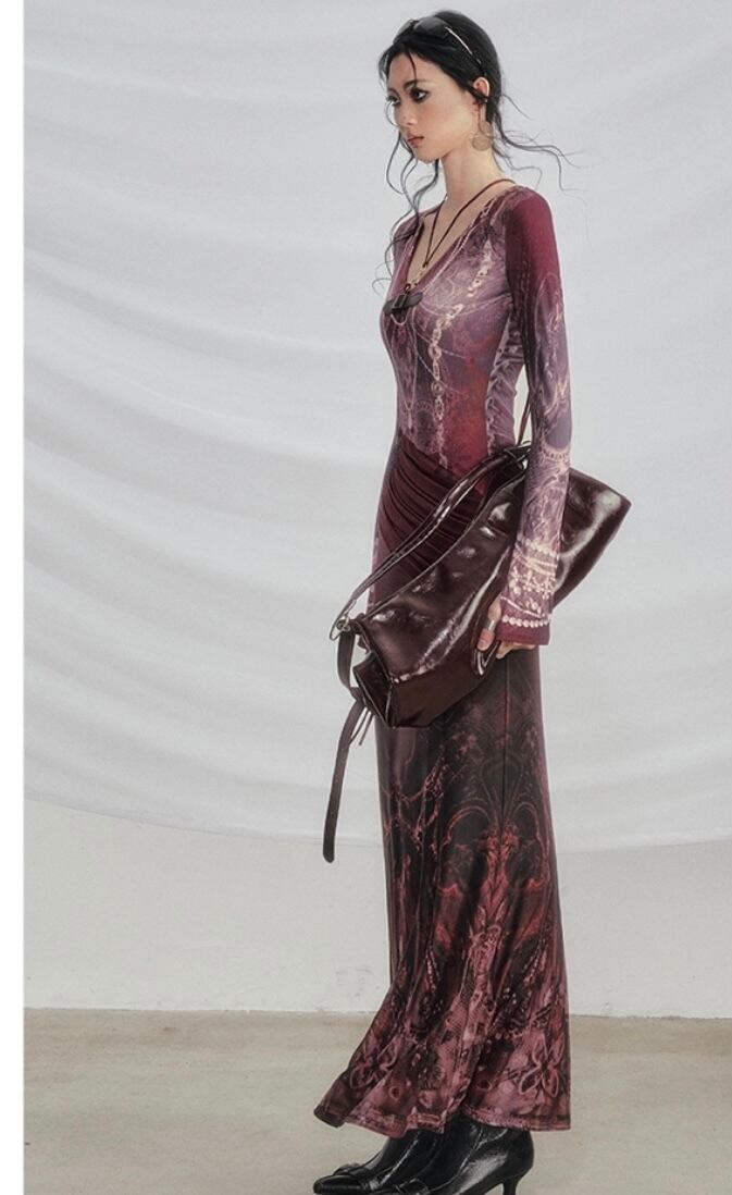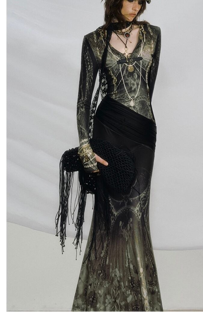 水色 ワンピース タイト マーメイド 水色 赤 黒 ドレス マキシ エレガント パーティー モード グラデーション 個性 セクシー