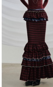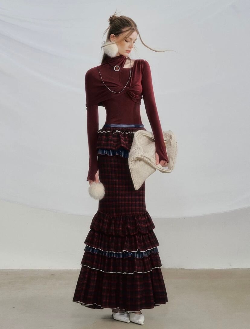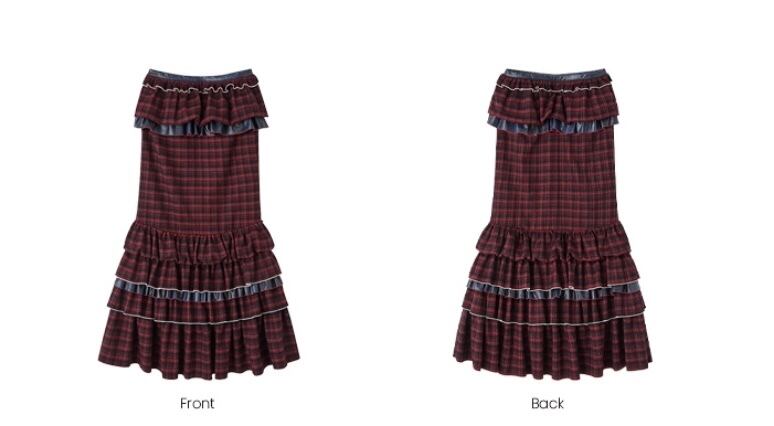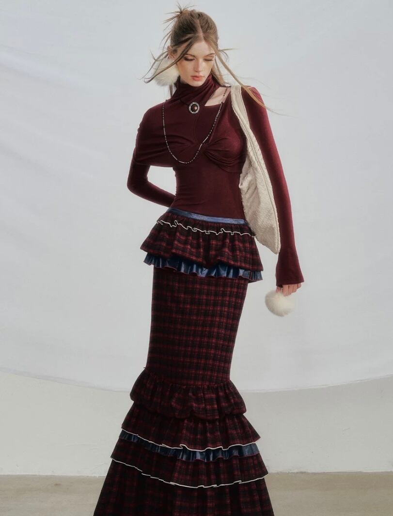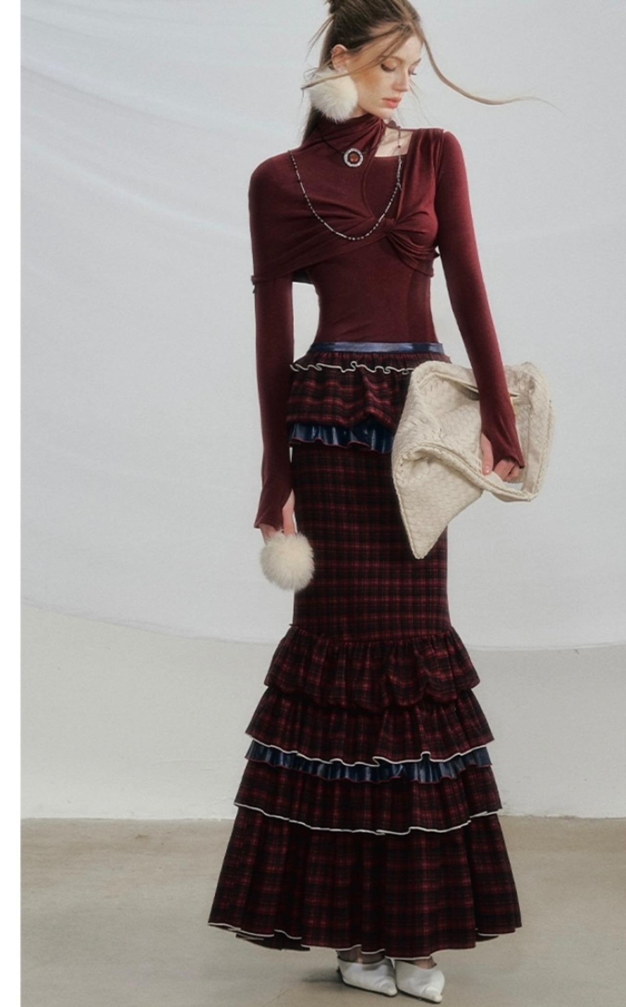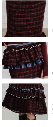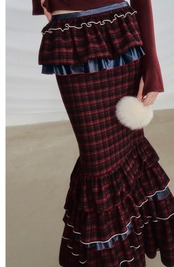 チェック マーメイド マキシ ガーリー スカート フリル 赤 可愛い タイト 段々 XL 原宿 お嬢様
