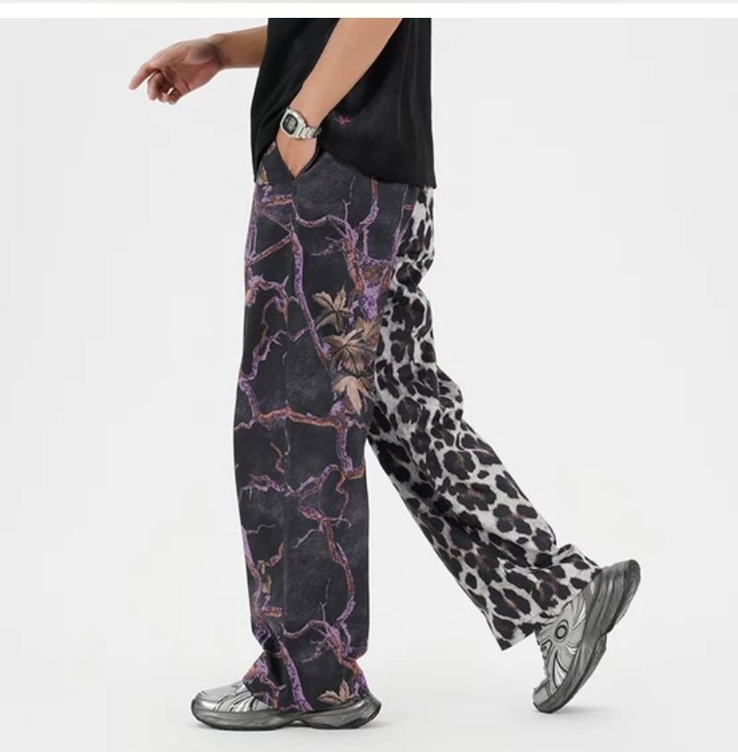 【2XLまで】スウェット パンツ バイカラー ダルメシアン ヒョウ柄 レオパード パンツ ボトムス スウェット ズボン ダンス ストリート ユニセックス