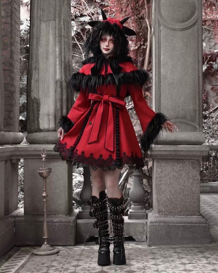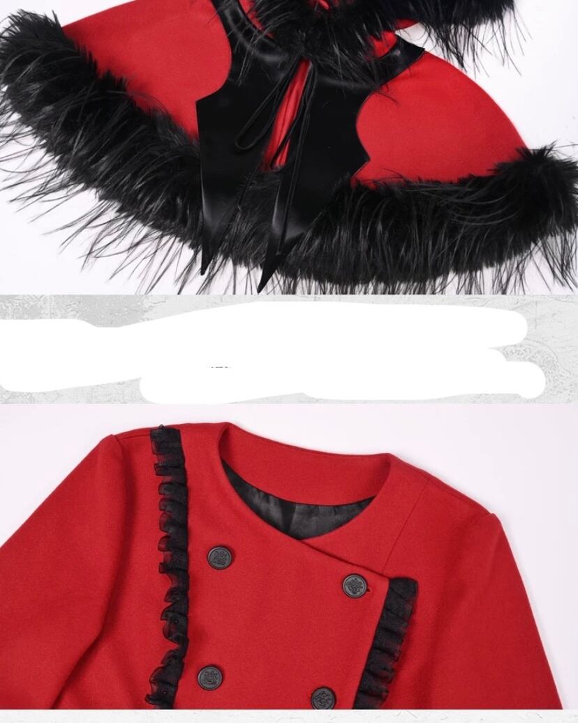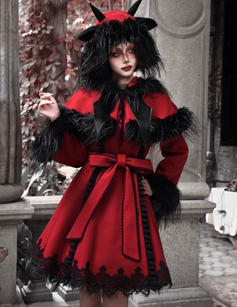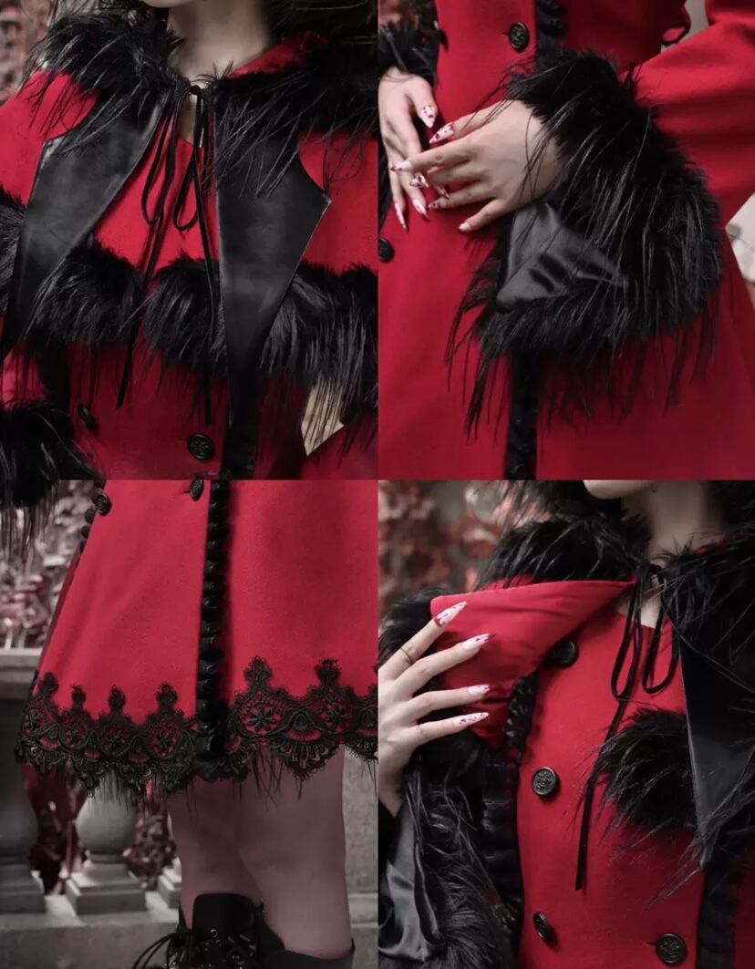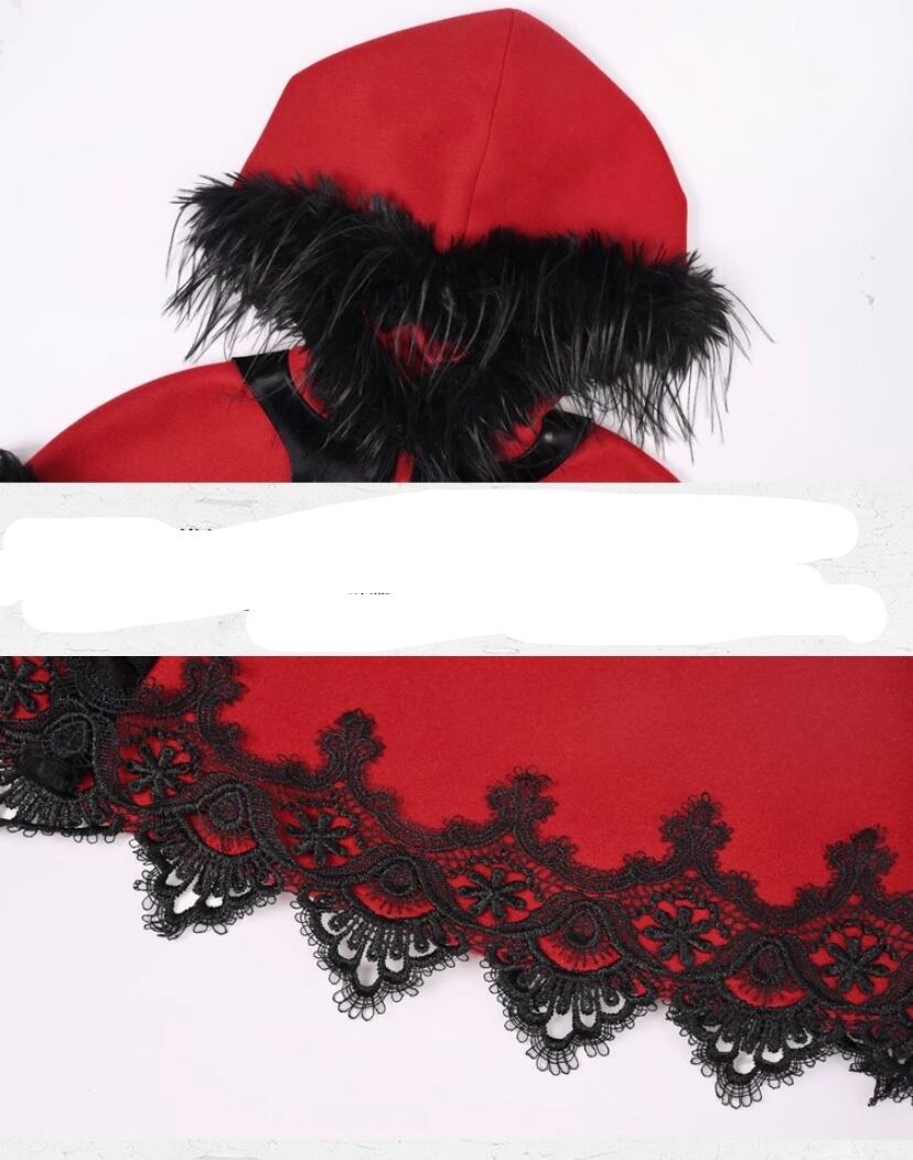 赤 ポンチョ マント コート レッド リボン ファー 魔女 アニメ コスプレ アウター コート