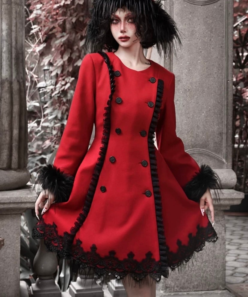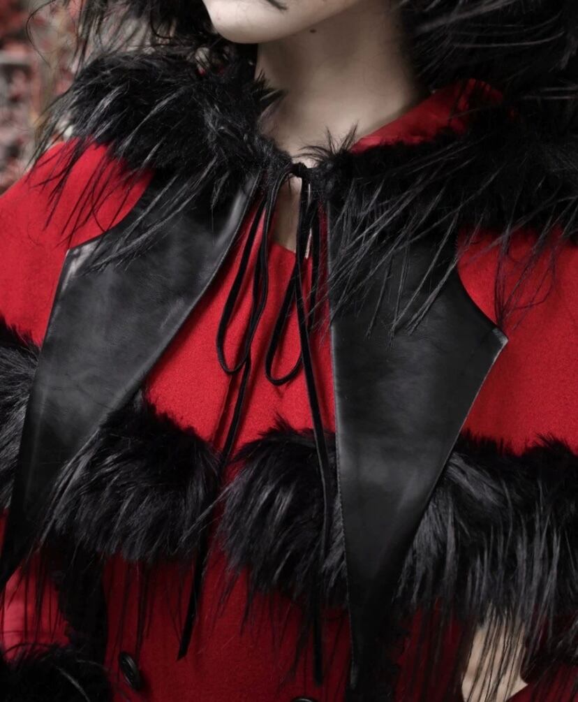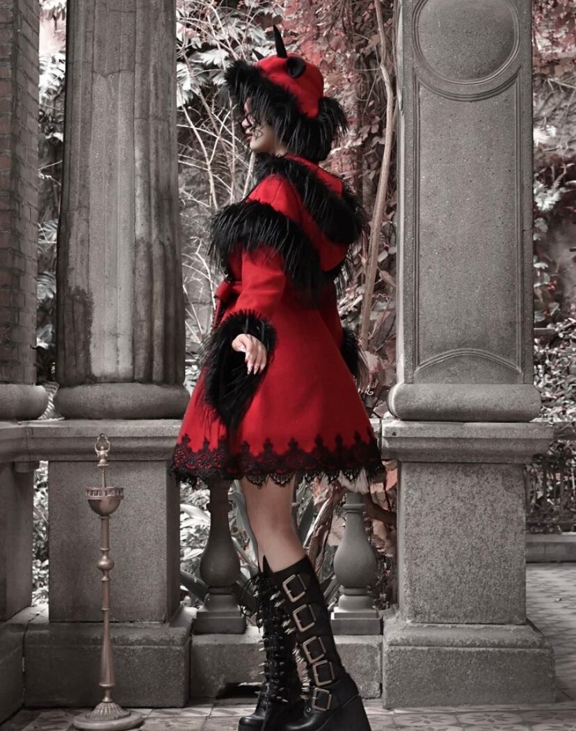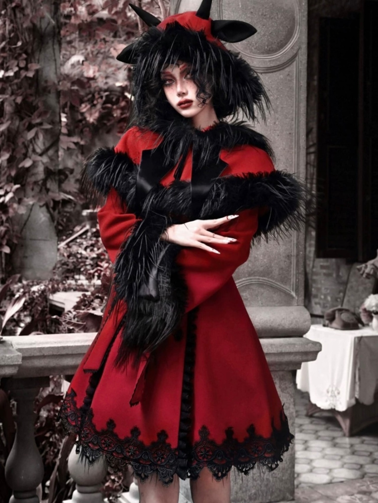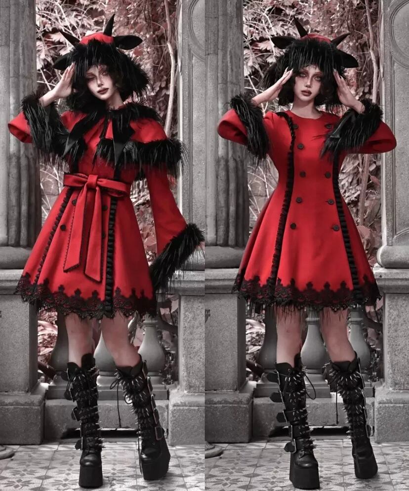赤 ポンチョ マント コート レッド リボン ファー 魔女 アニメ コスプレ アウター コート